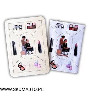 Do zestawu dołączona jest kolorowa ulotka edukacyjna z podpisem „makijażystka”, która opisuje ten zawód prostym, dziecięcym językiem, przedstawiając jego najważniejsze elementy.