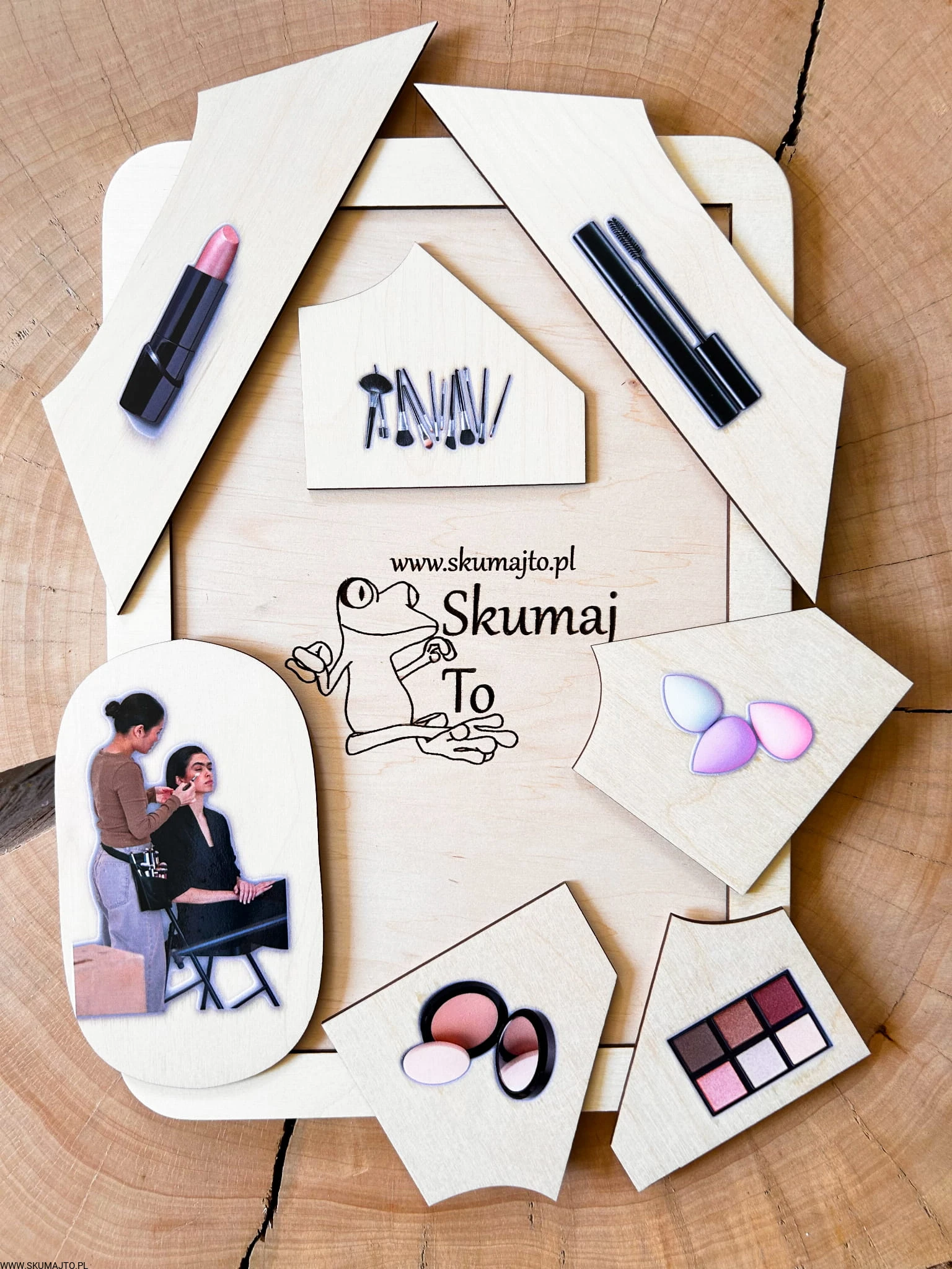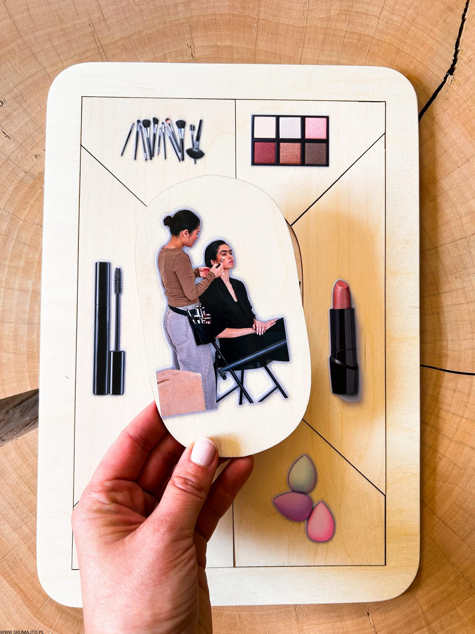 Drewniana układanka edukacyjna „Zawód: Makijażystka” – dla małych miłośniczek piękna i precyzji