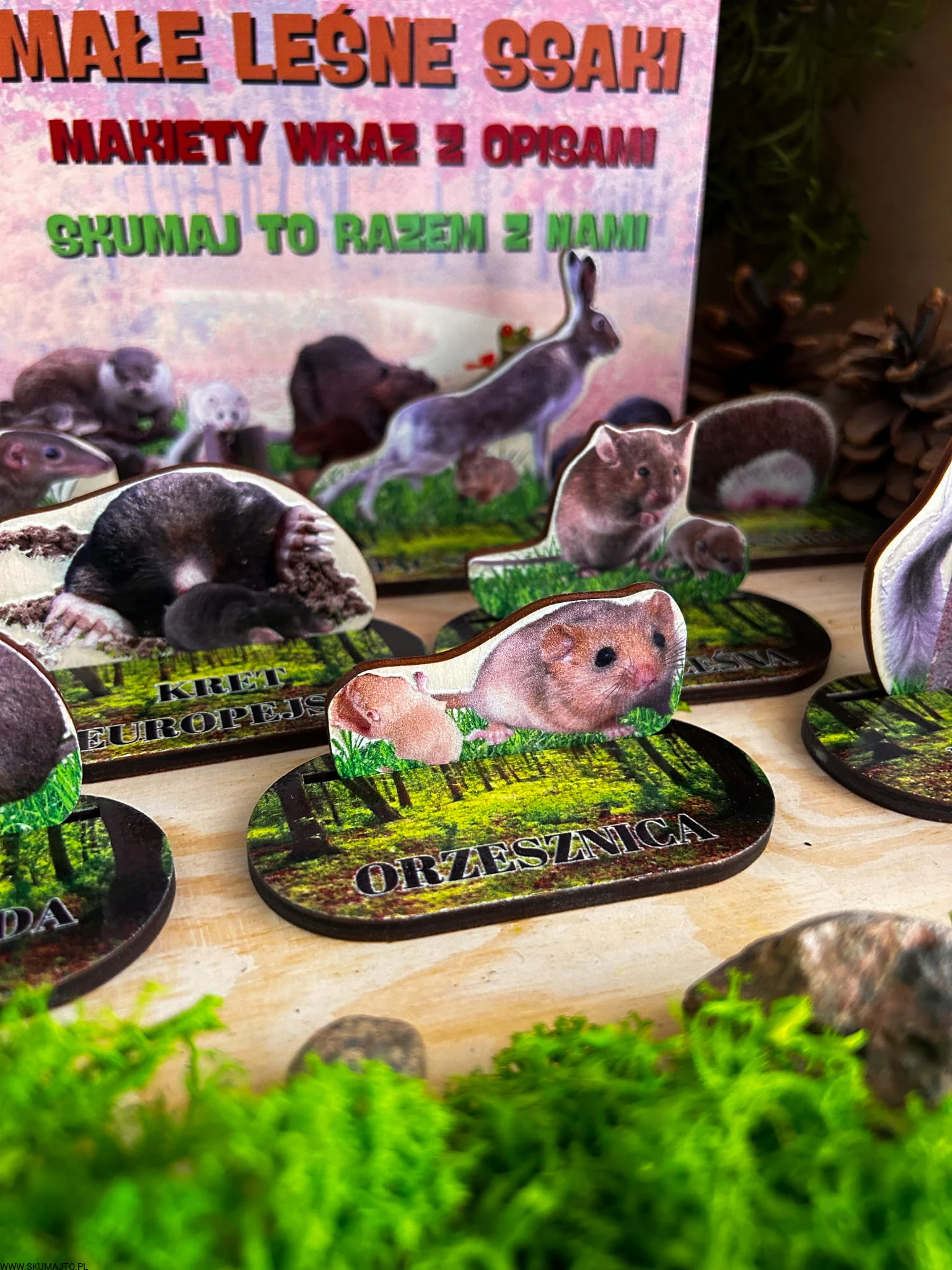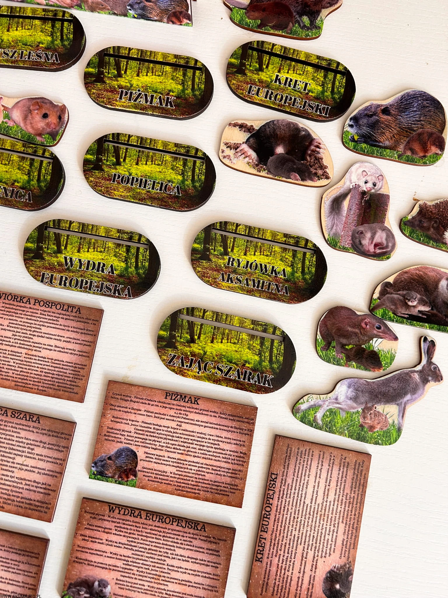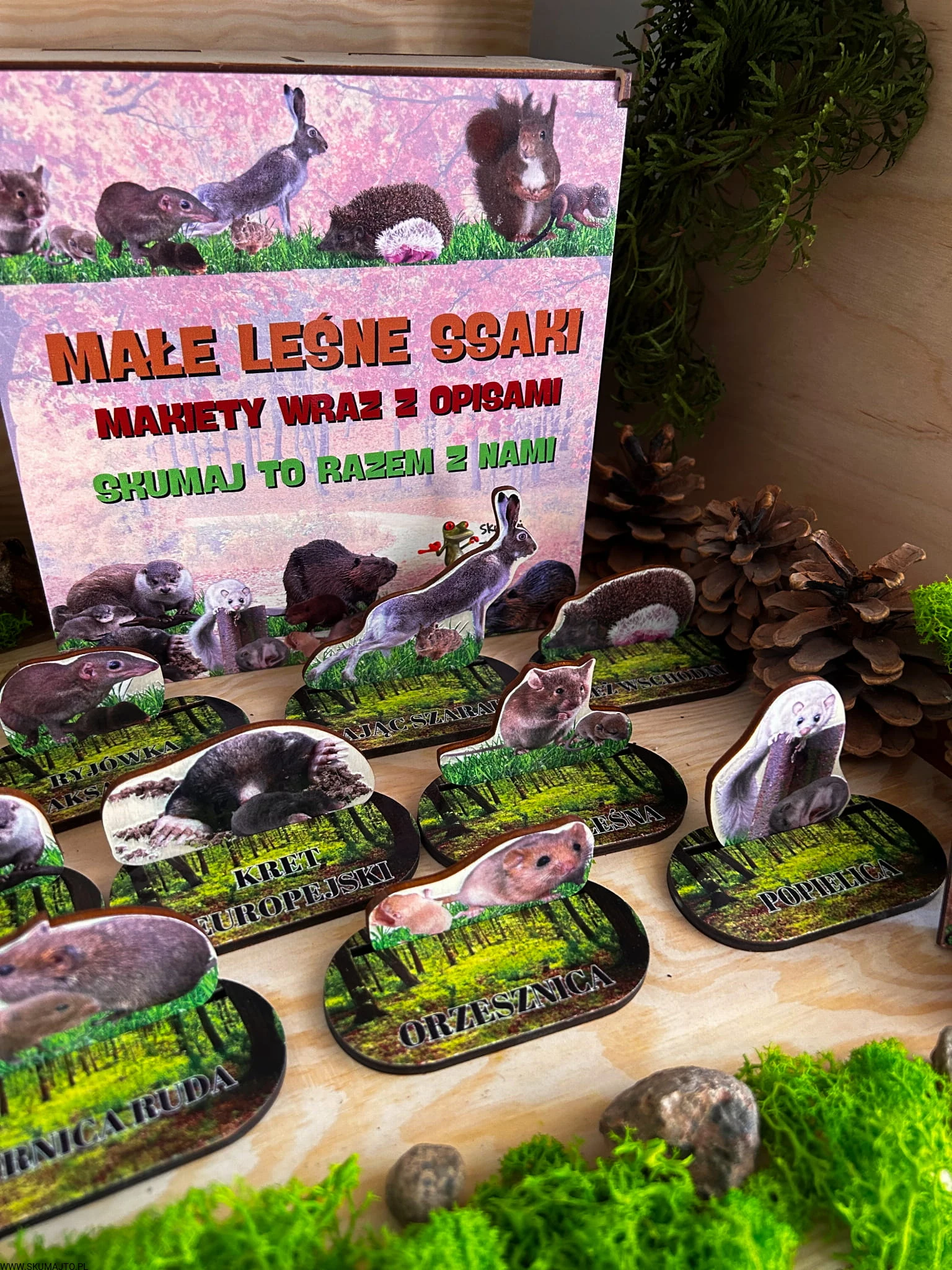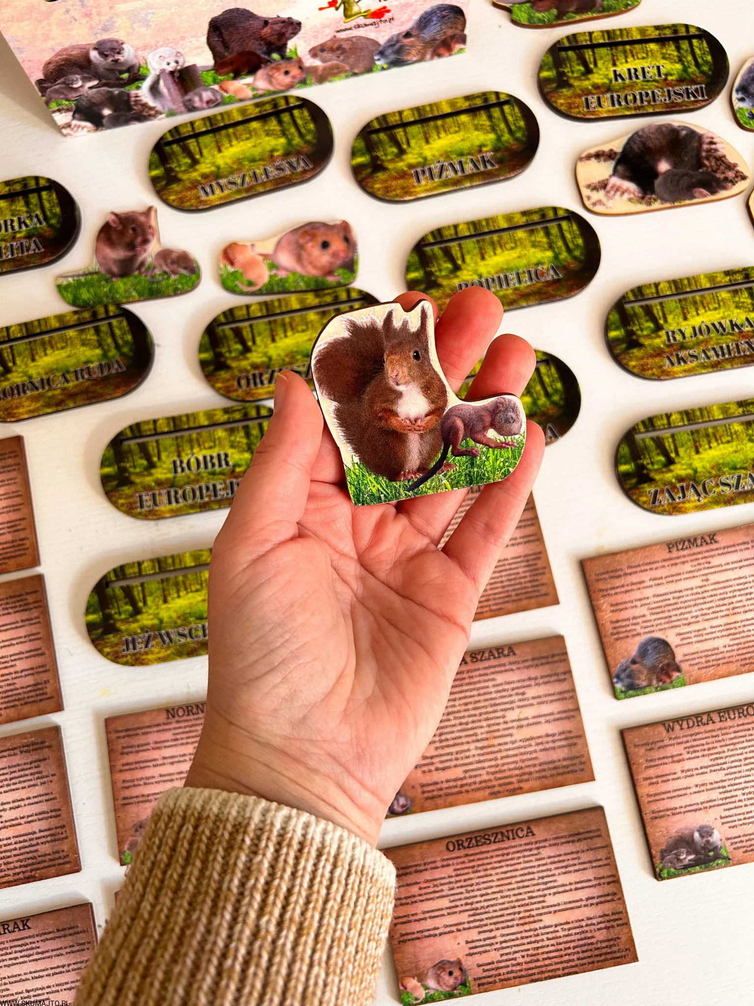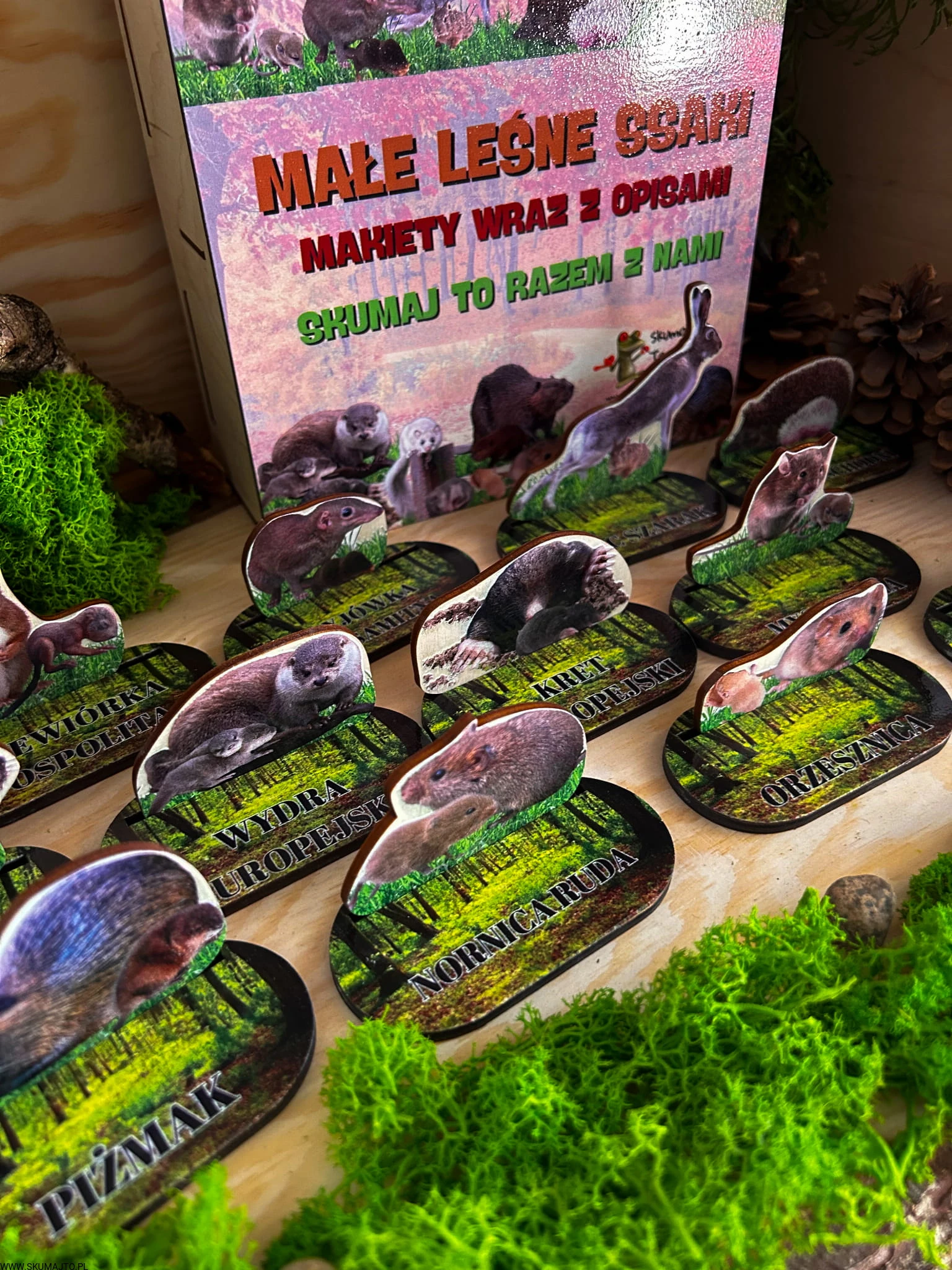 Małe leśne ssaki, drewniana makieta, układanka Montessori