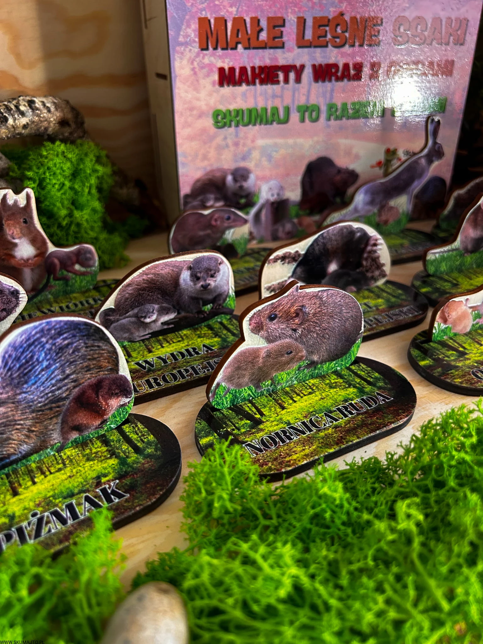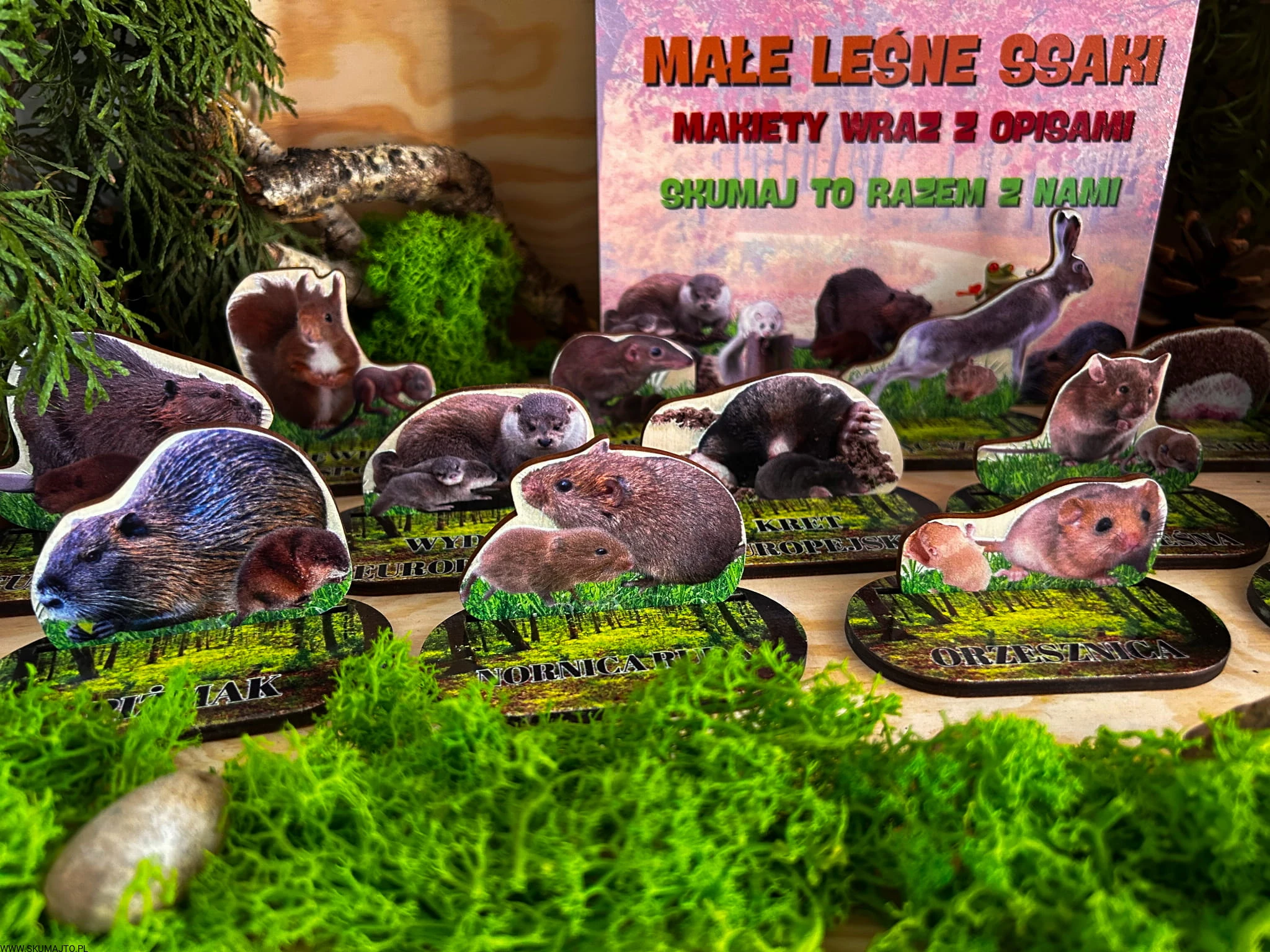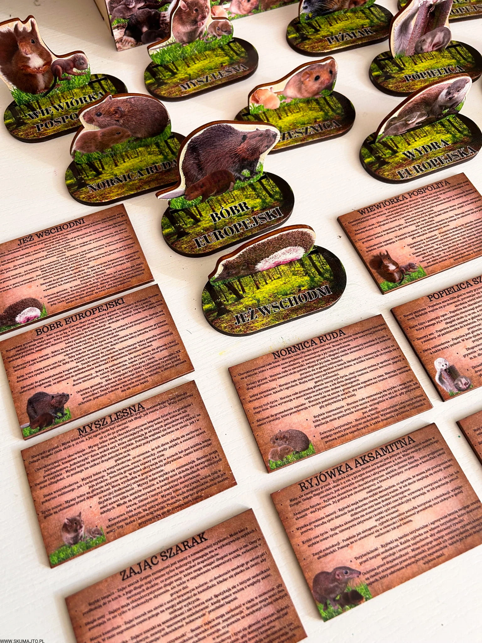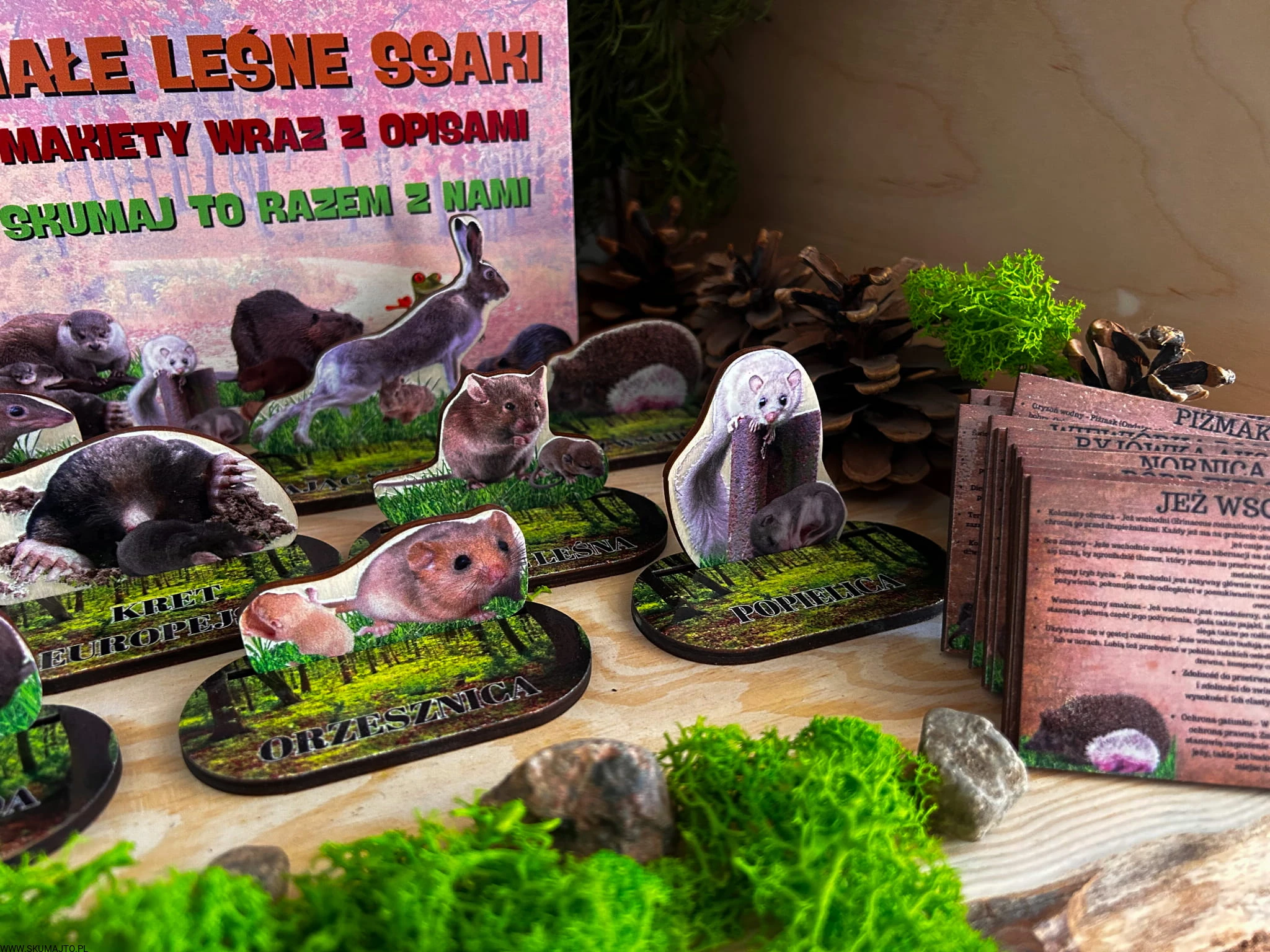 Małe leśne ssaki, drewniana makieta, układanka Montessori