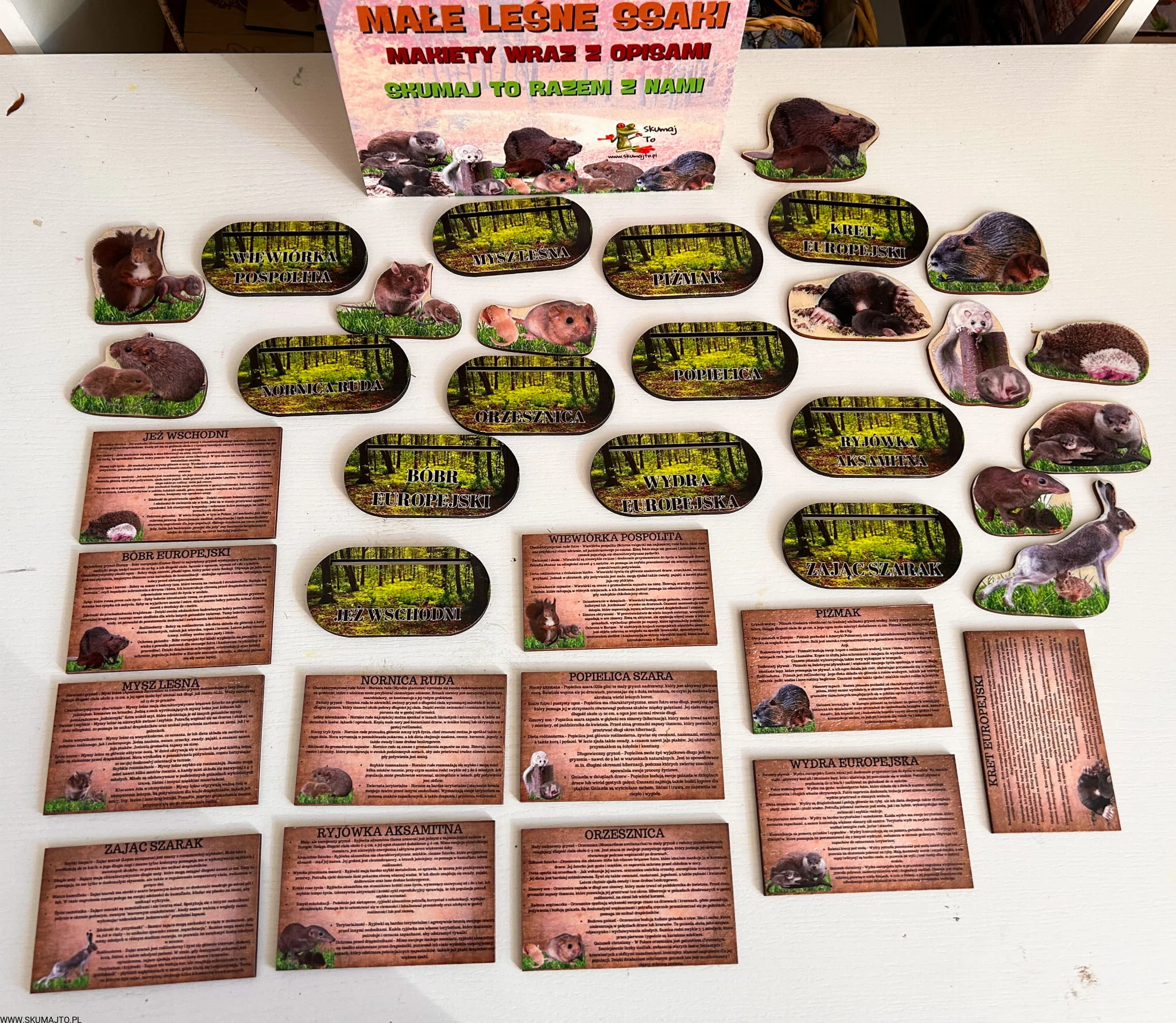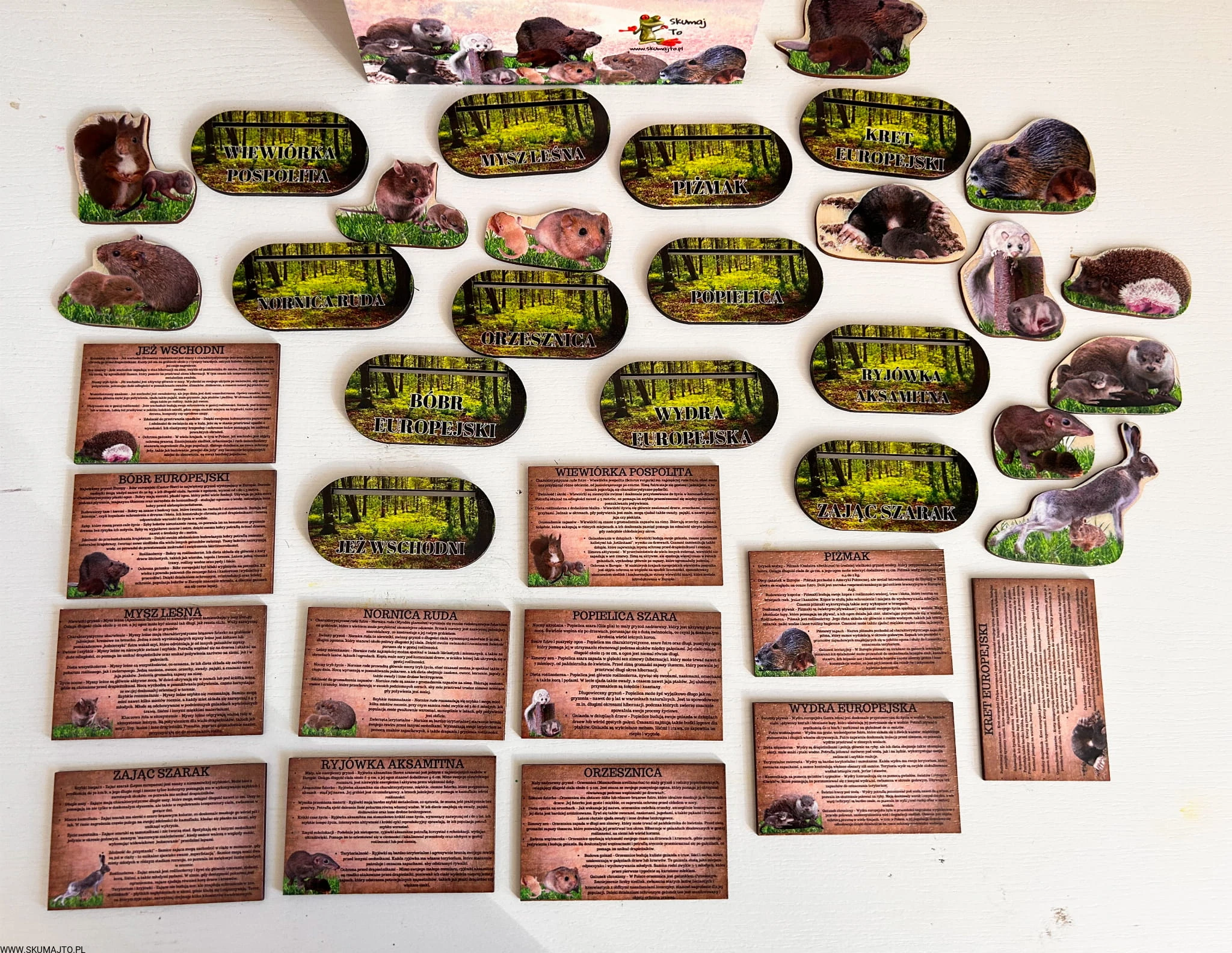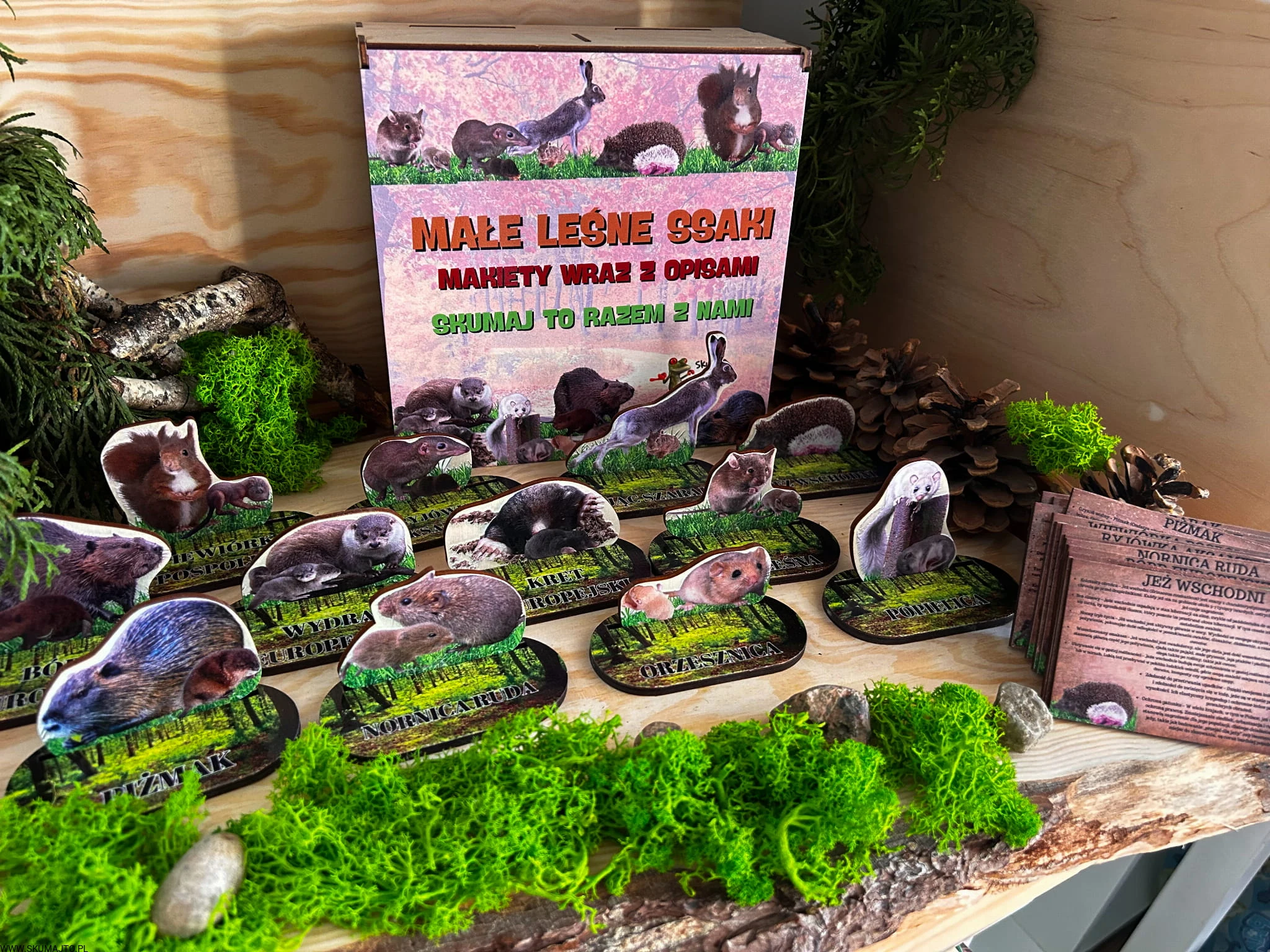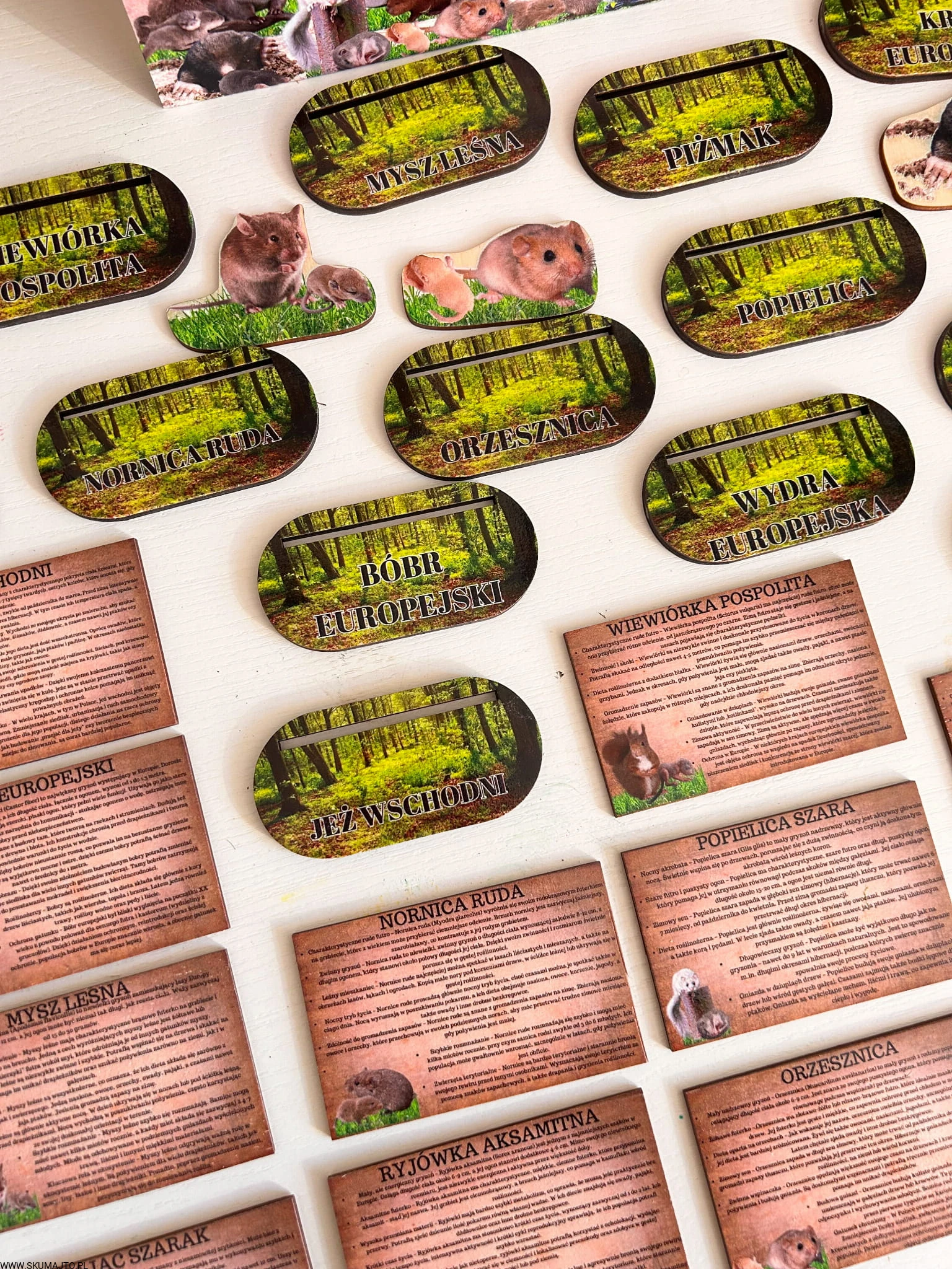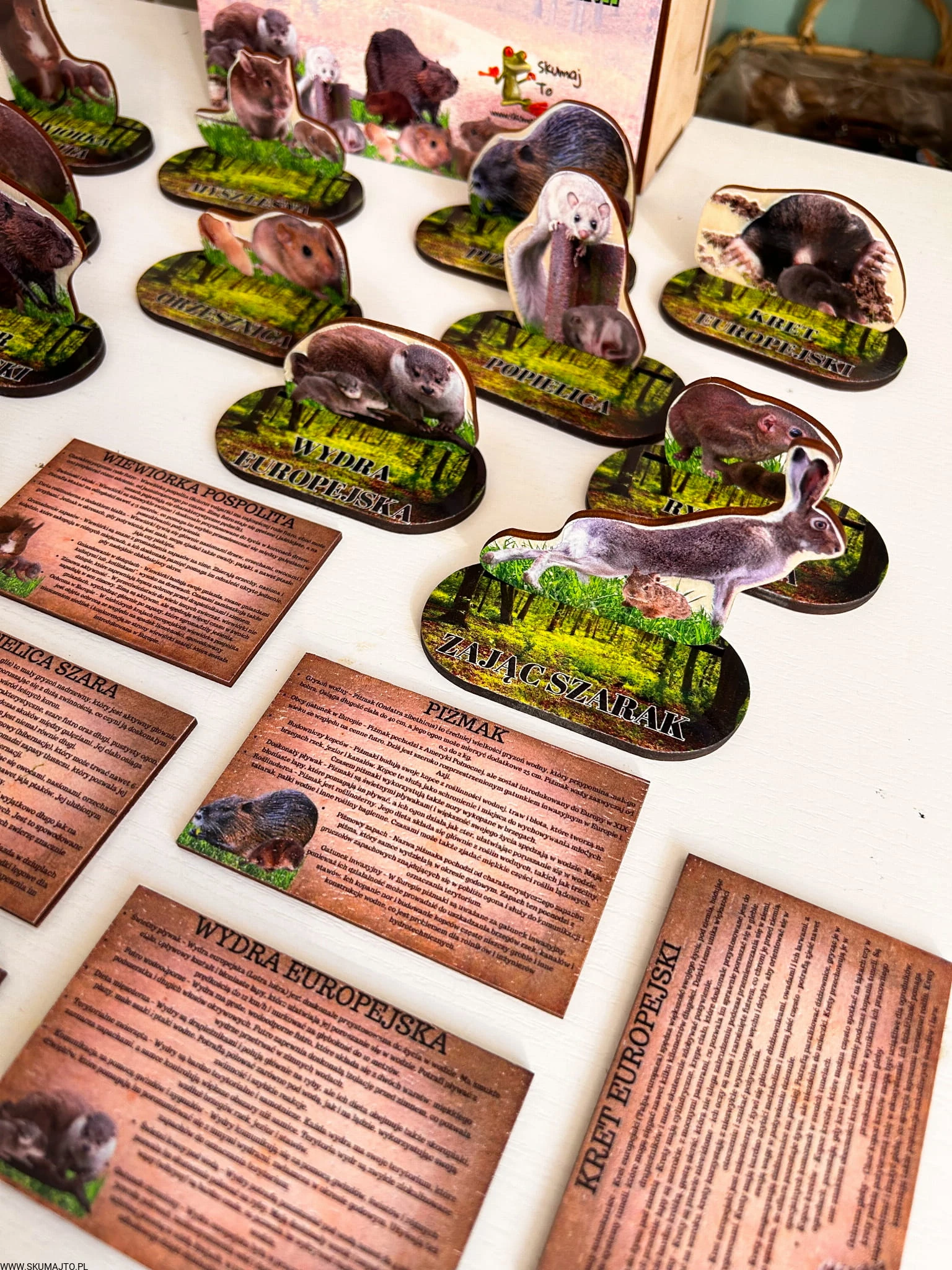 Małe leśne ssaki, drewniana makieta, układanka Montessori