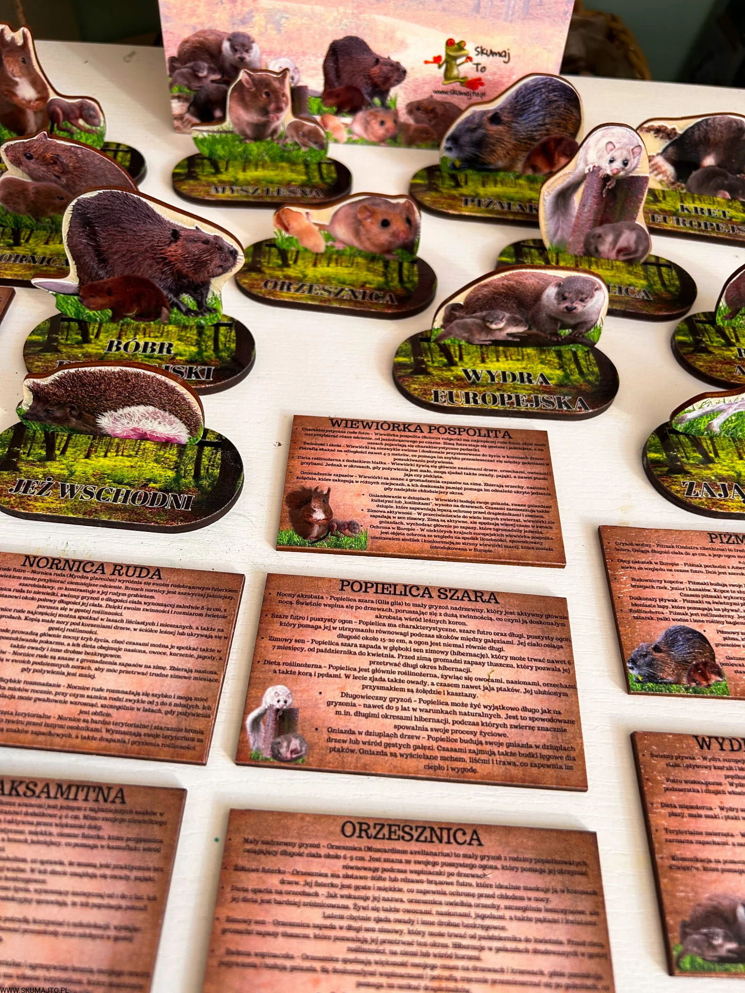 Każdy z tych zwierząt ma swoją niepowtarzalną historię, którą odkryjecie razem – przy pomocy pięknie wykonanych, drewnianych kart o rozmiarze 10x6 cm. Karty te nie tylko dostarczą Wam informacji, ale i będą inspiracją do rozmów o naturze, ekologii i odpowiedzialności za świat wokół nas.