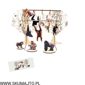 Małpy na drzewie, gatunki małp, odwzorowywanie, układanka logiczna, rodzaje małp