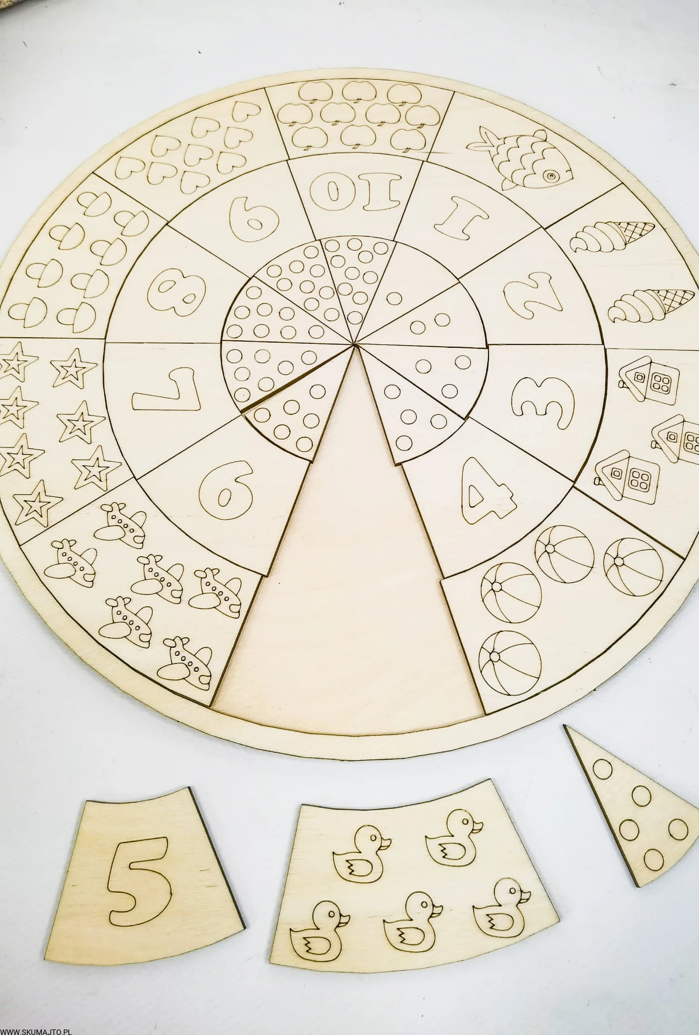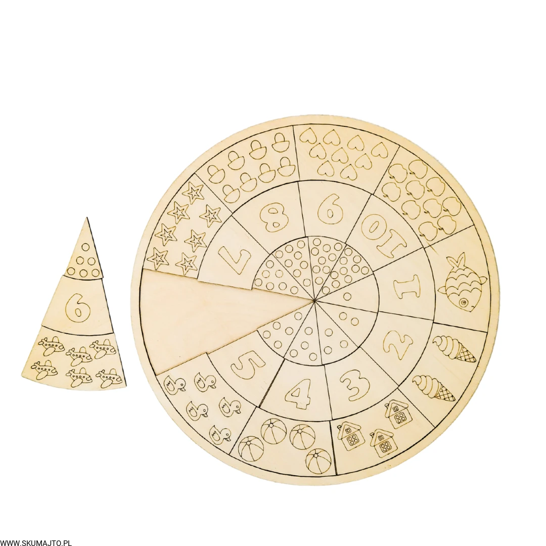 Matematyczna pizza, drewniana układanka, nauka liczenia, matematyka