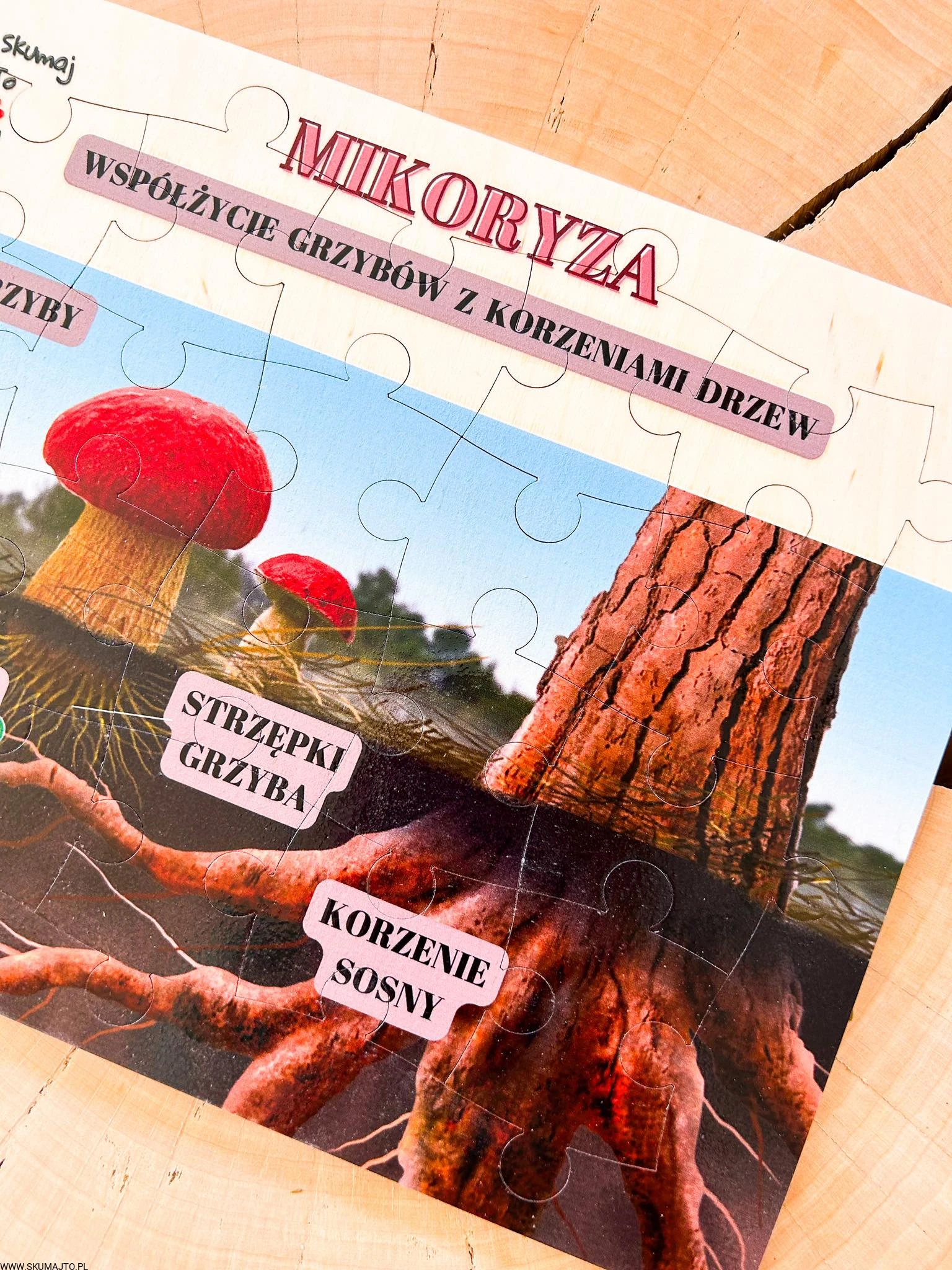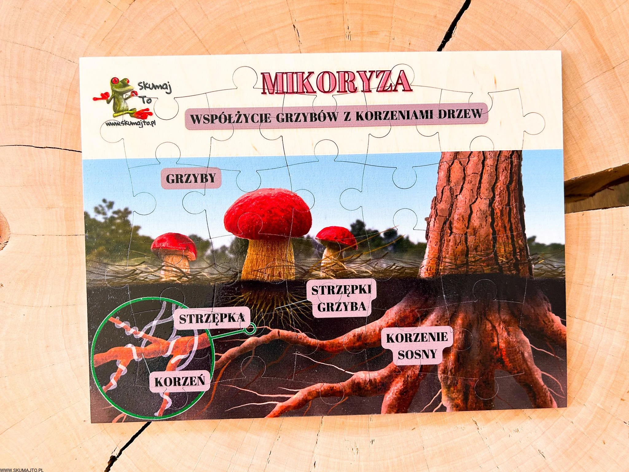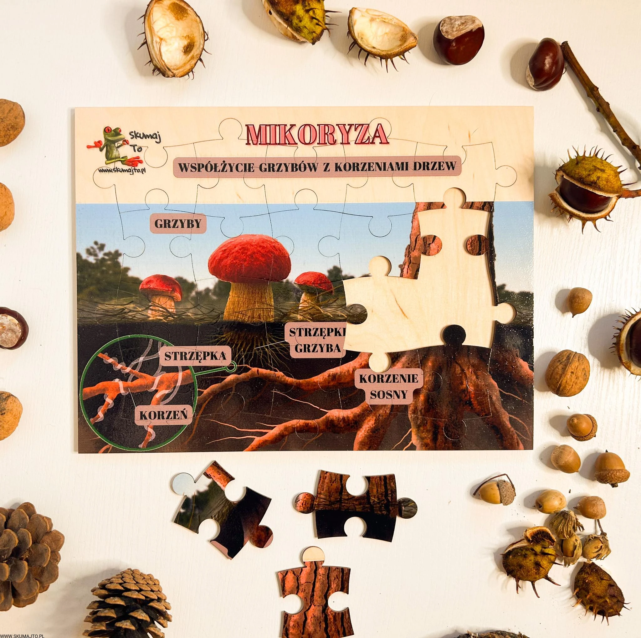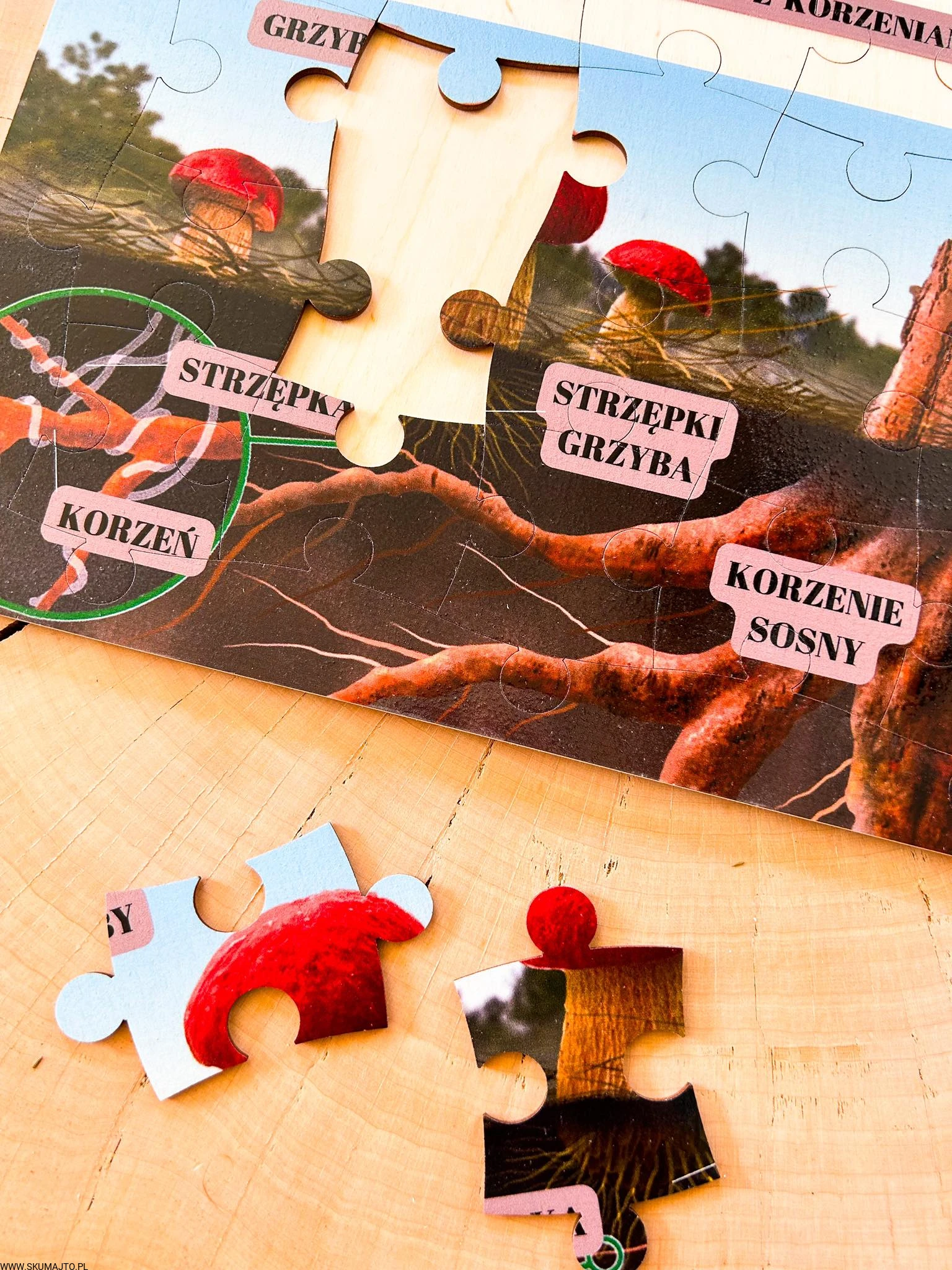 Mikoryza układanka drewniana, grzyby, rozwój, puzzle