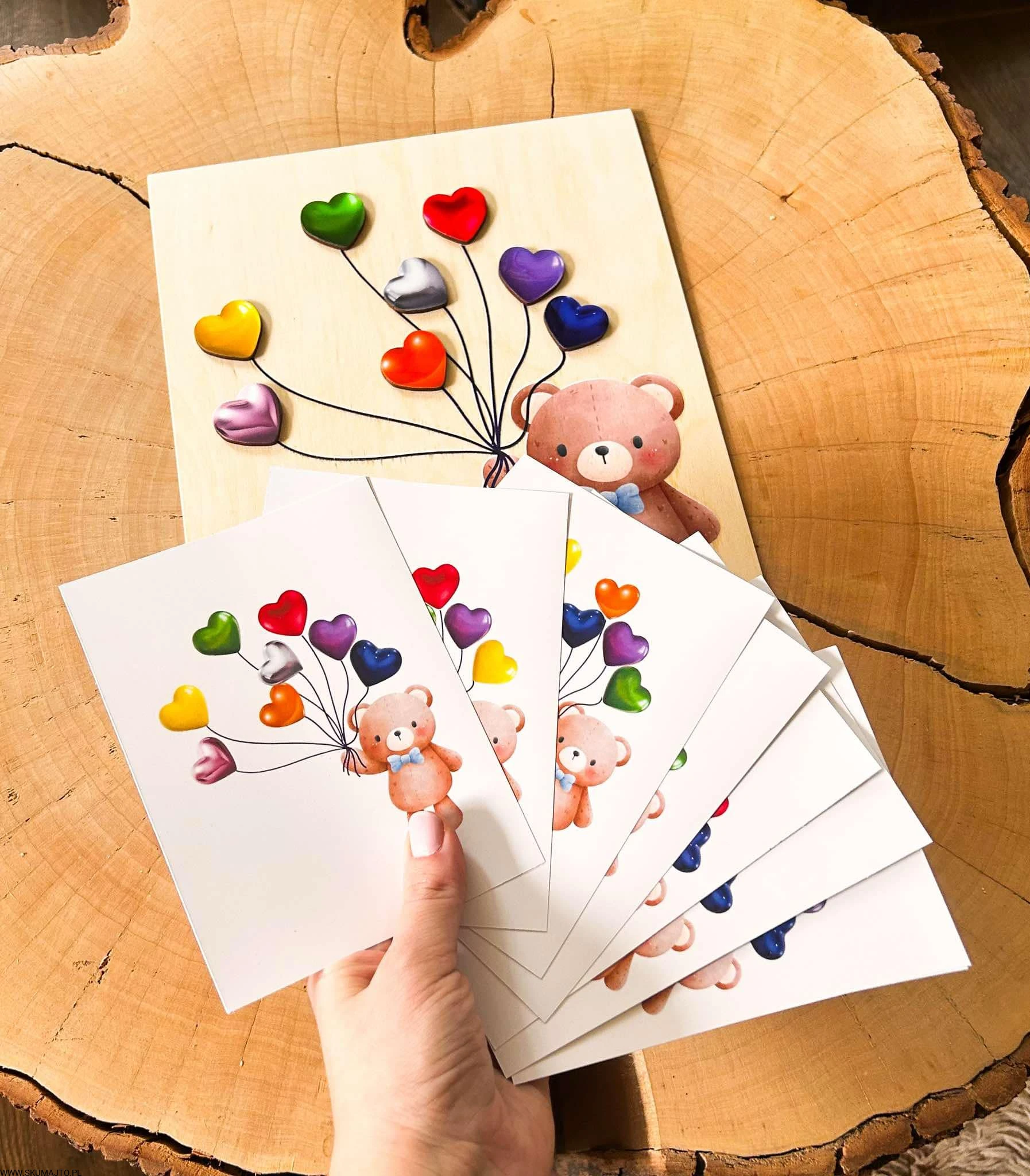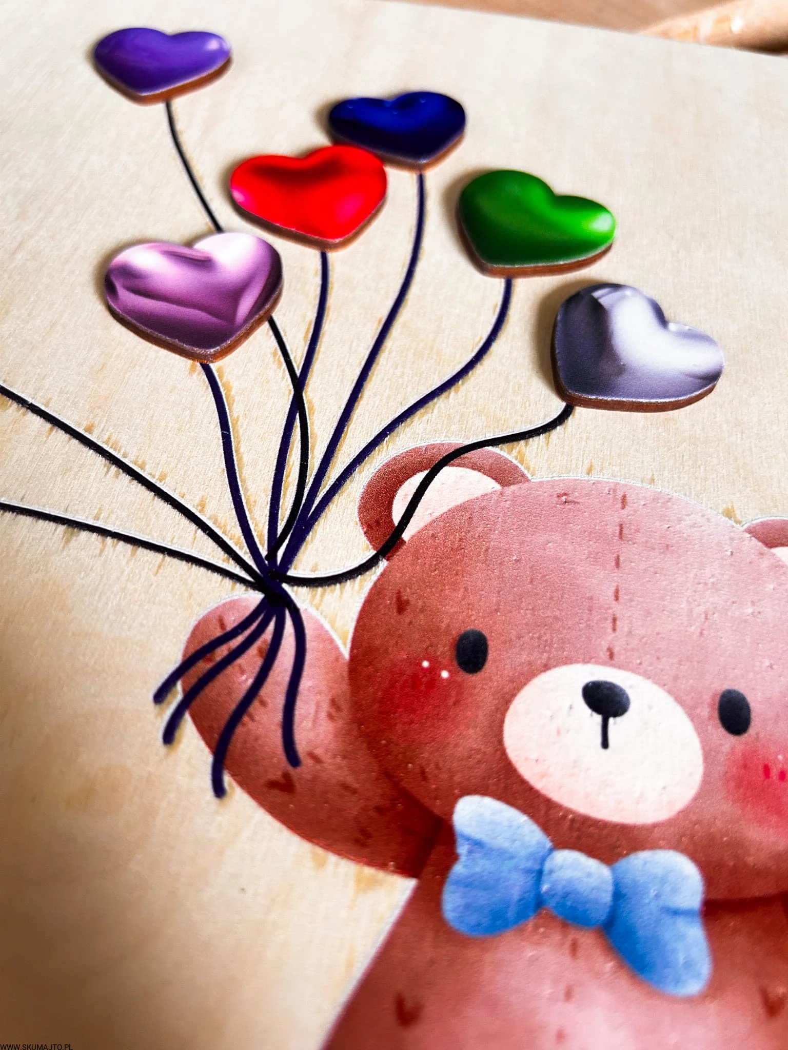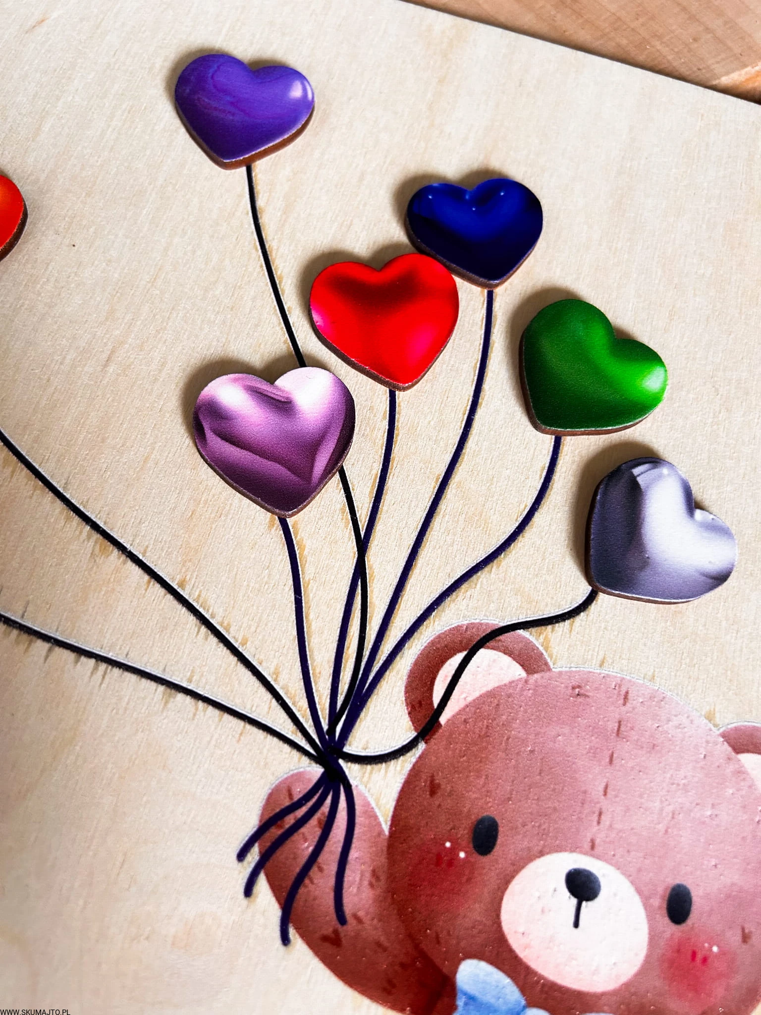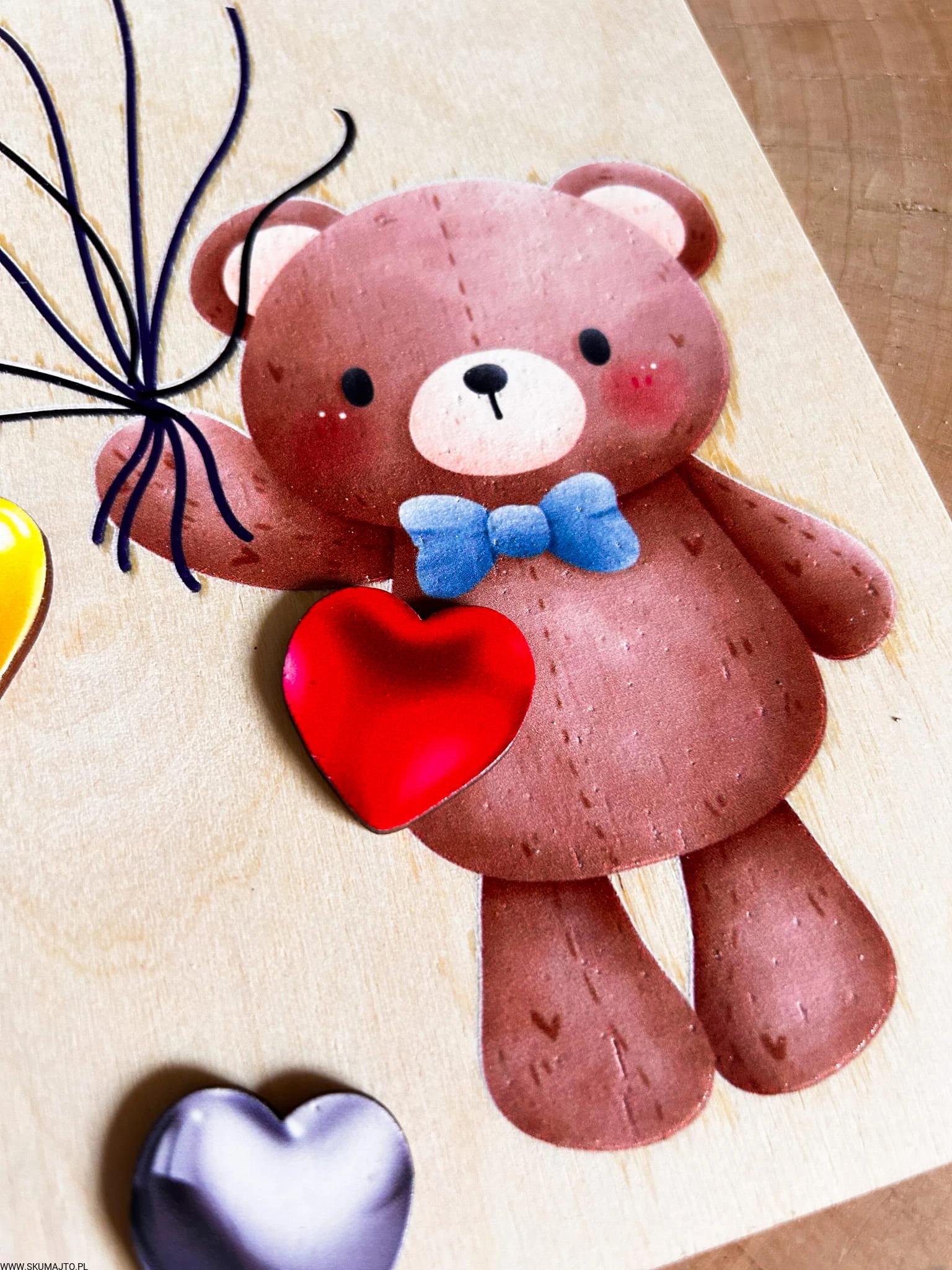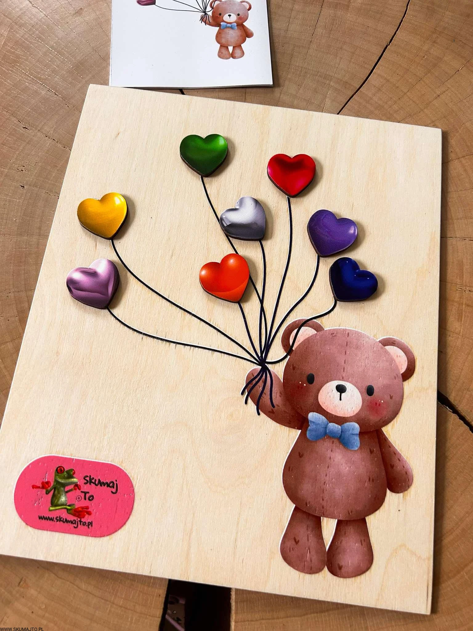 Miś z serduszkami, drewniana układanka montessori, odwzorowywanie