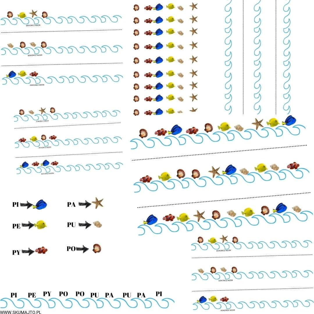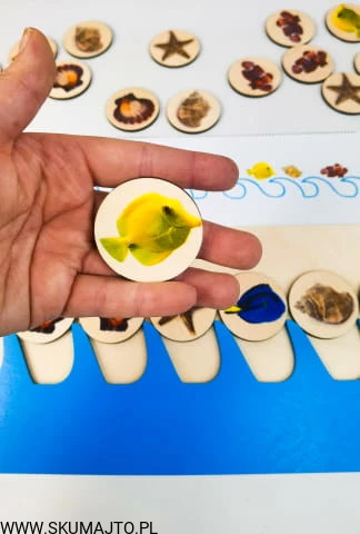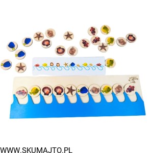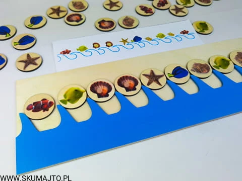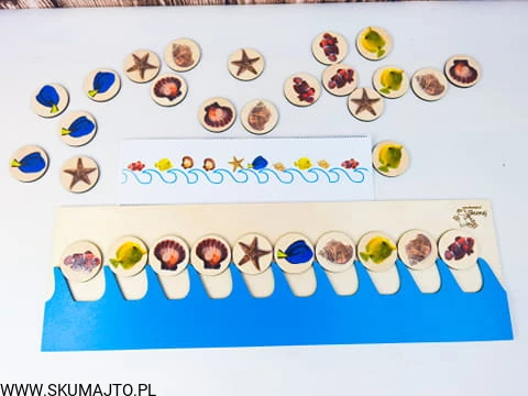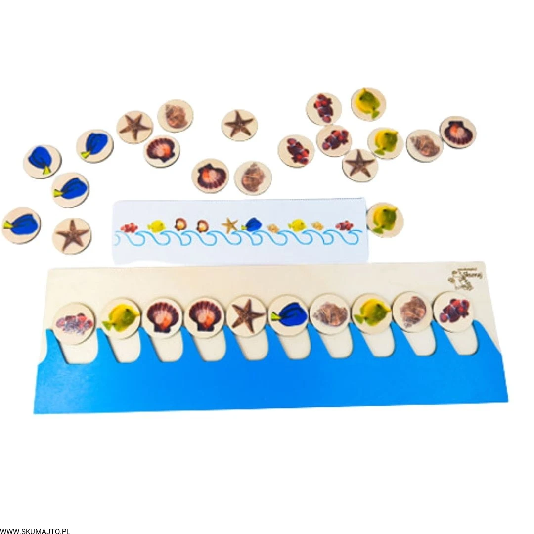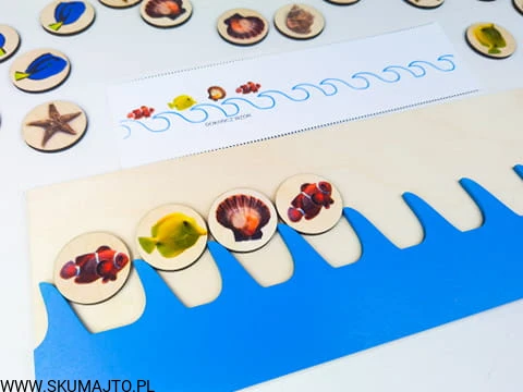 Morskie sekwencje, drewniana układanka, nauka sekwencji, terapia mowy