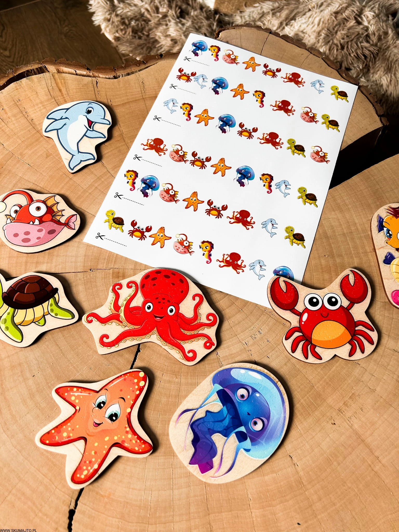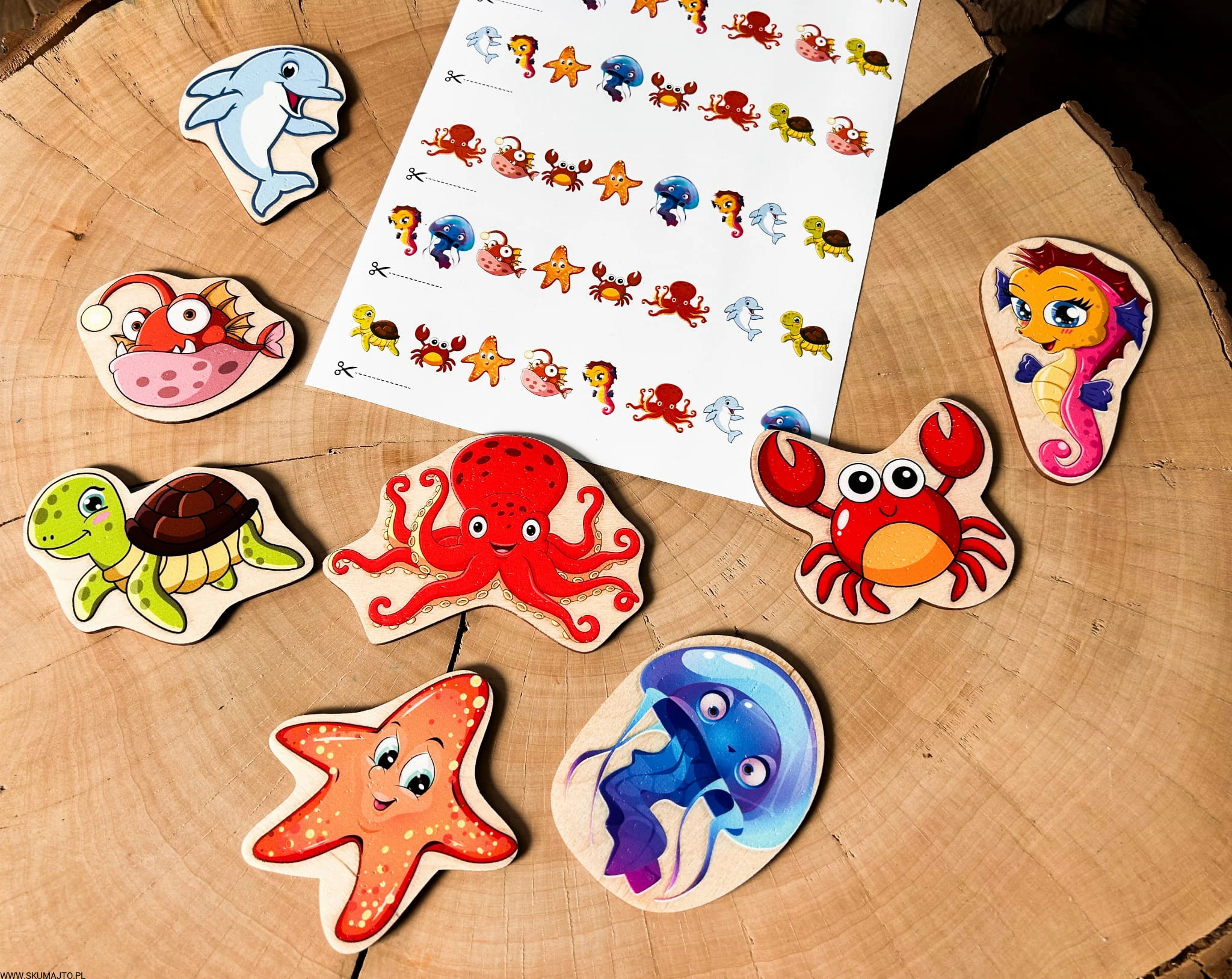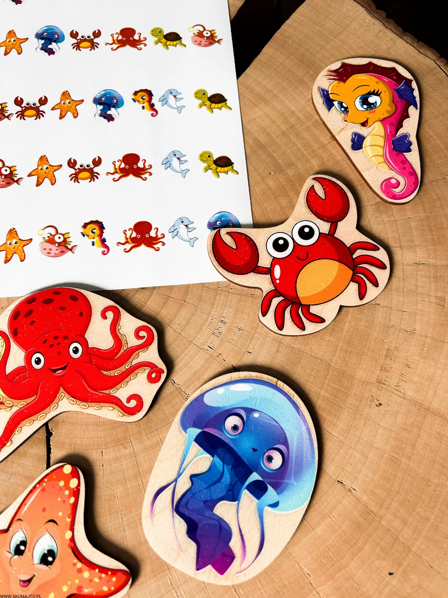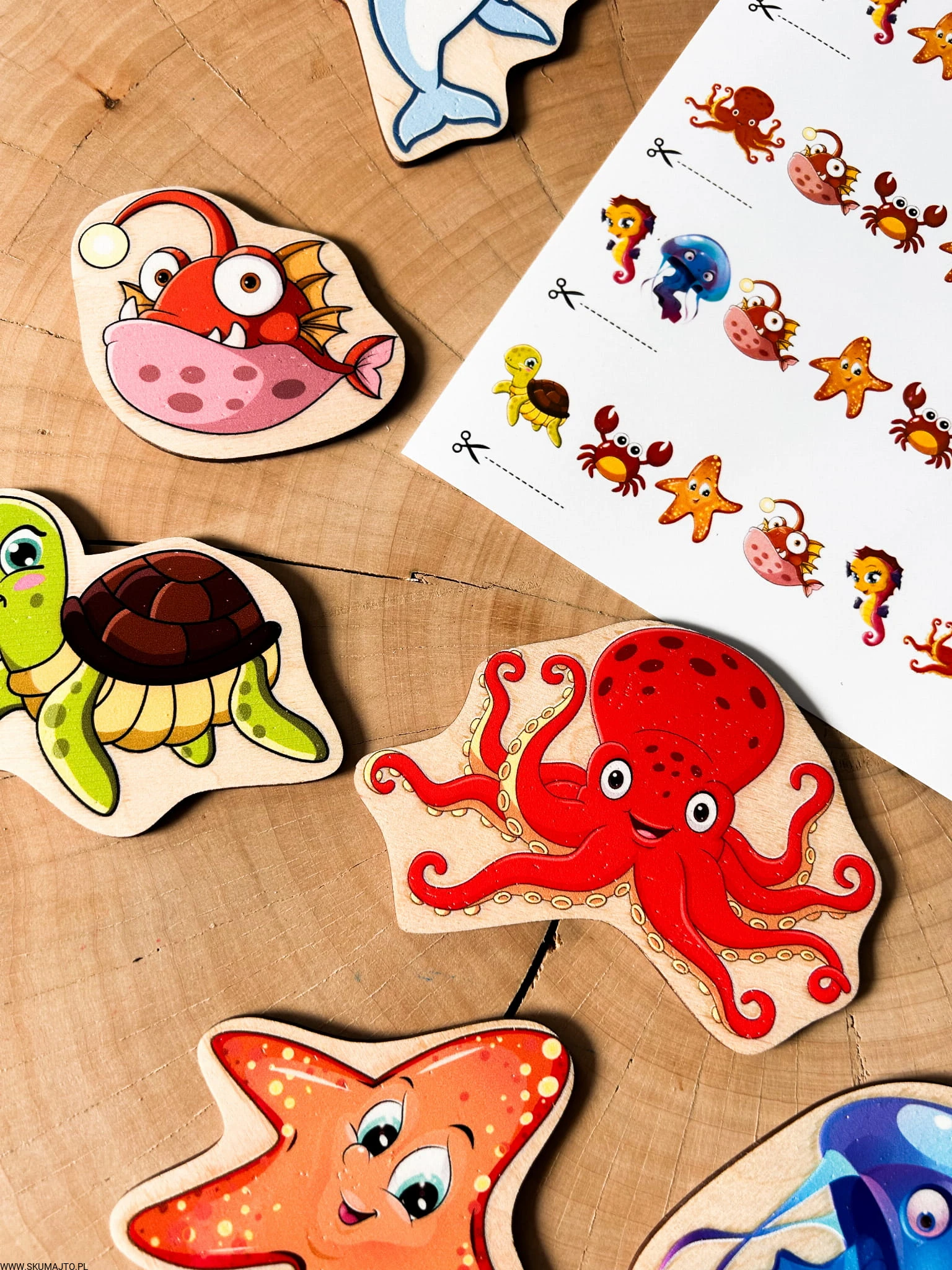 Morskie zwierzęta do odwzorowywania, drewniana układanka