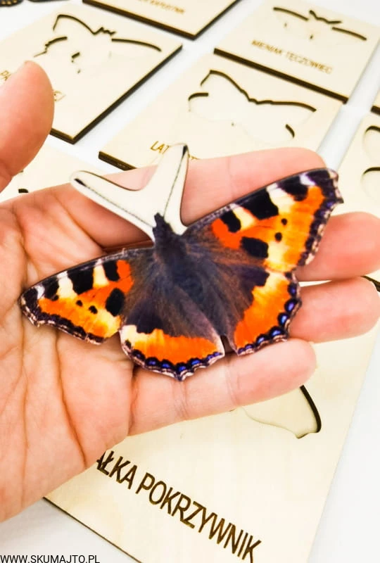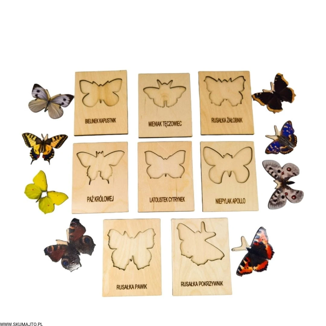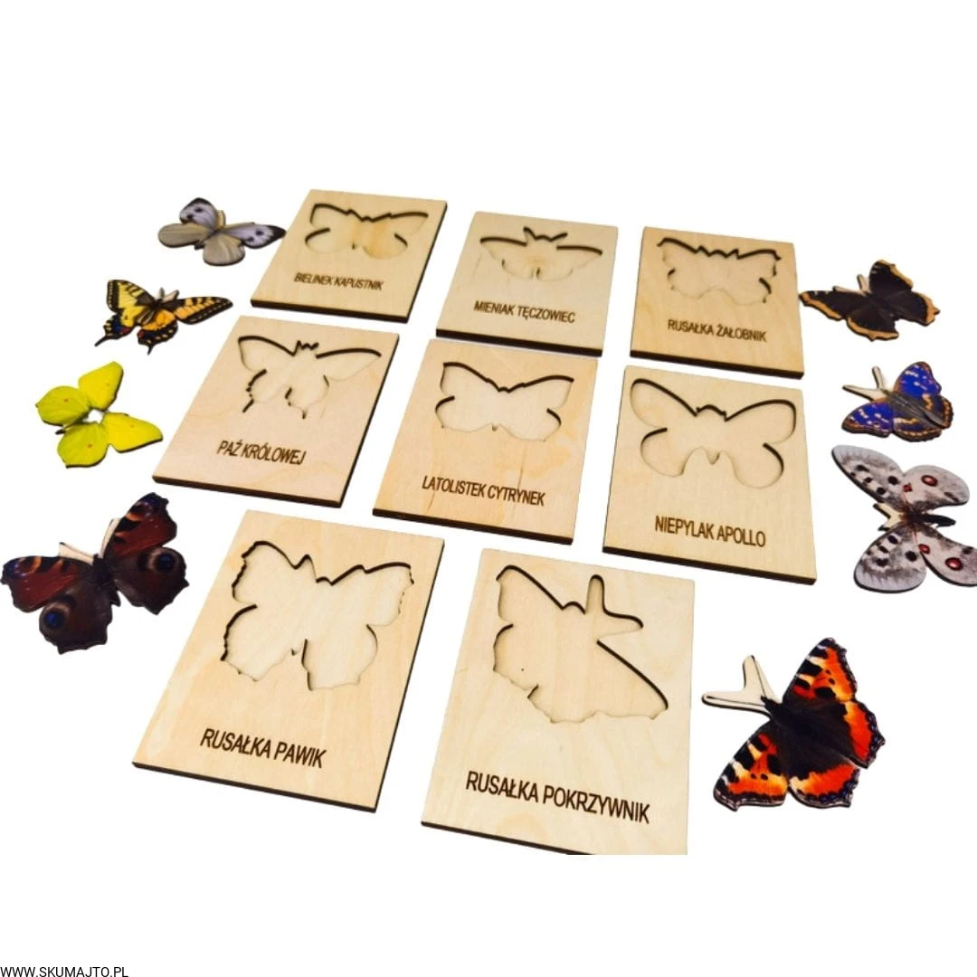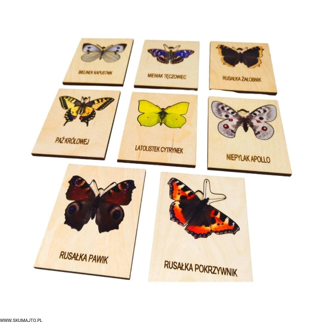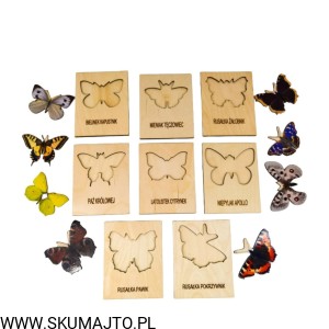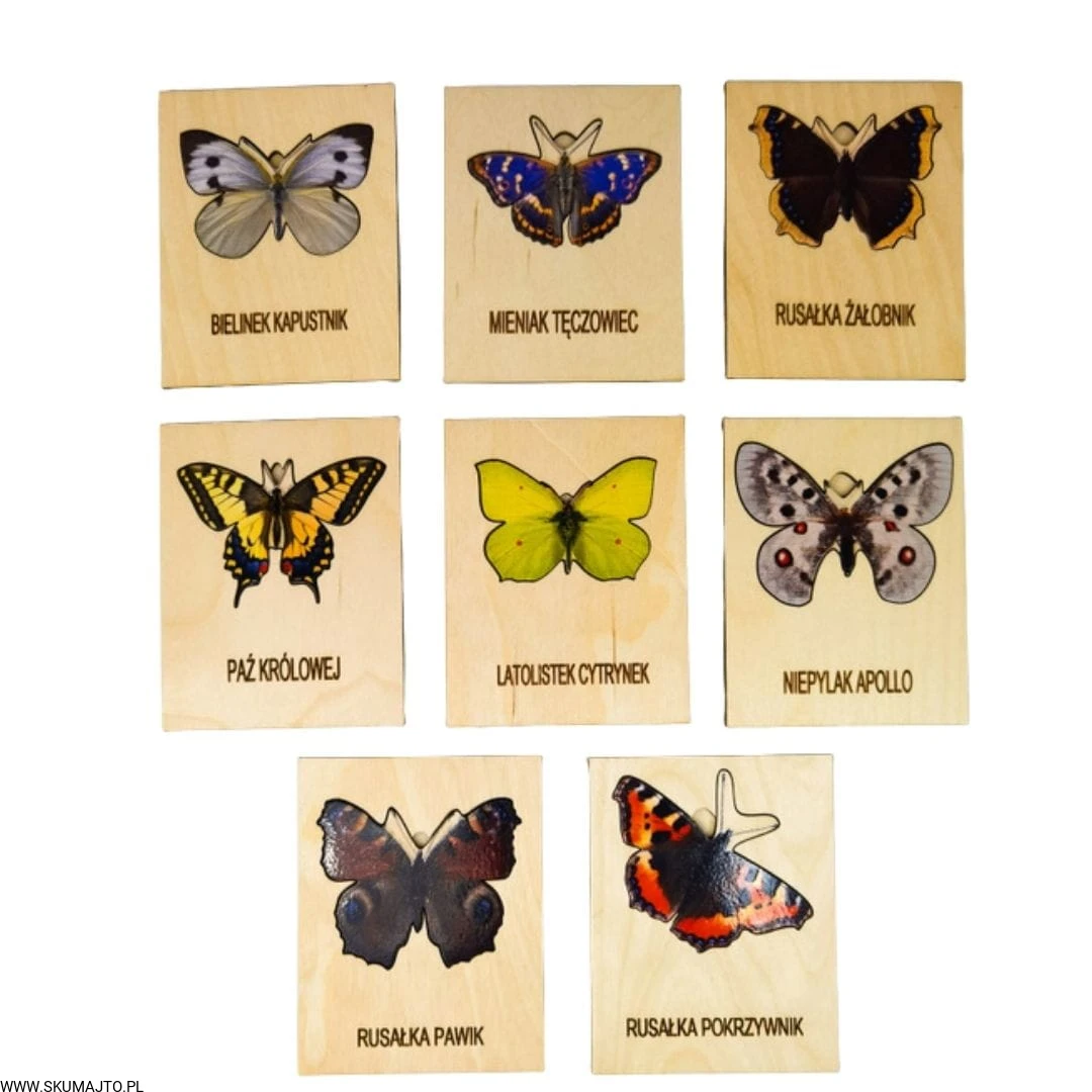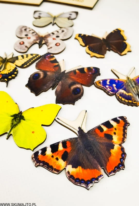 Motyle , drewniana układanka, gatunki motyli