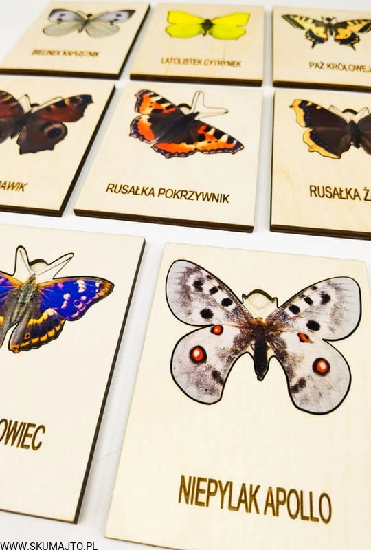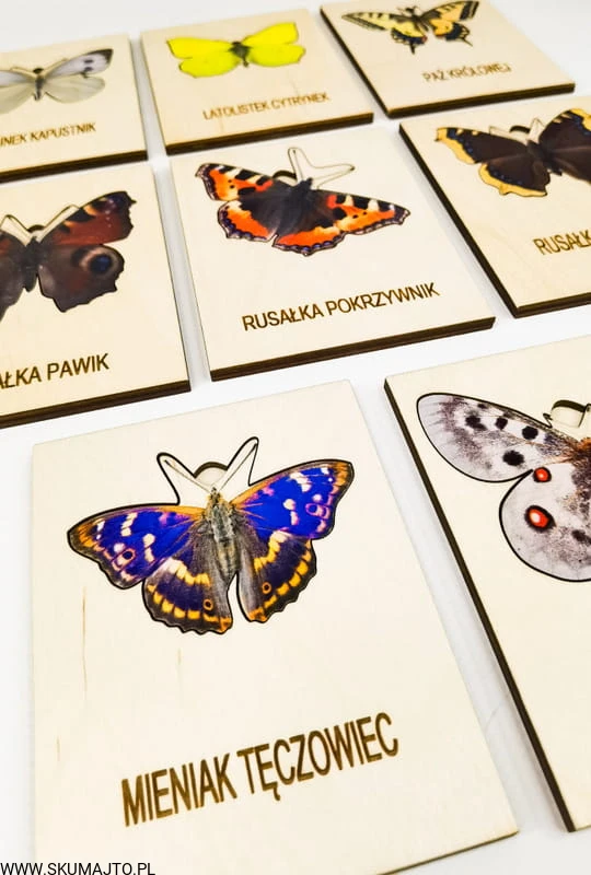 - 8 podstawek z nazwami: Podstawki z nazwami motyli do dopasowywania.