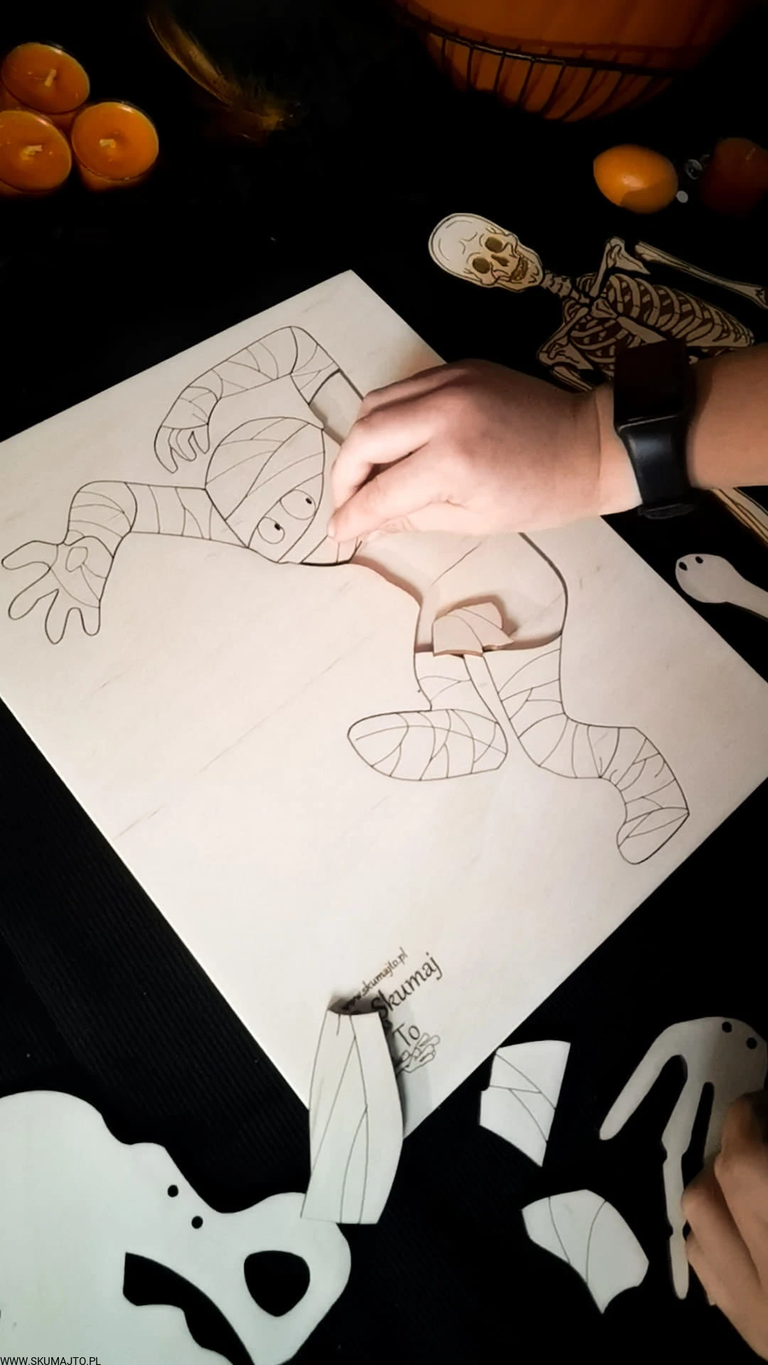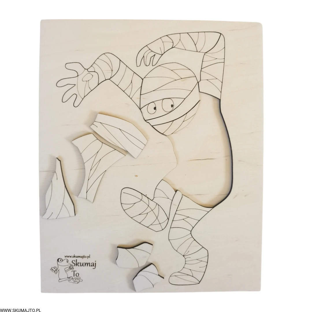 Mumia, drewniane puzzle, halloween, drewniana kolorowanka