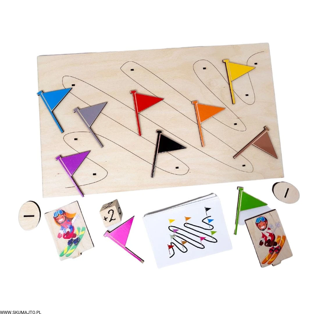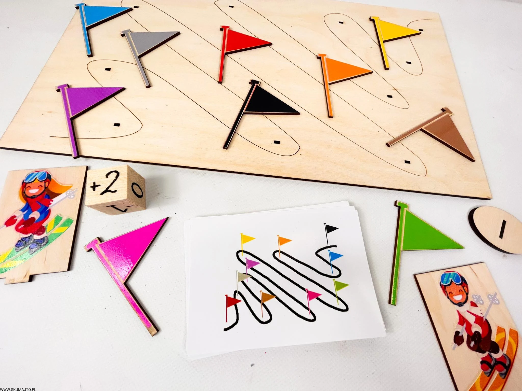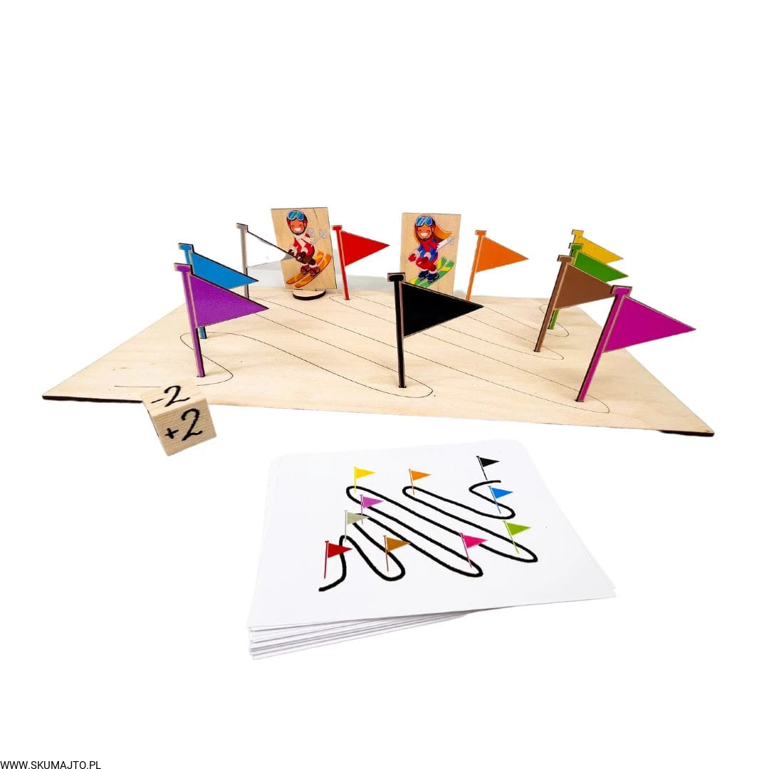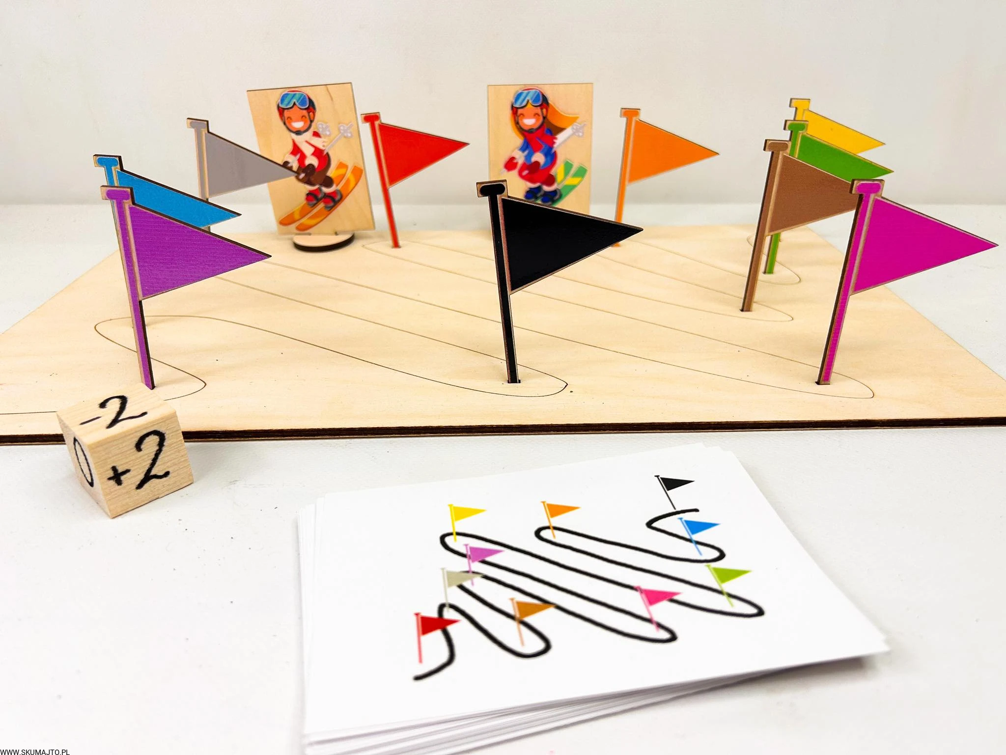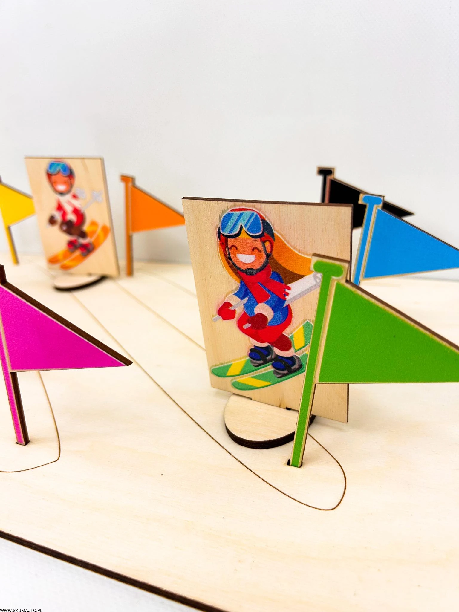- Interaktywność i Kreatywność: Dzięki dodatkowej, pustej kostce, dzieci mogą samodzielnie tworzyć zasady narciarskiego wyścigu, co rozwija kreatywność i interaktywność.