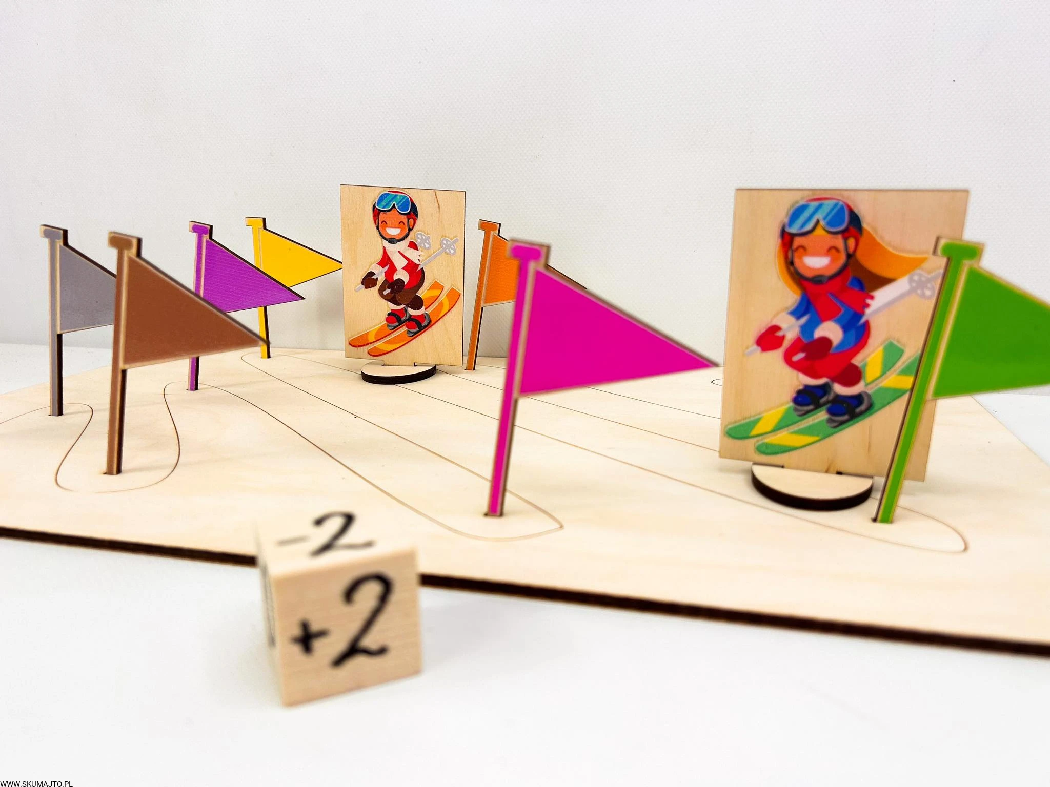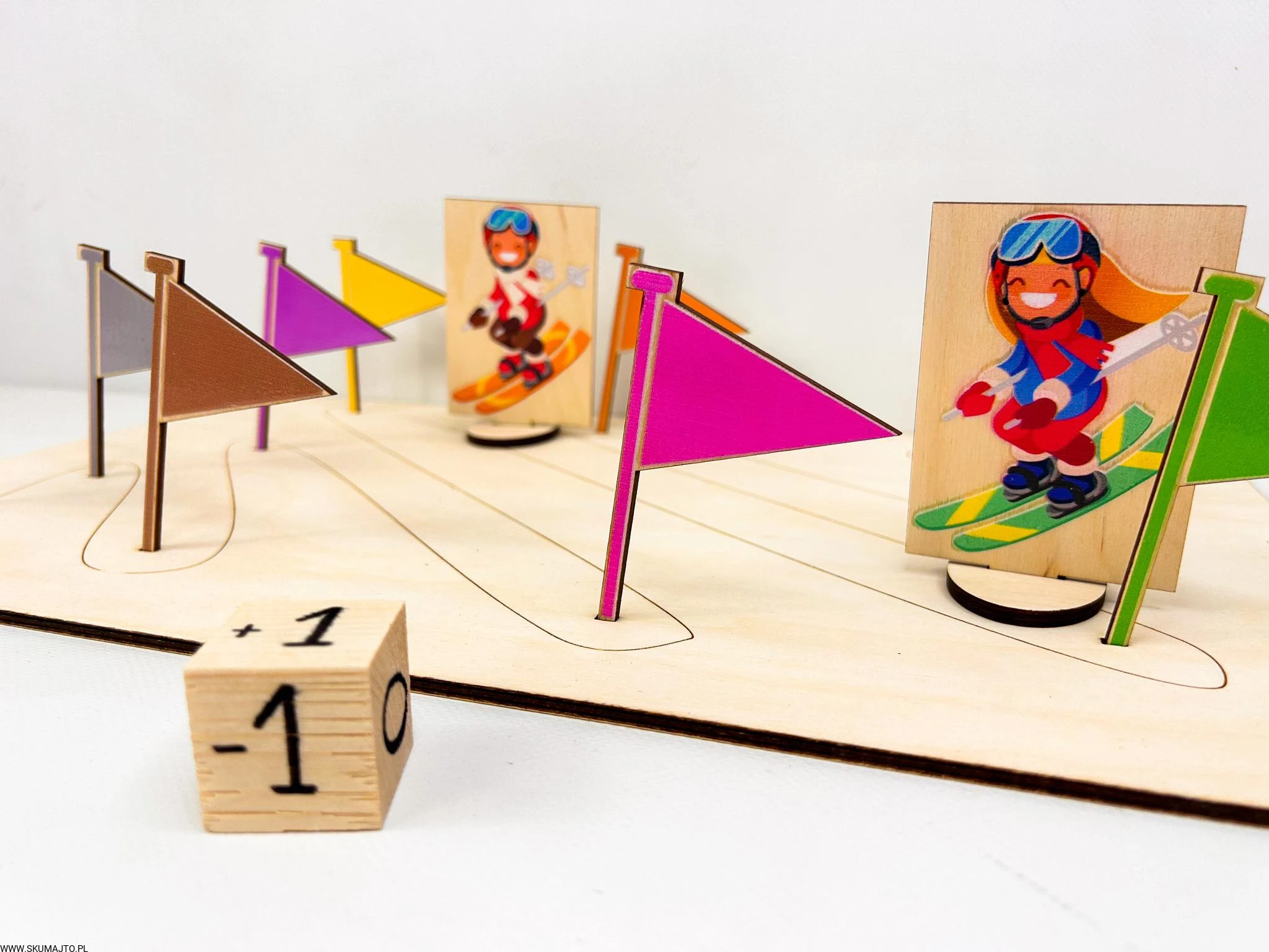 - Narciarski Wyścig: Narciarze ustawiają się na starcie, a każdy z graczy rzuca kostką i przesuwa swojego narciarza o odpowiednią ilość pól. Kostka z napisami dodaje emocji, zawierając pola z cofnięciem o 1 lub 2 miejsca oraz pole "0", gdzie narciarz stoi w miejscu.