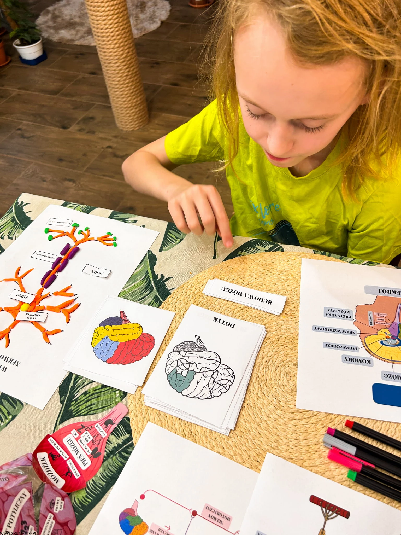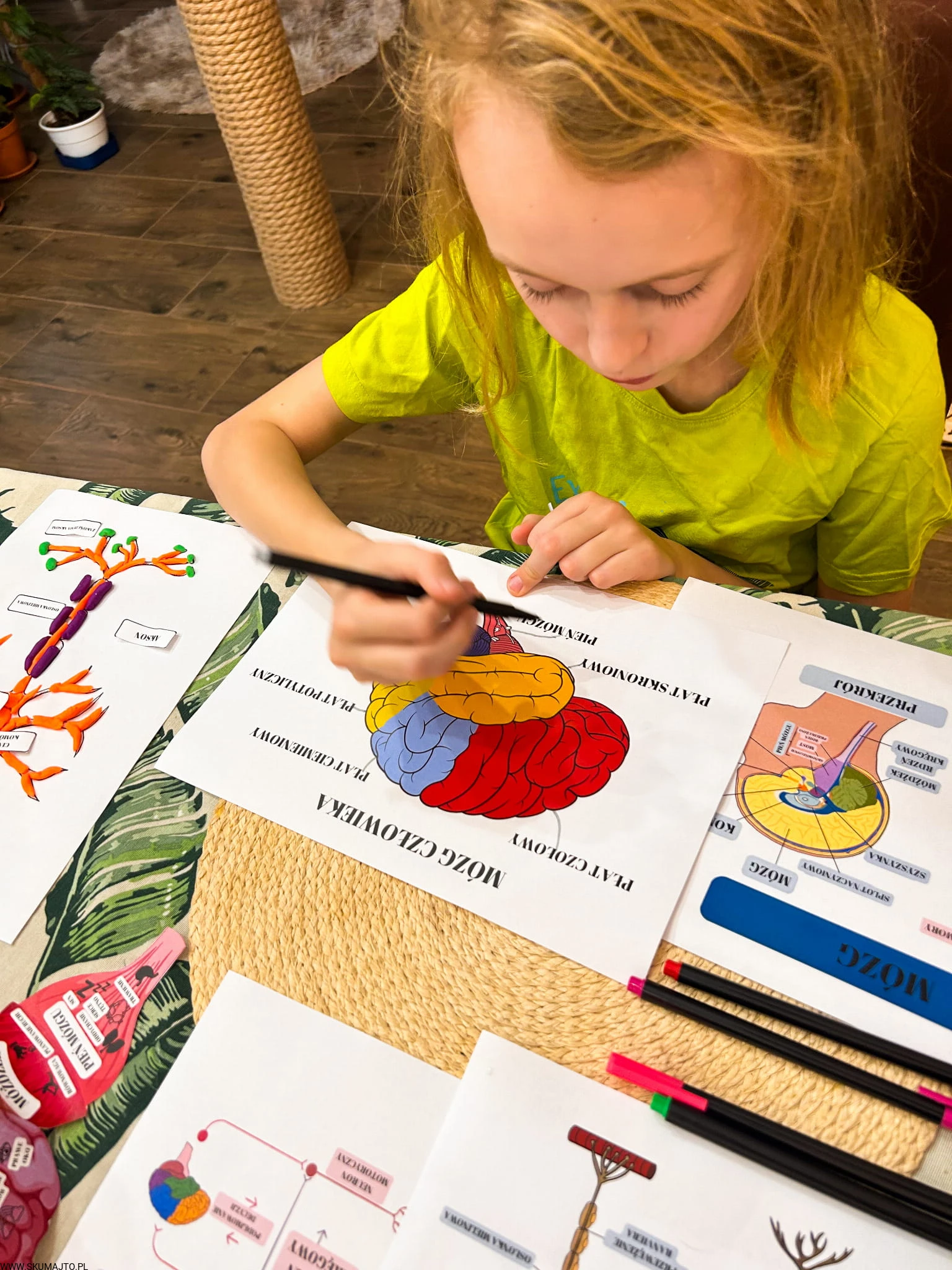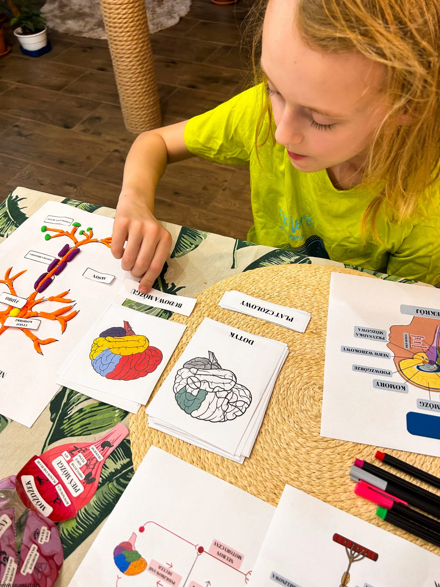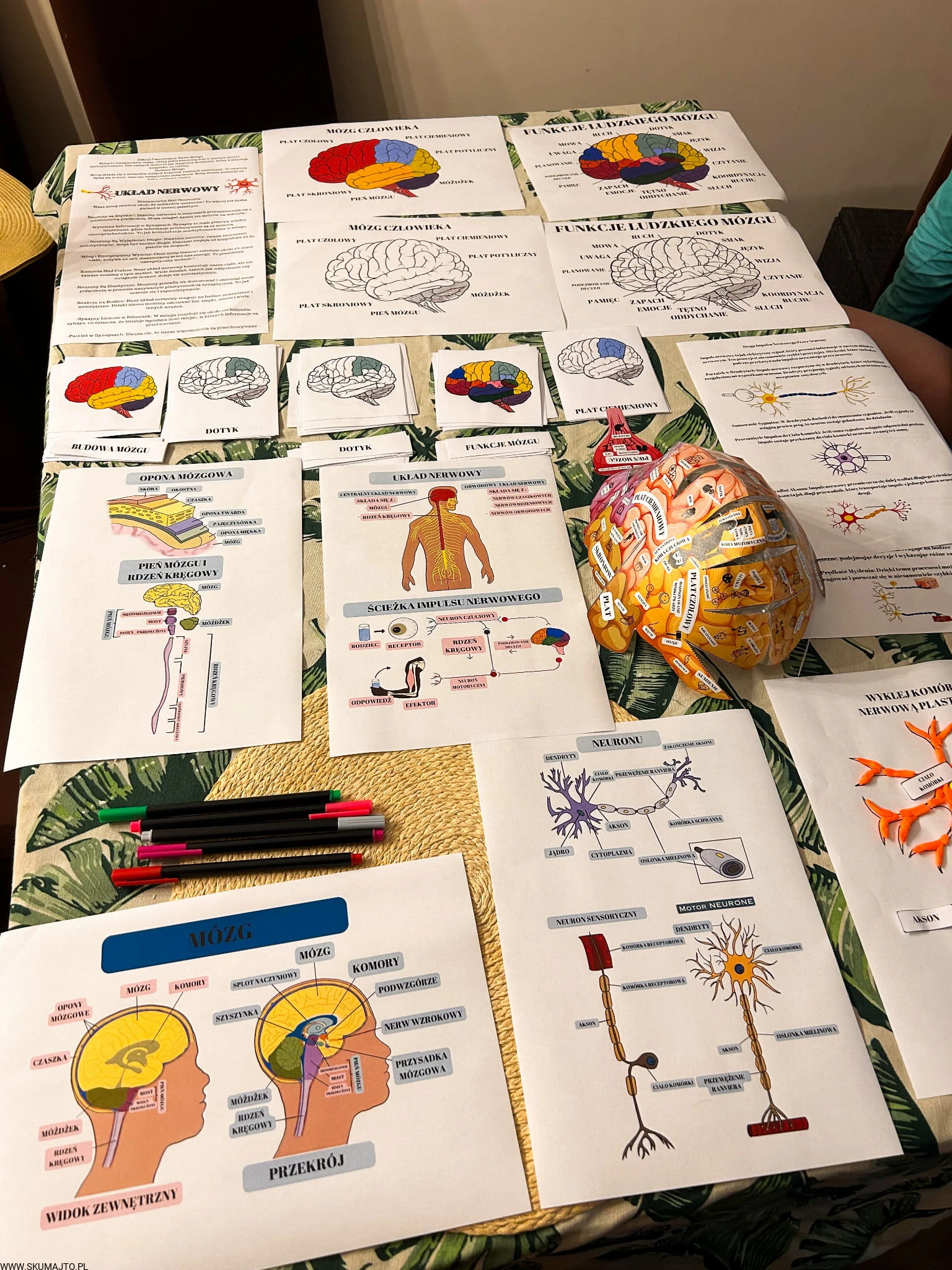 Ale to nie wszystko! W zestawie znajdują się także karty w wersji PDF, które zawierają aż 26 fascynujących ciekawostek o układzie nerwowym, budowie mózgu i jego funkcjach. Karty trójdzielne pozwalają na zgłębienie wiedzy na temat budowy i funkcji mózgu, a trójwymiarowy model mózgu do własnego sklejenia stanowi doskonałą okazję do nauki, praktycznej zabawy i eksploracji, umożliwiając dzieciom zrozumienie, gdzie znajdują się różne ośrodki mózgowe.