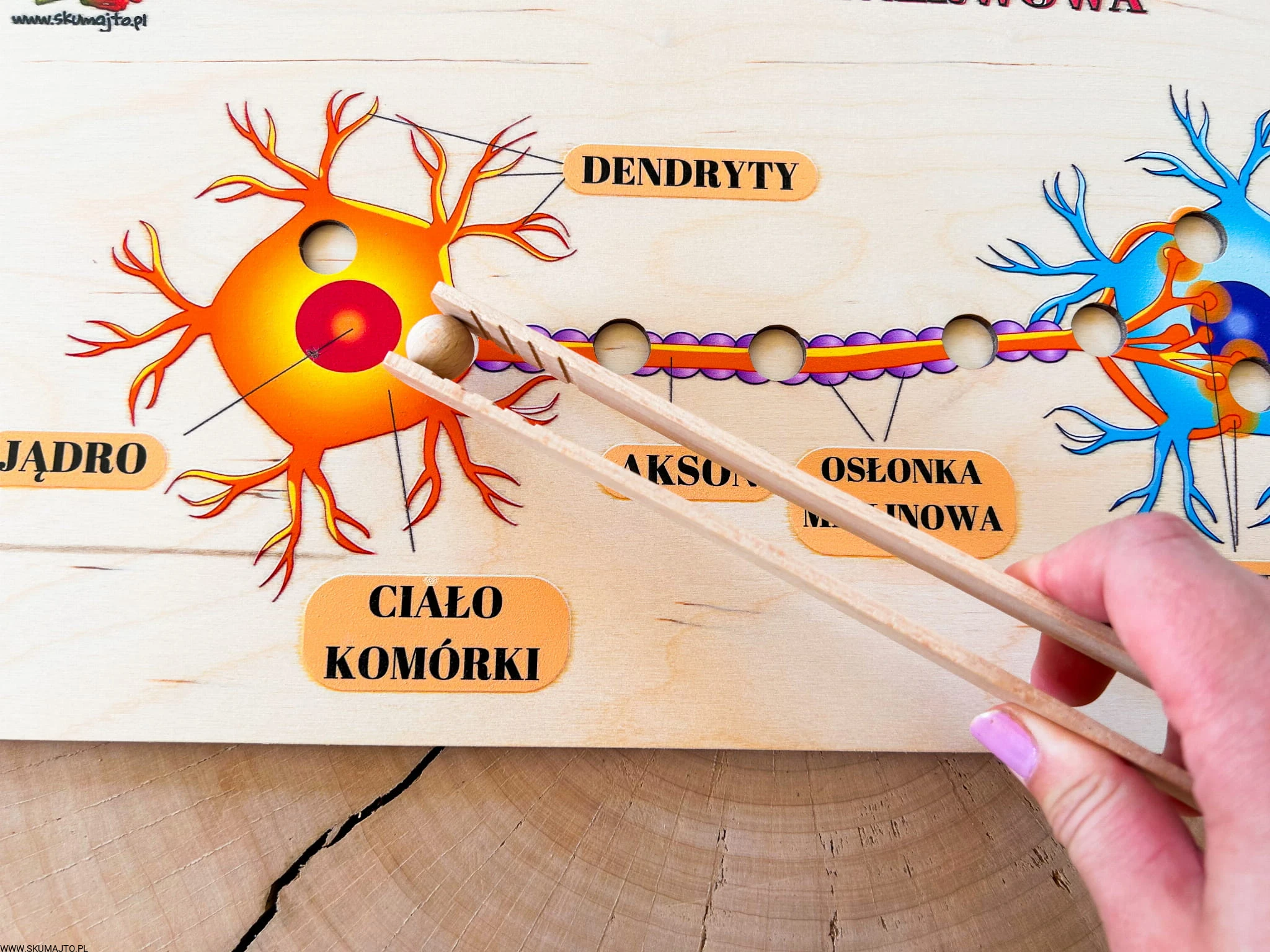 Witaj w fascynującym świecie nauki i interaktywnej zabawy! Przedstawiamy naszą niezwykłą edukacyjną układankę z drewna, która pozwala dzieciom odkrywać tajemnice budowy neuronów oraz fascynujący proces przesyłania impulsów nerwowych. To nie tylko zabawka, to prawdziwa podróż po świecie mózgu i układu nerwowego, która angażuje dzieci w naukę i eksperymentowanie w najbardziej ekscytujący sposób.