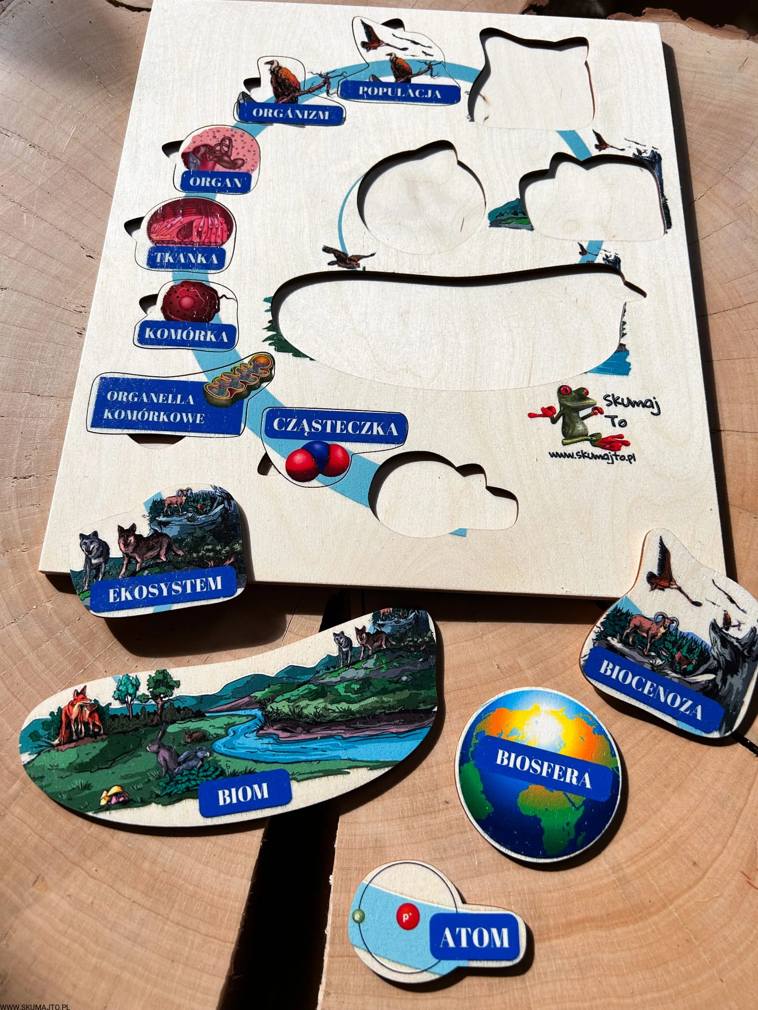 Rozwój umiejętności logicznego myślenia: Nasza układanka to ukryta skarbnica wiedzy o budowie biosfery. Dzieci będą musiały rozwiązywać zagadki i łączyć elementy, aby poznać jej hierarchię i strukturę. To doskonałe ćwiczenie dla małych umysłów.