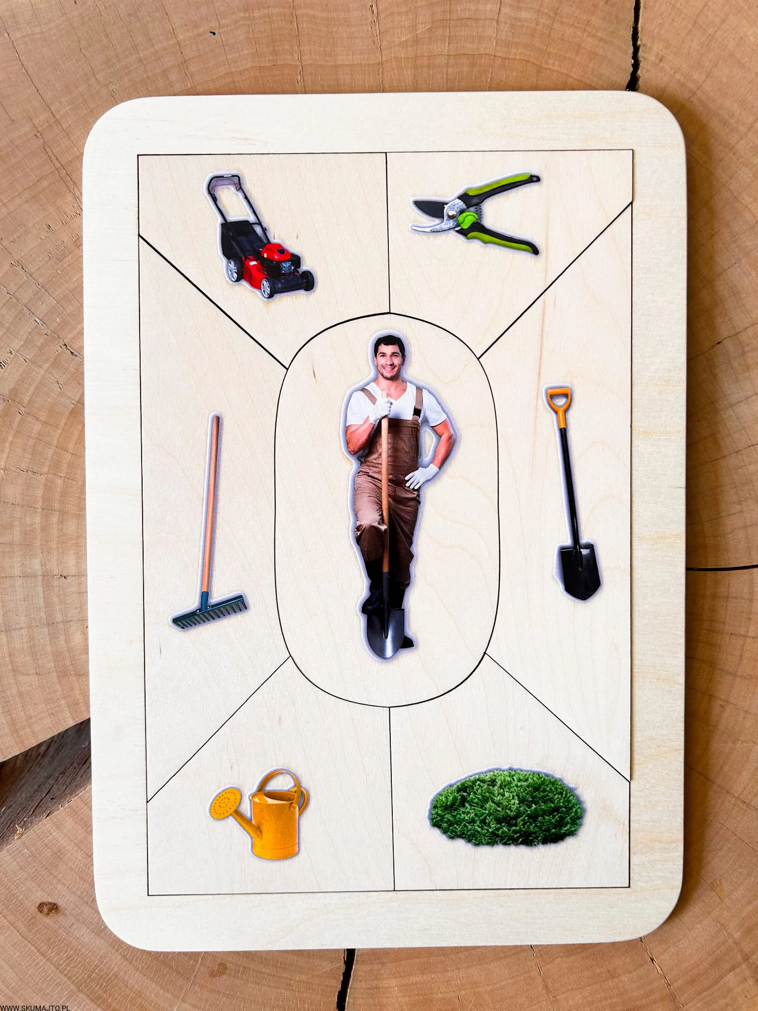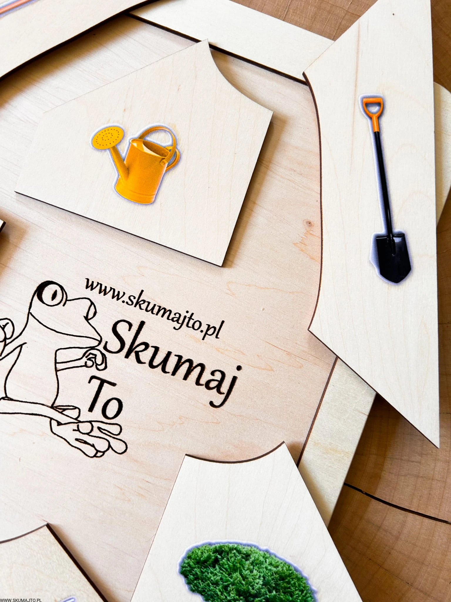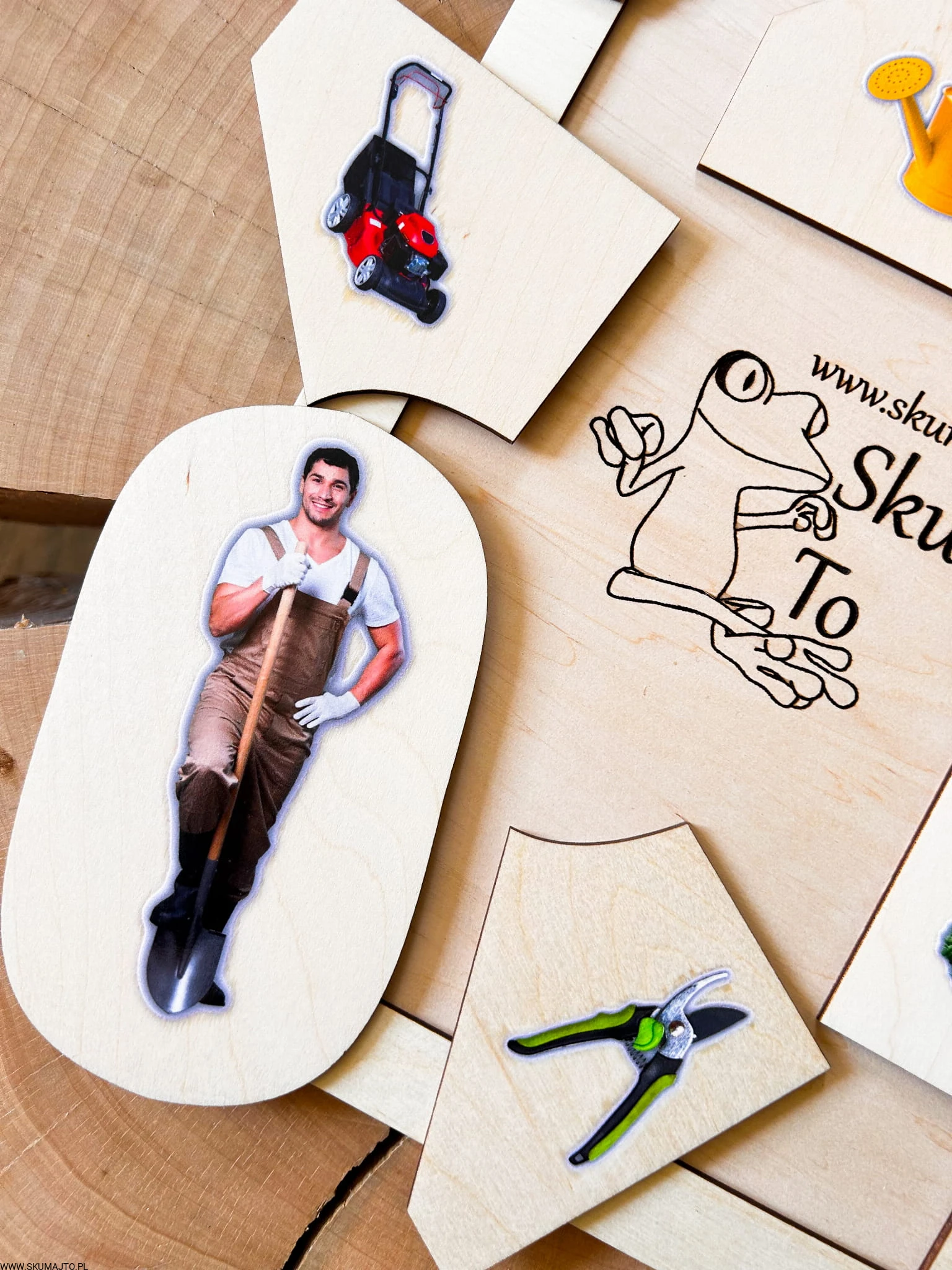 Drewniana układanka edukacyjna „Zawód: Ogrodnik” – uczymy przez naturę, bawimy się odpowiedzialnością