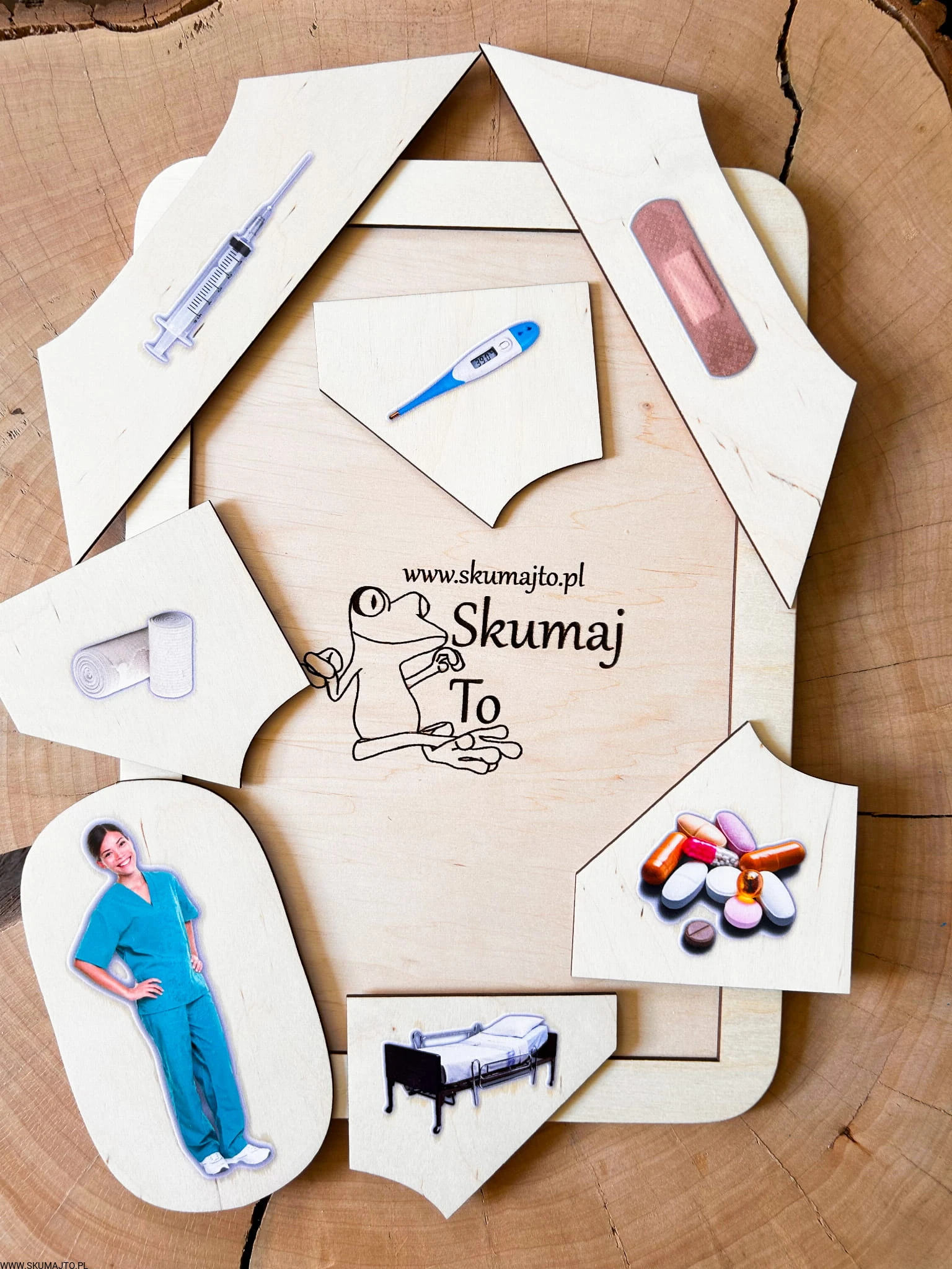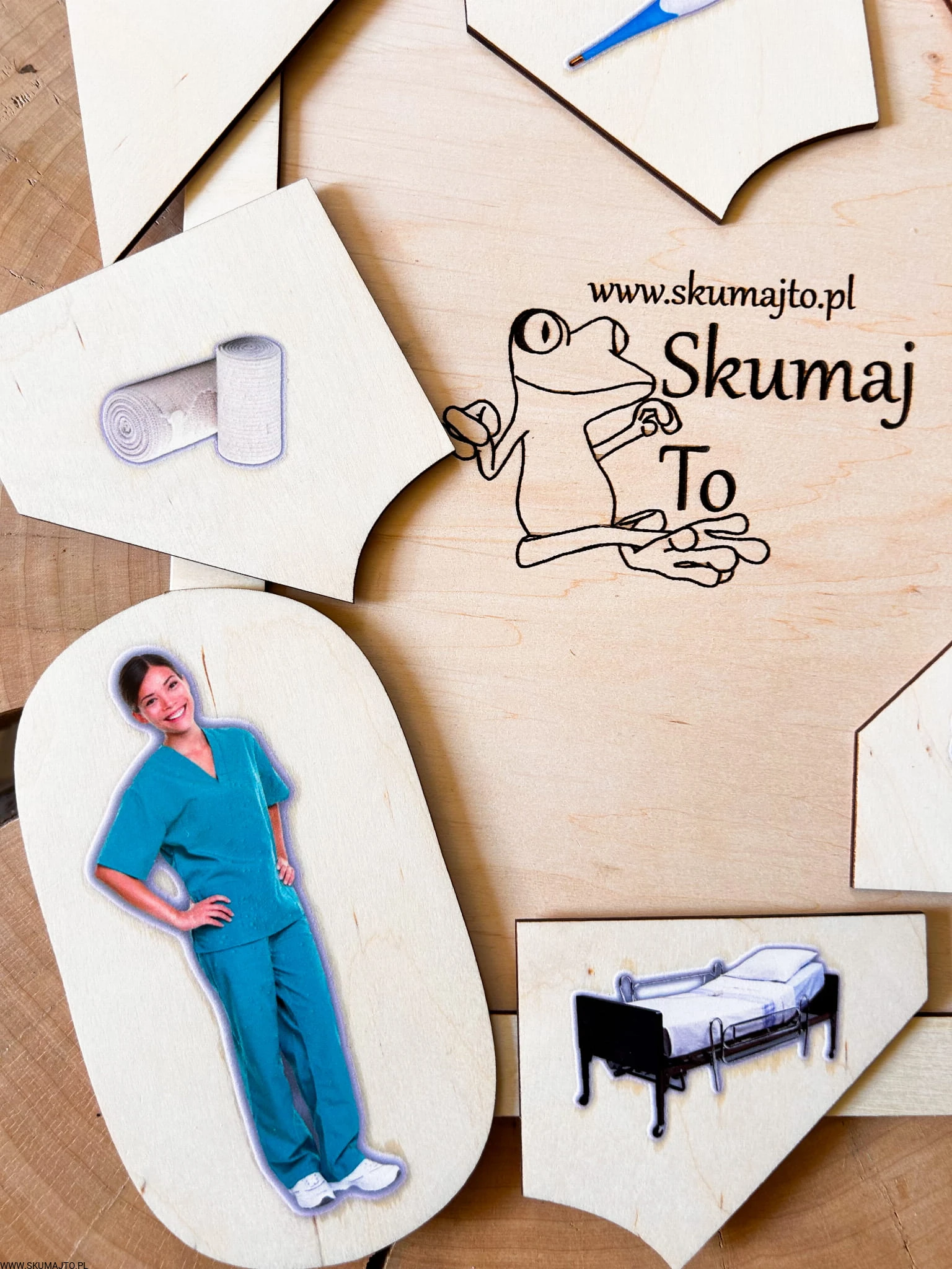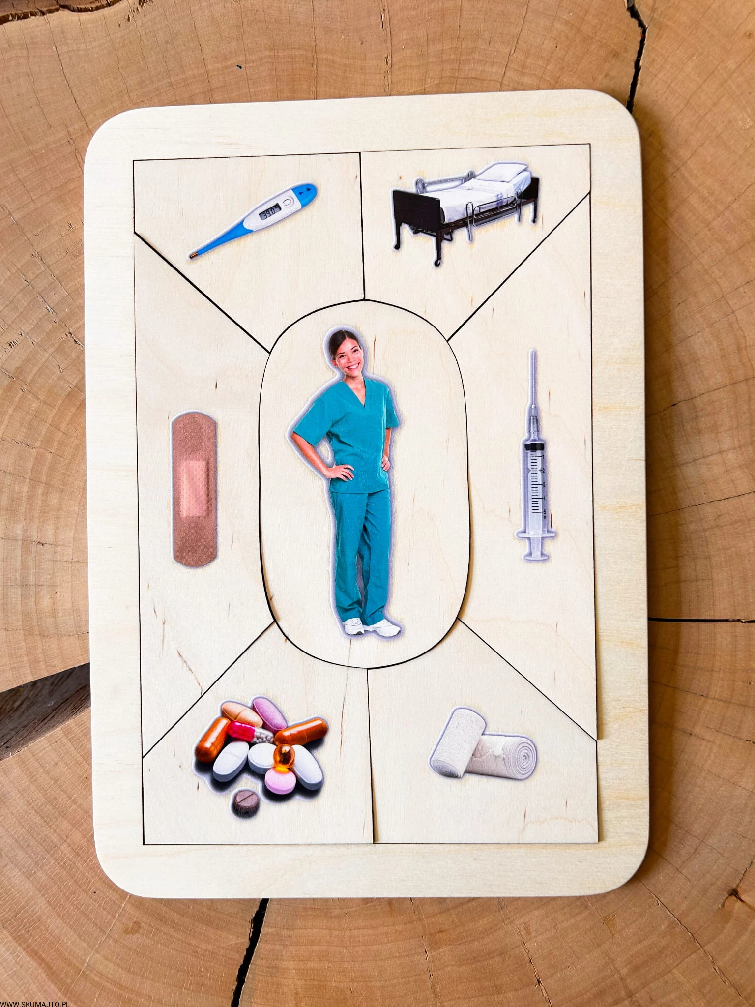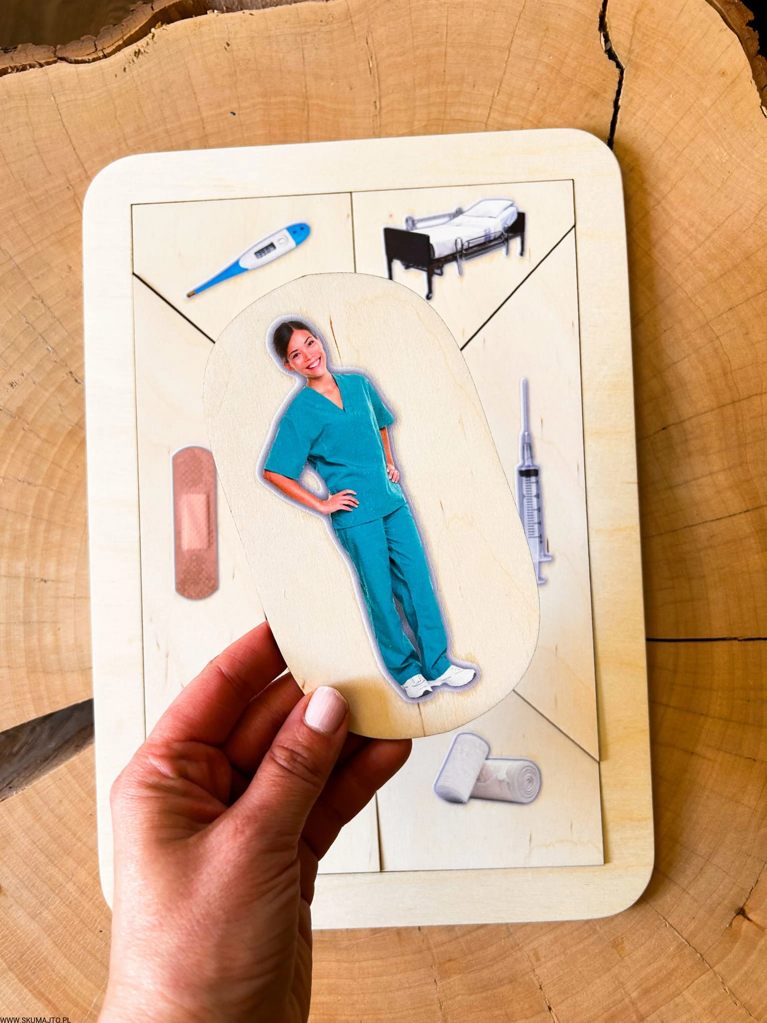 Drewniana układanka edukacyjna „Zawód: Pielęgniarka” – uczymy dzieci empatii, opieki i zrozumienia
