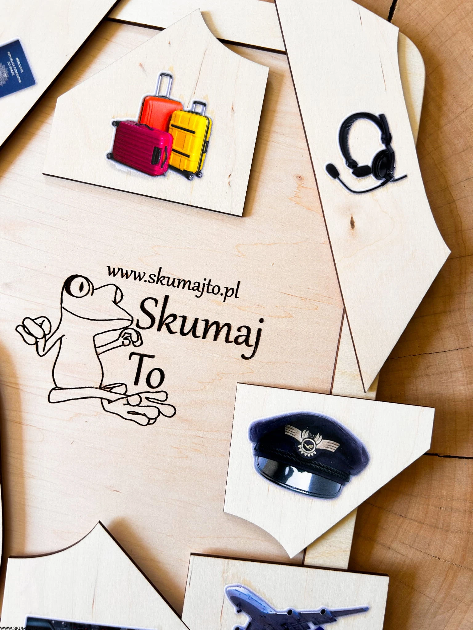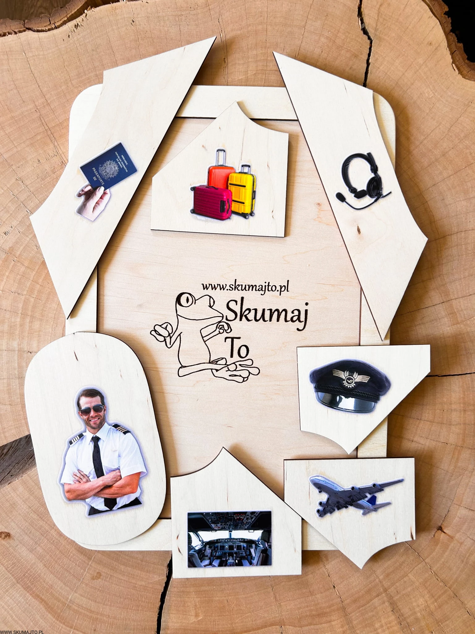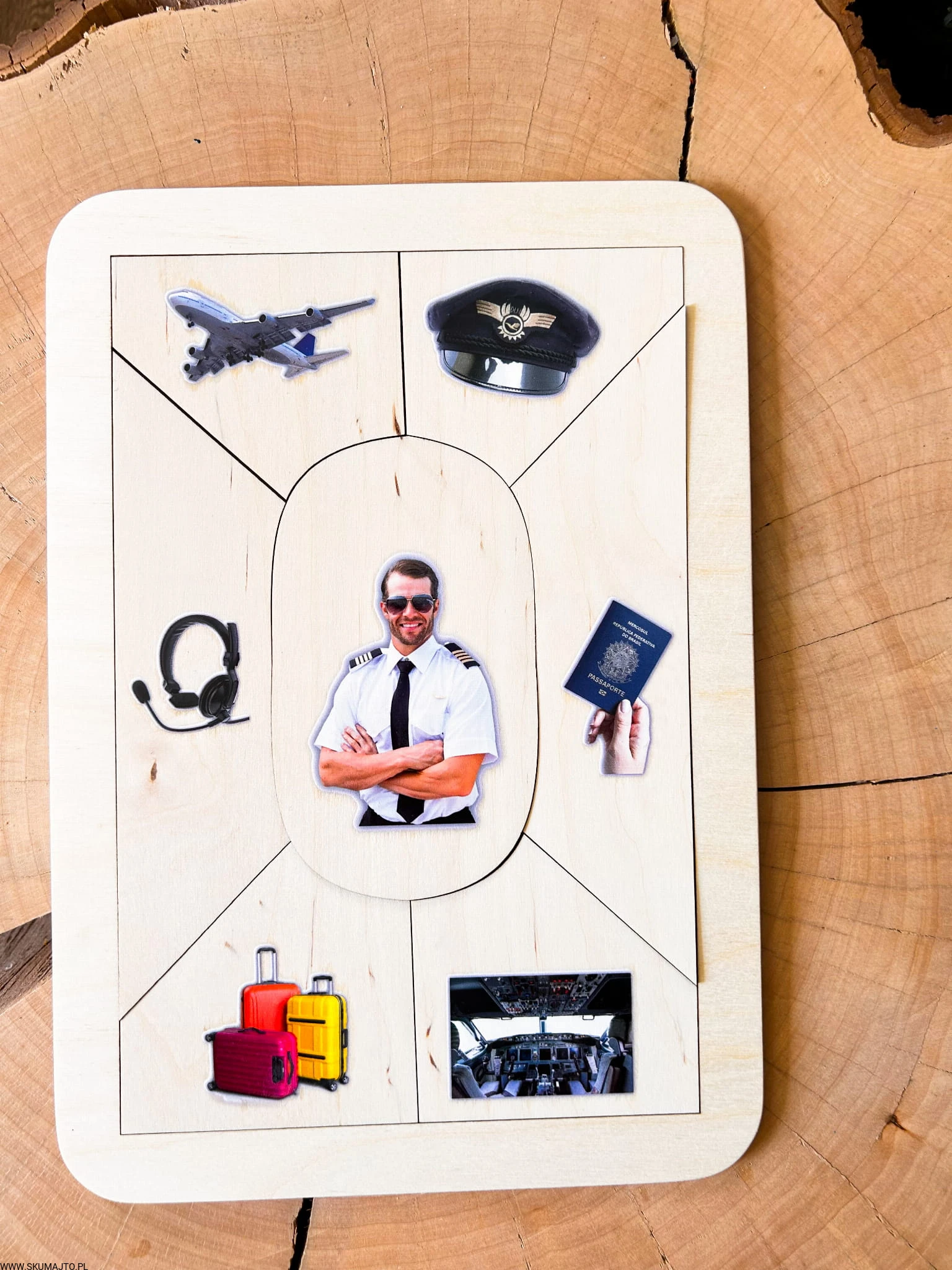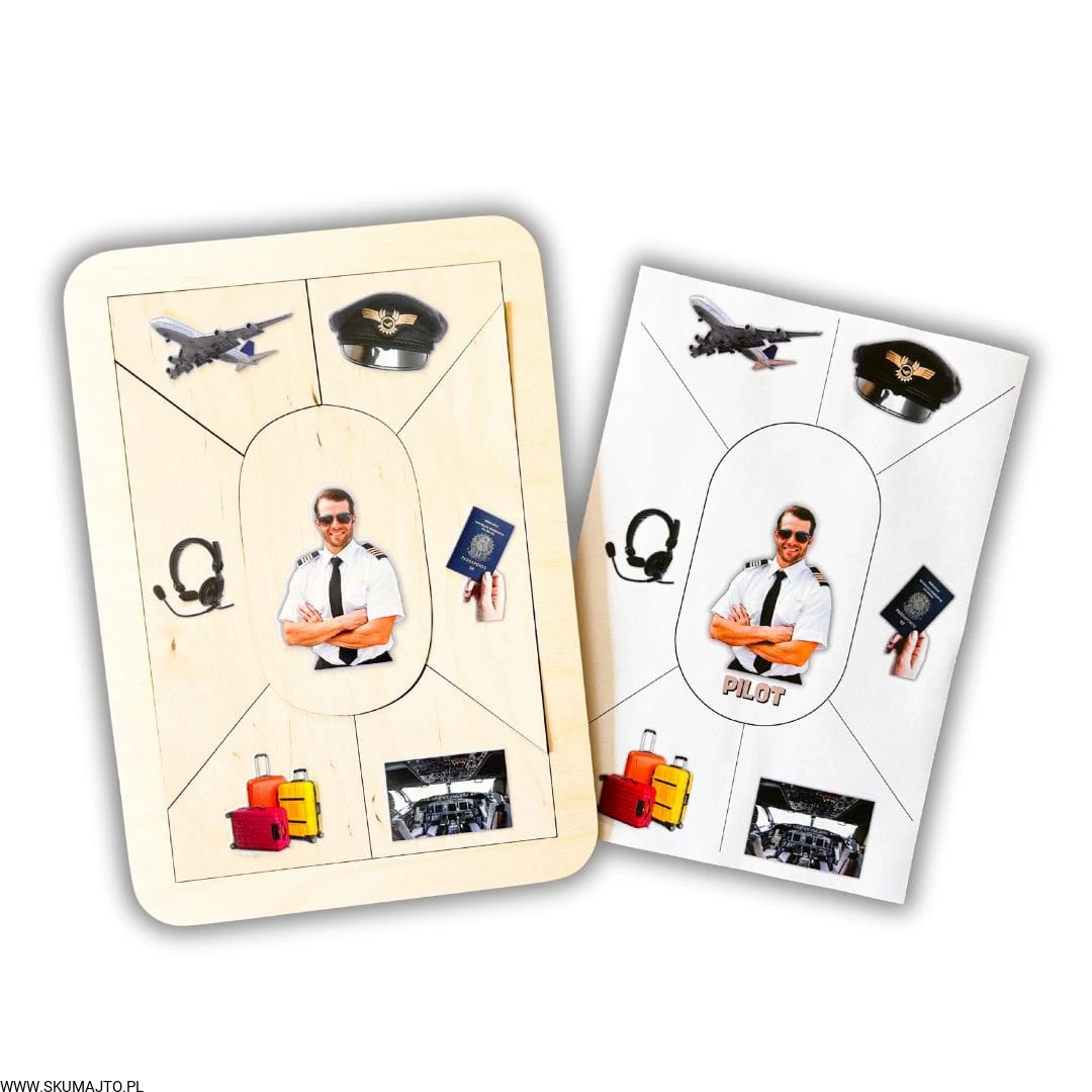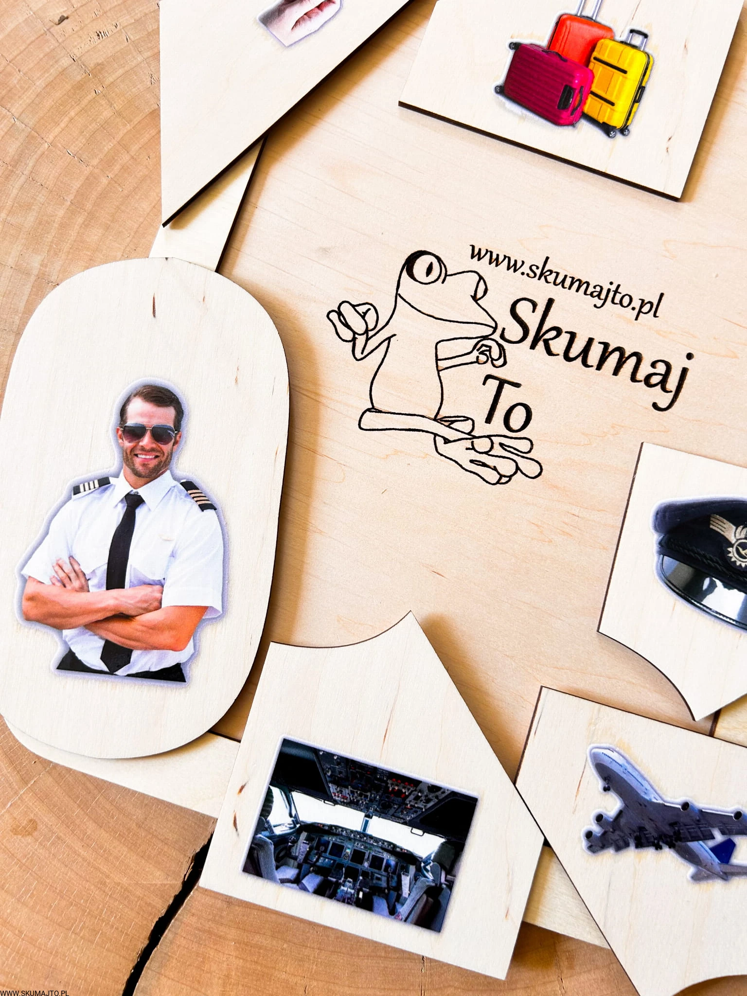 Drewniana układanka edukacyjna „Zawód: Pilot” – podróż do świata wysoko ponad chmurami