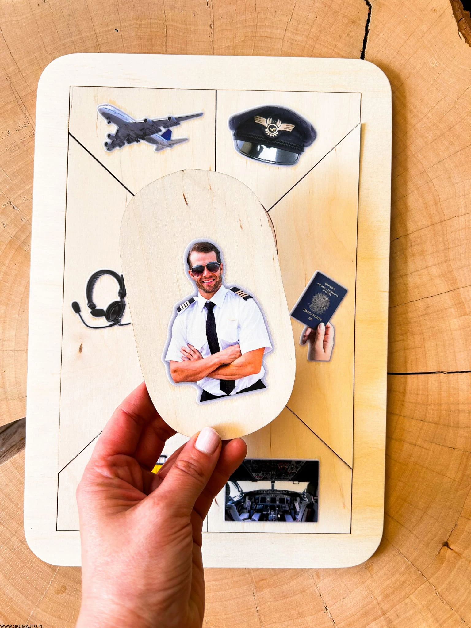 Jeśli tak – drewniana układanka „Zawód: Pilot” to dokładnie to, czego potrzebujecie.