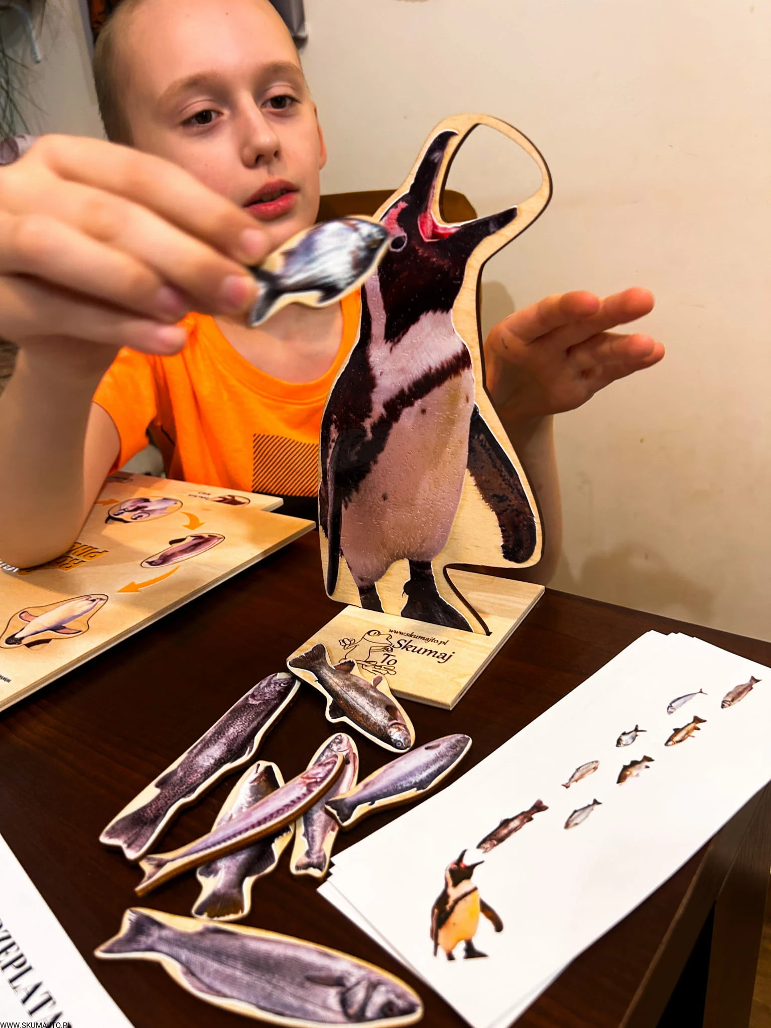 Pingwin do karmienia, drewniana układanka