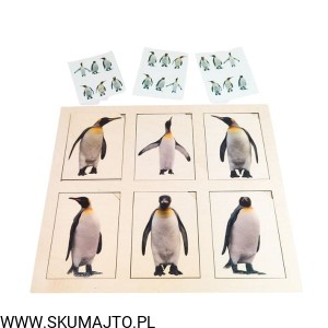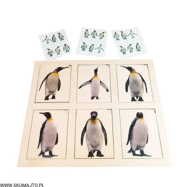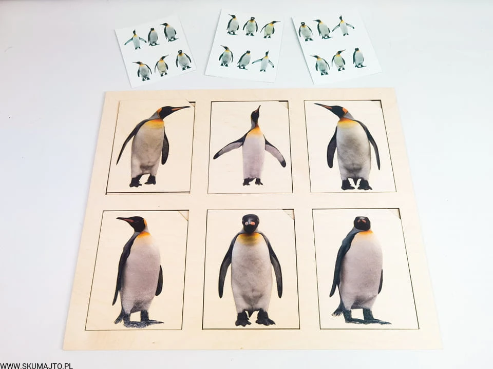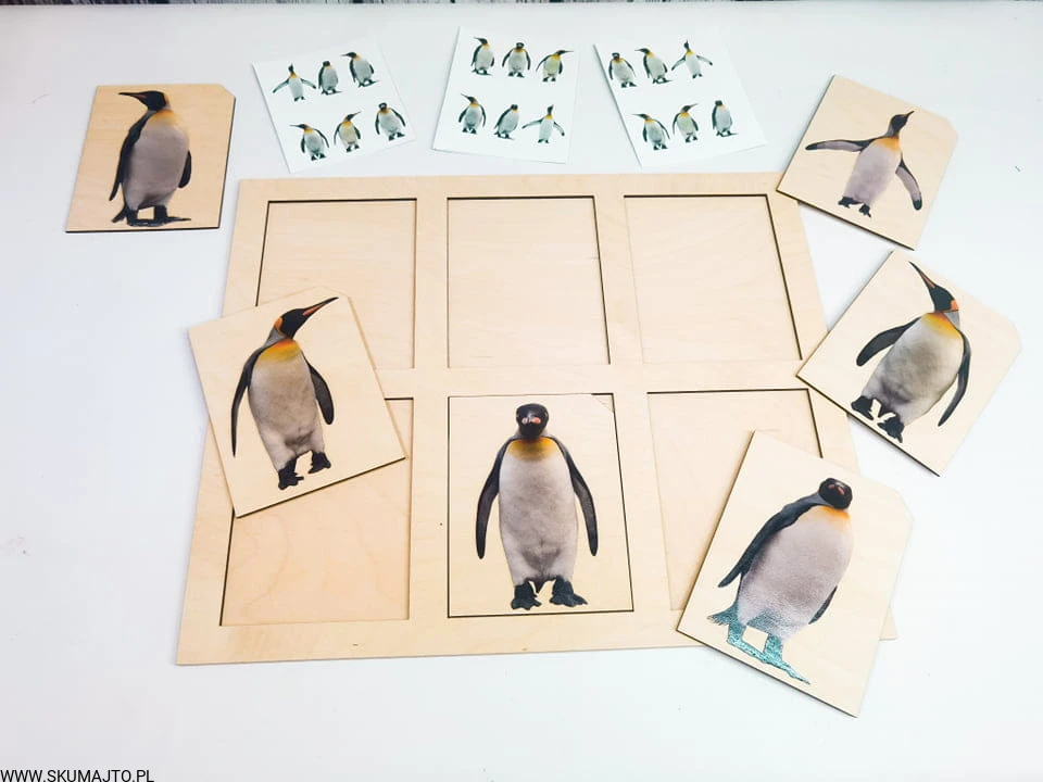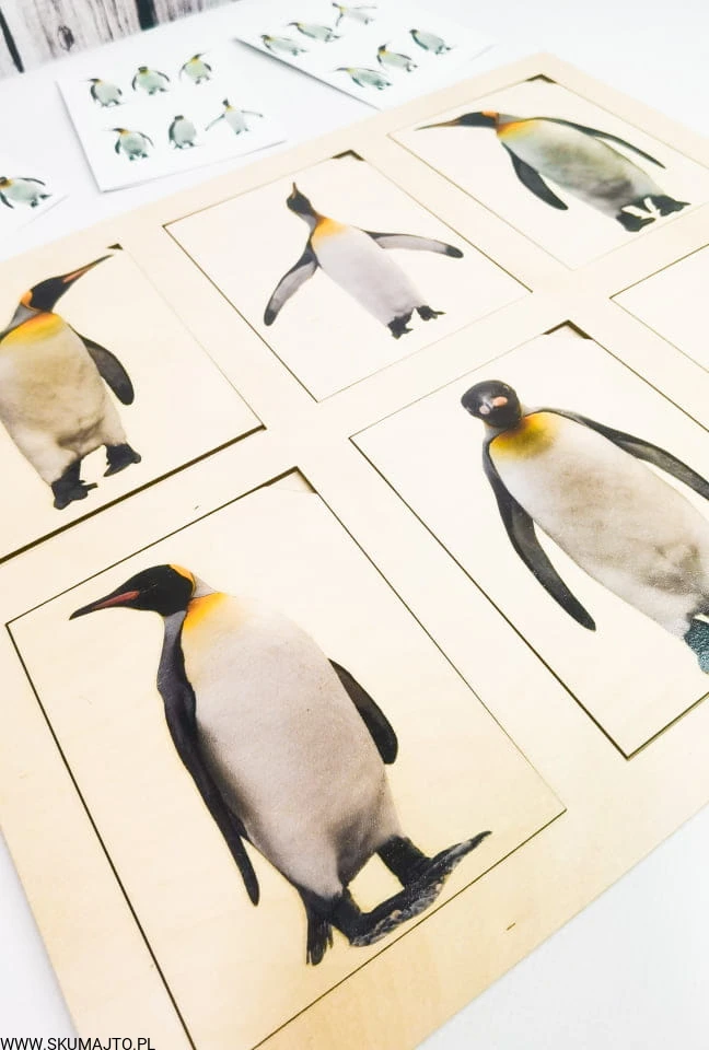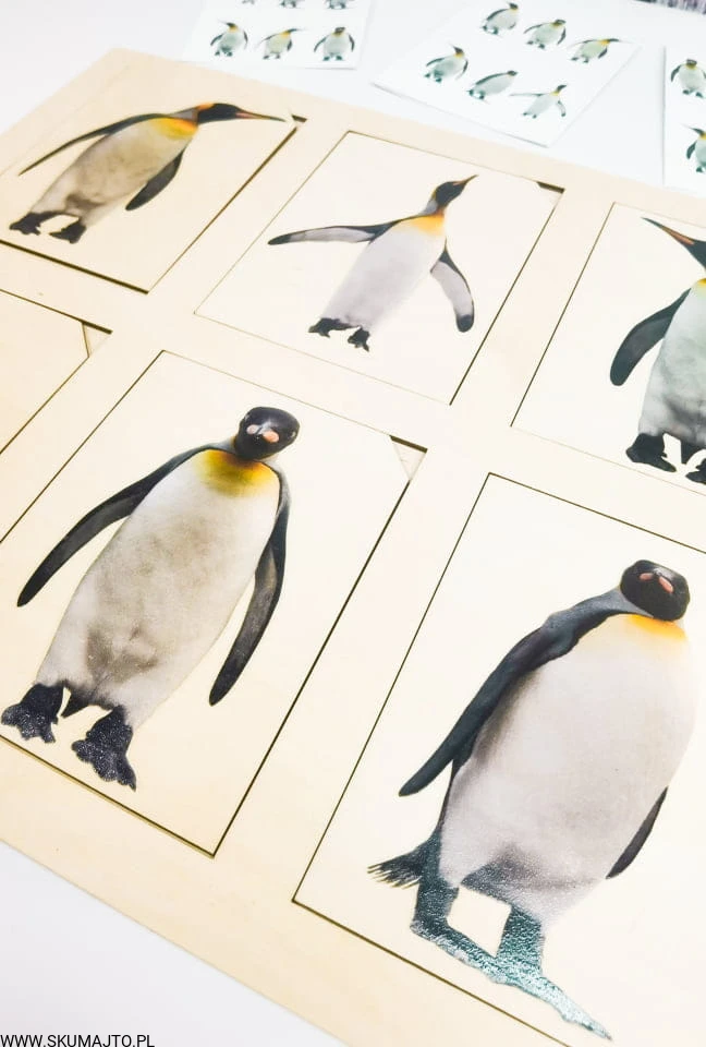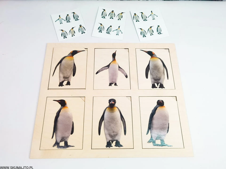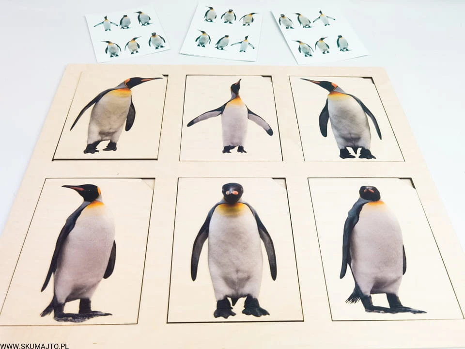 Pingwiny, drewniana układanka, odwzorowywanie