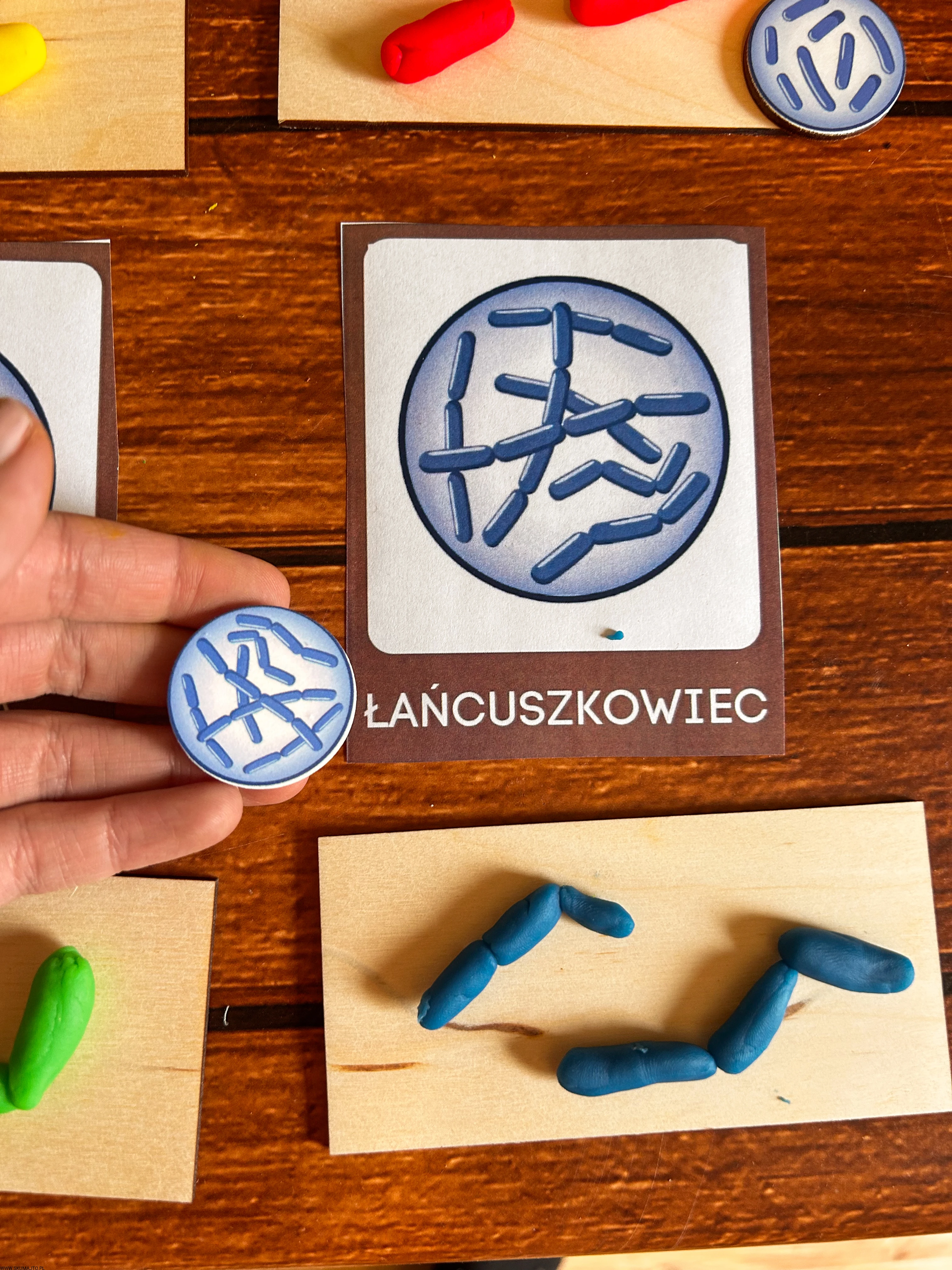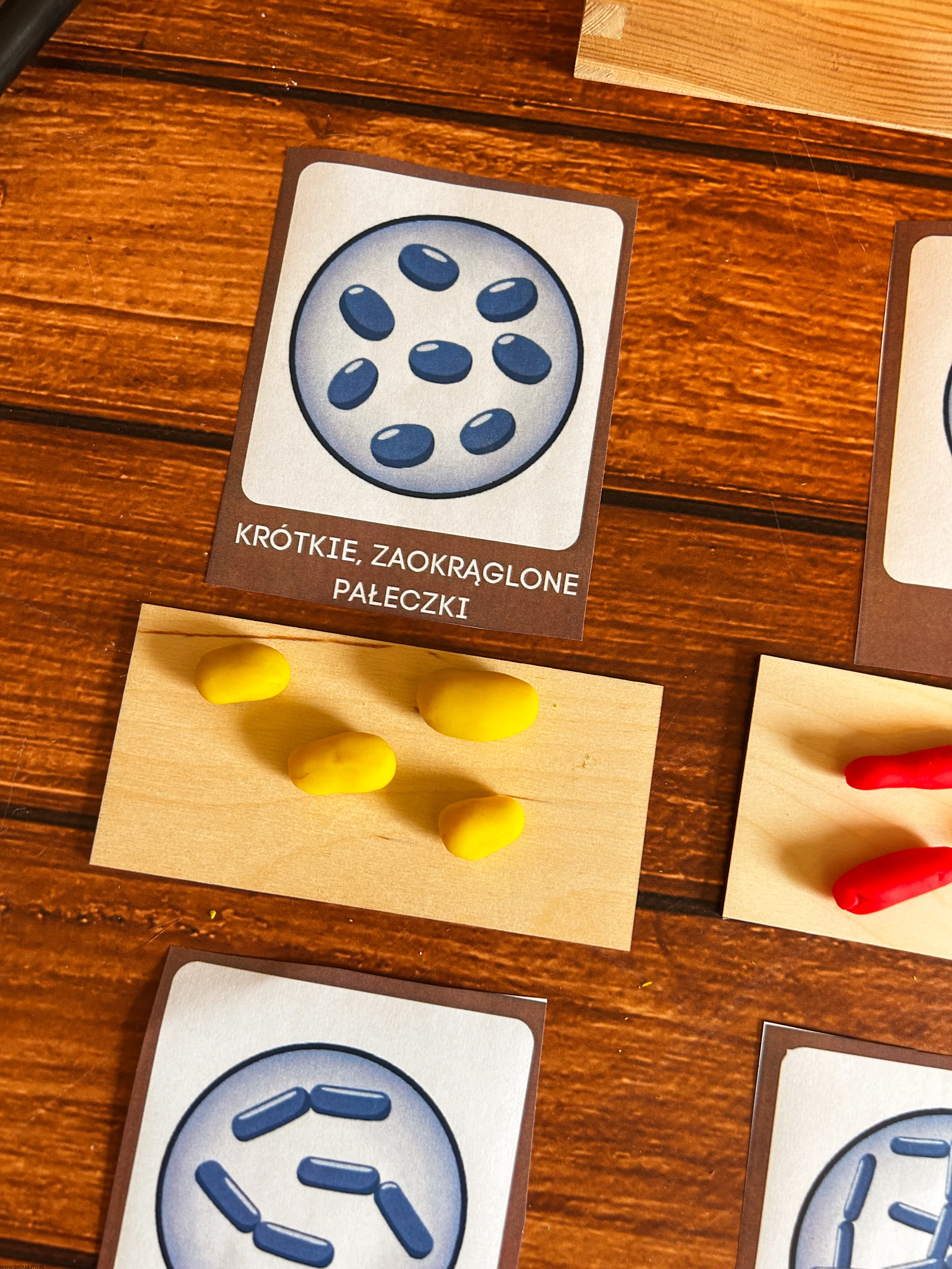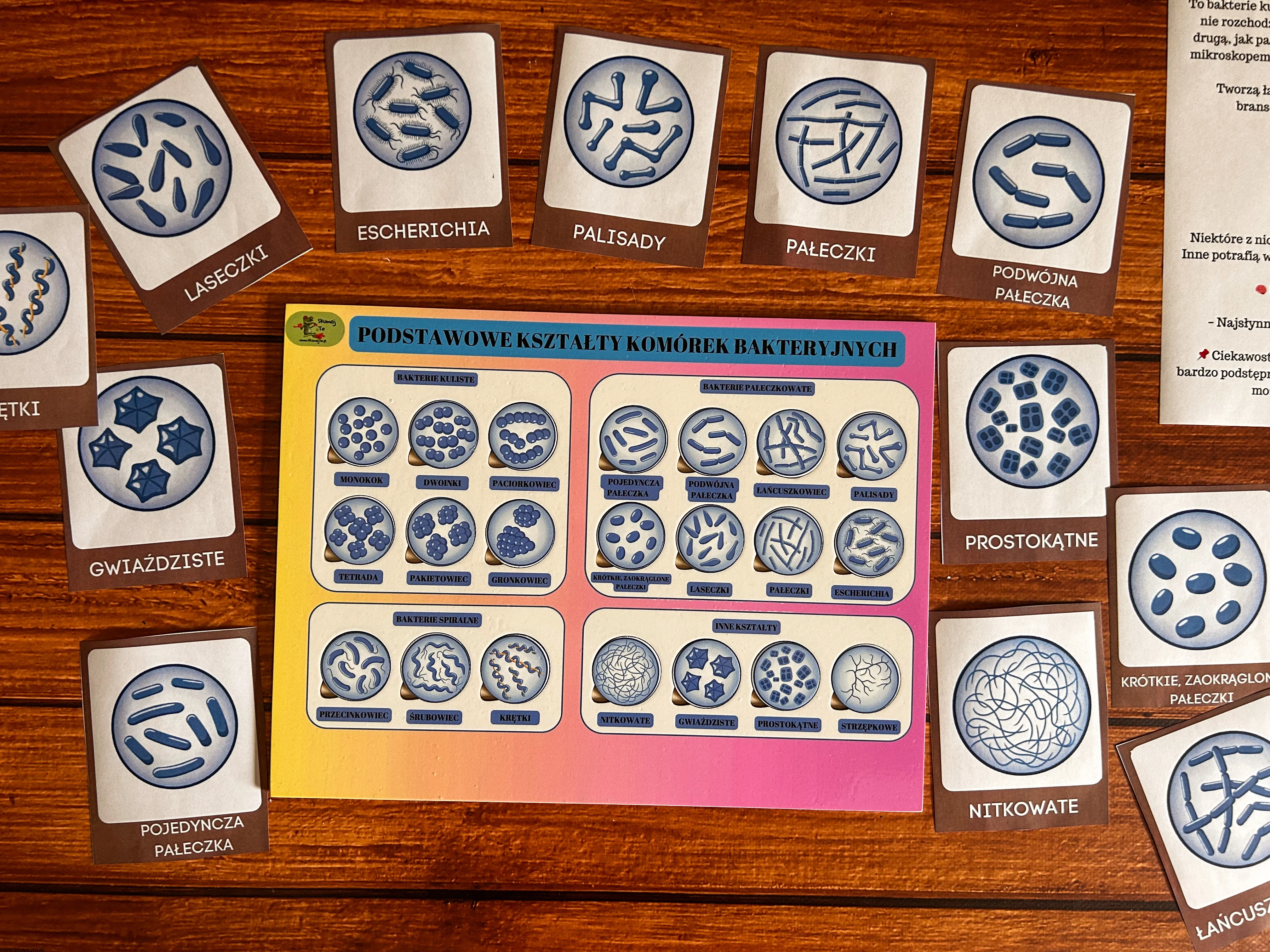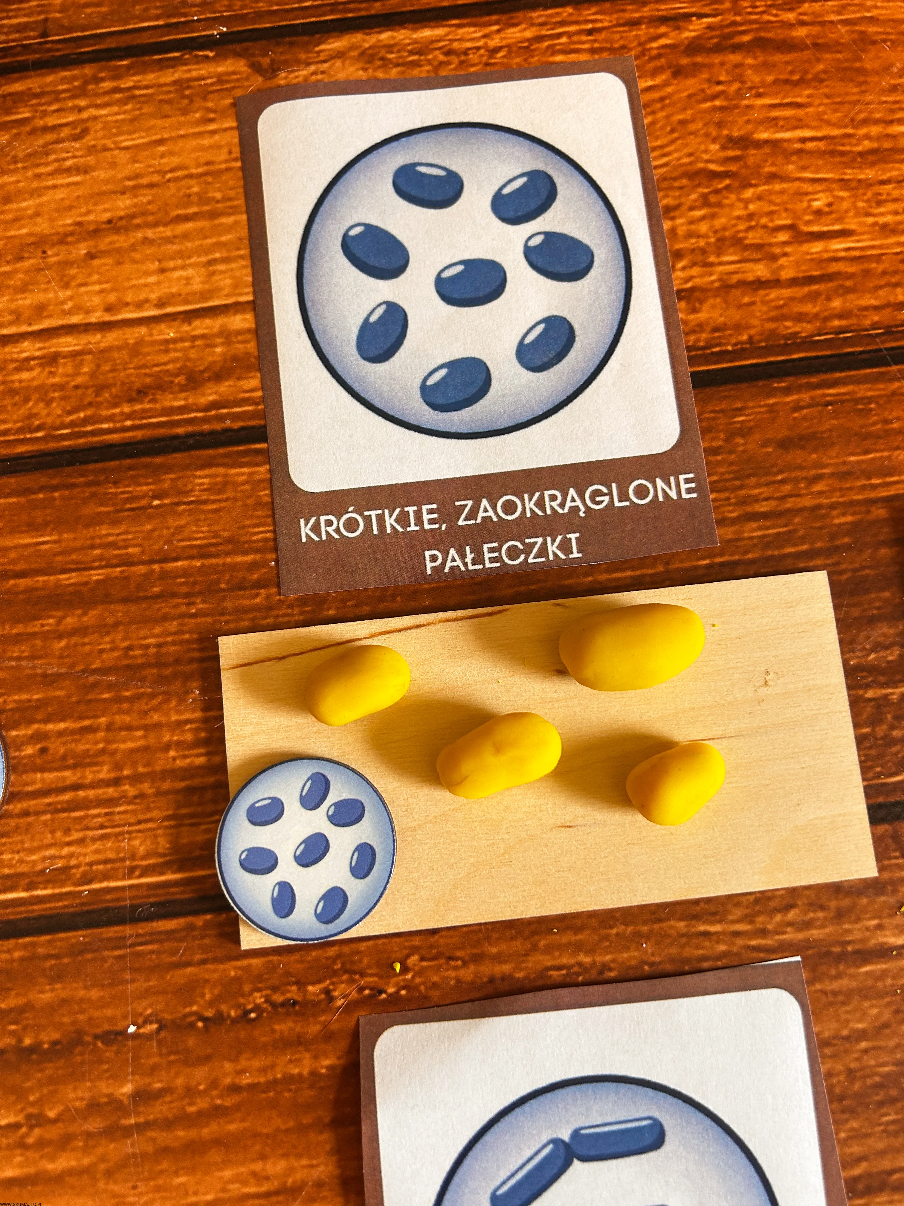 Podstawowe kształty komórek bakteryjnych, drewniana układanka, komórka bakterii, kształty bakterii