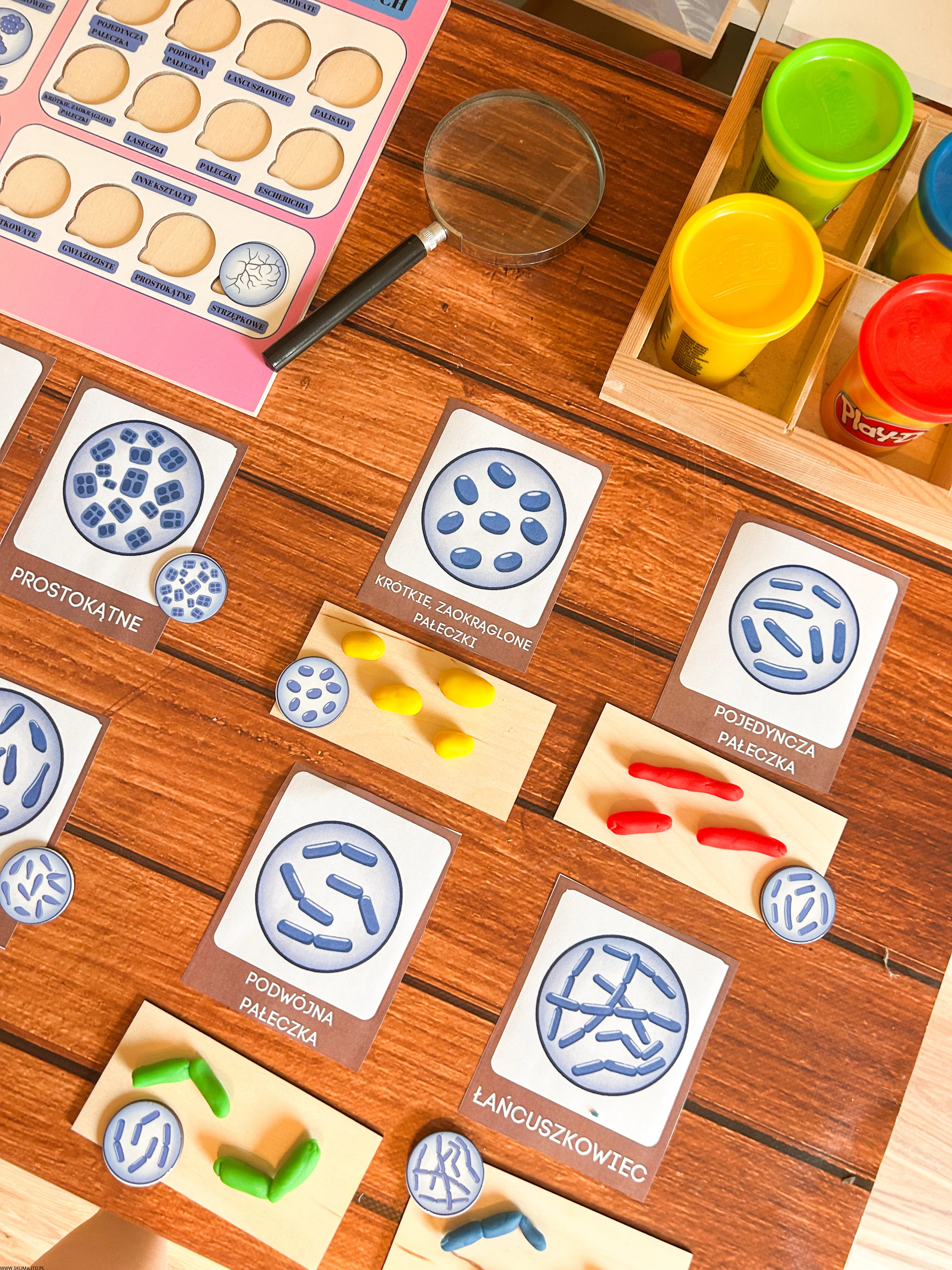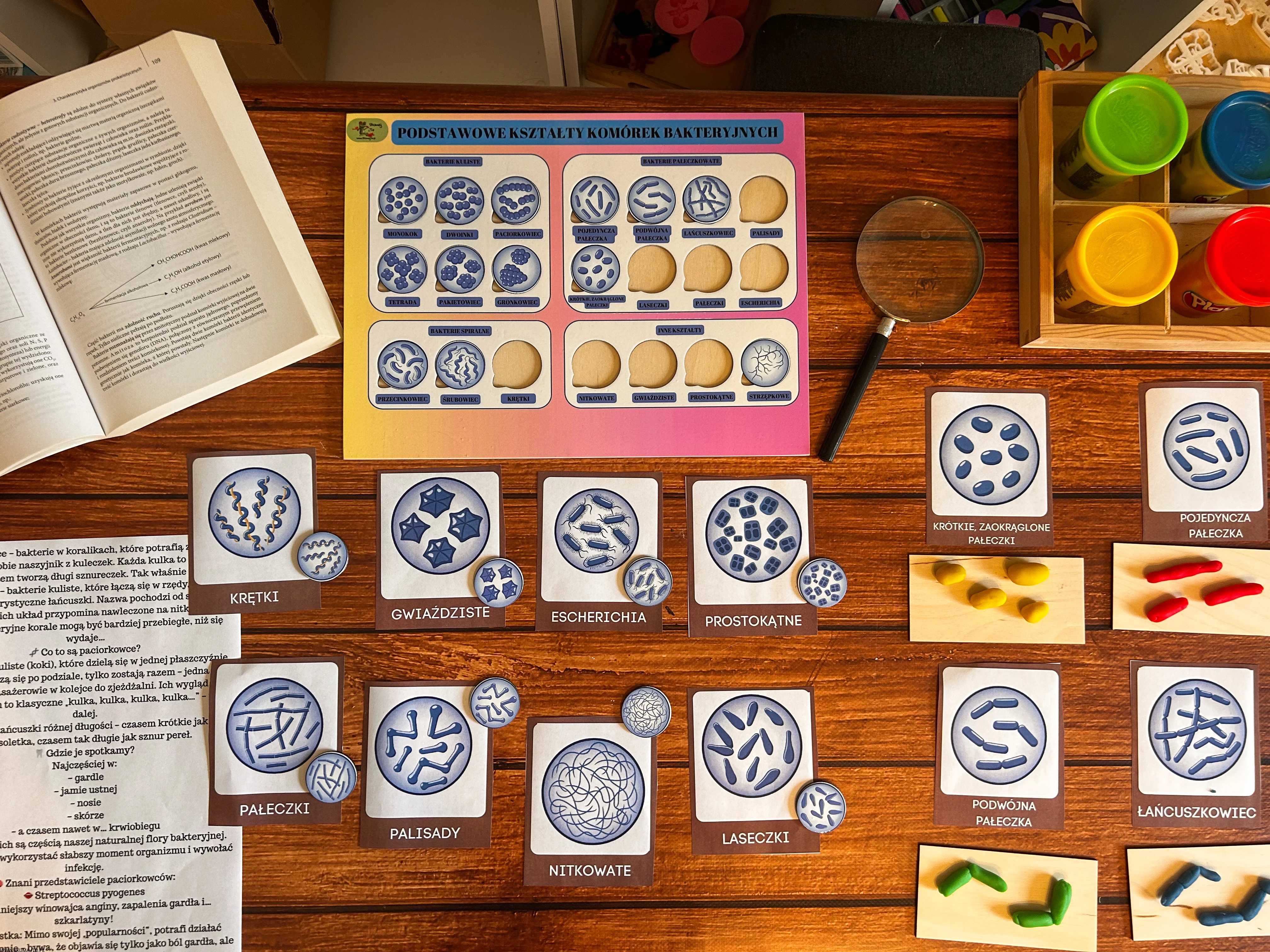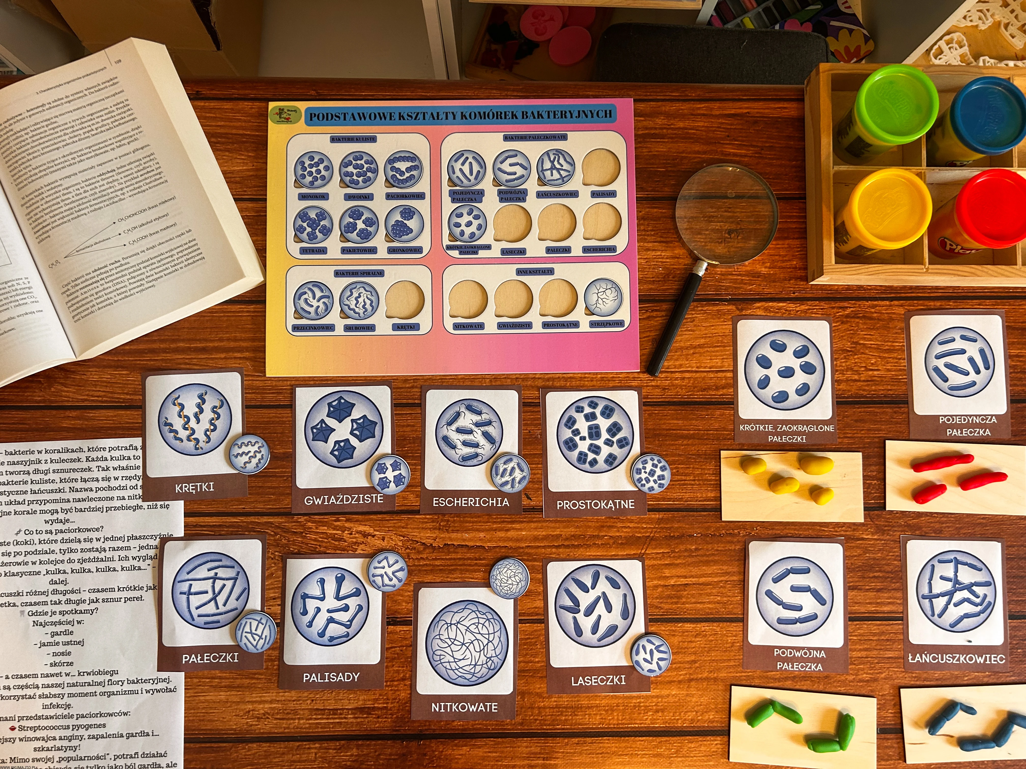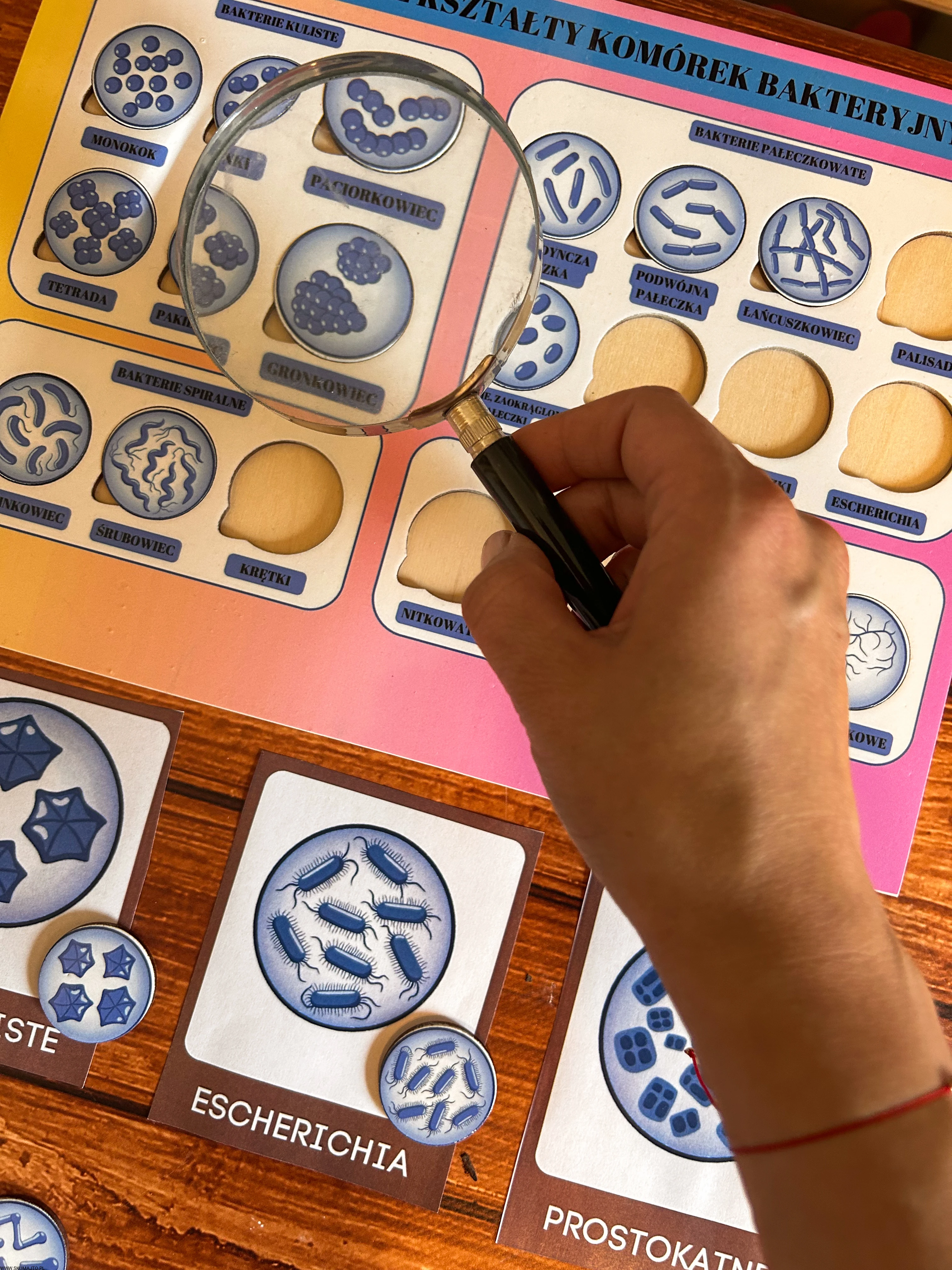 Praca z układanką pozwala dziecku łatwiej zapamiętać różne typy bakterii, bo widzi je w konkretnych kształtach i kolorach, a nie tylko w postaci małych zdjęć w podręczniku.