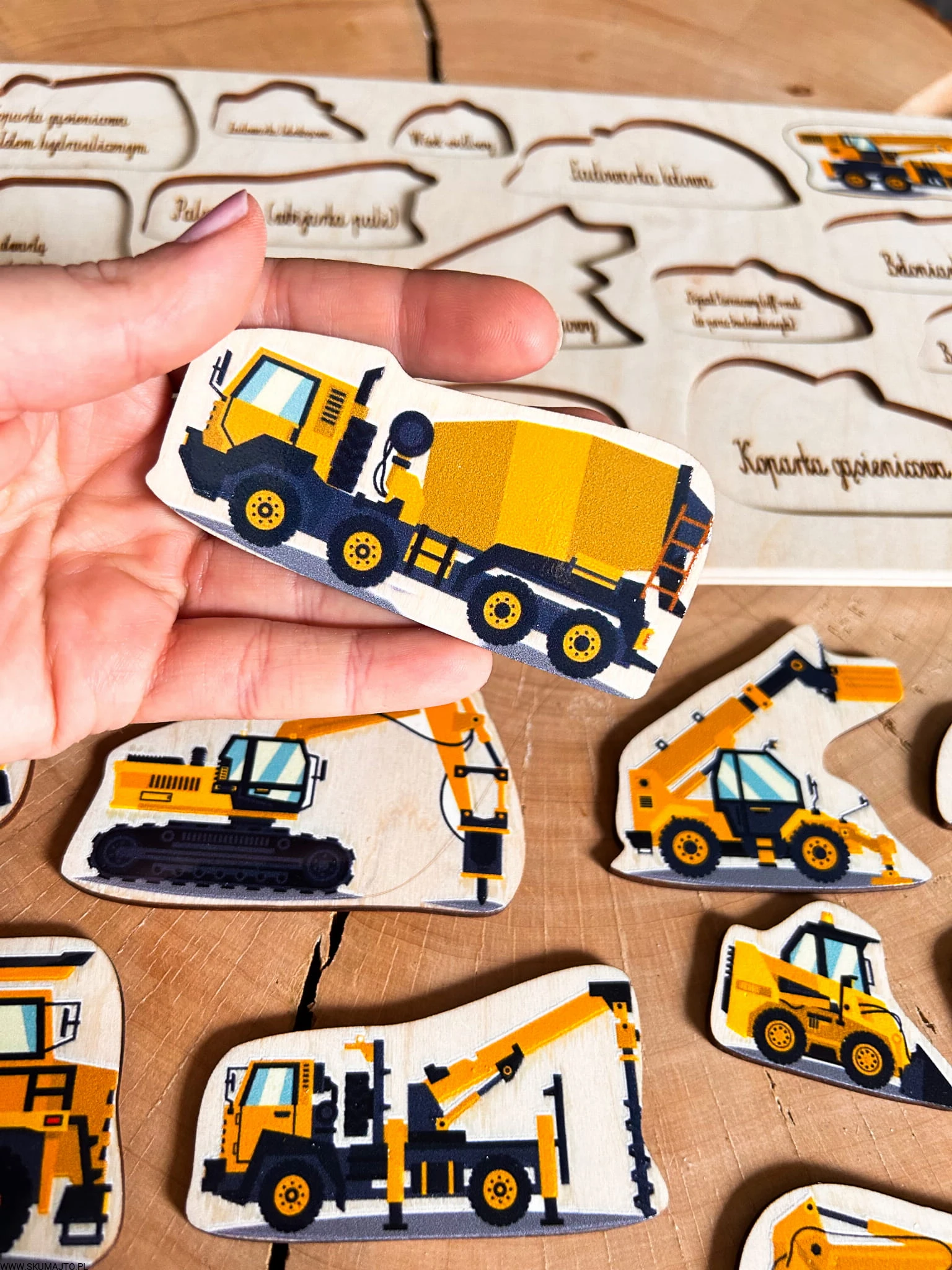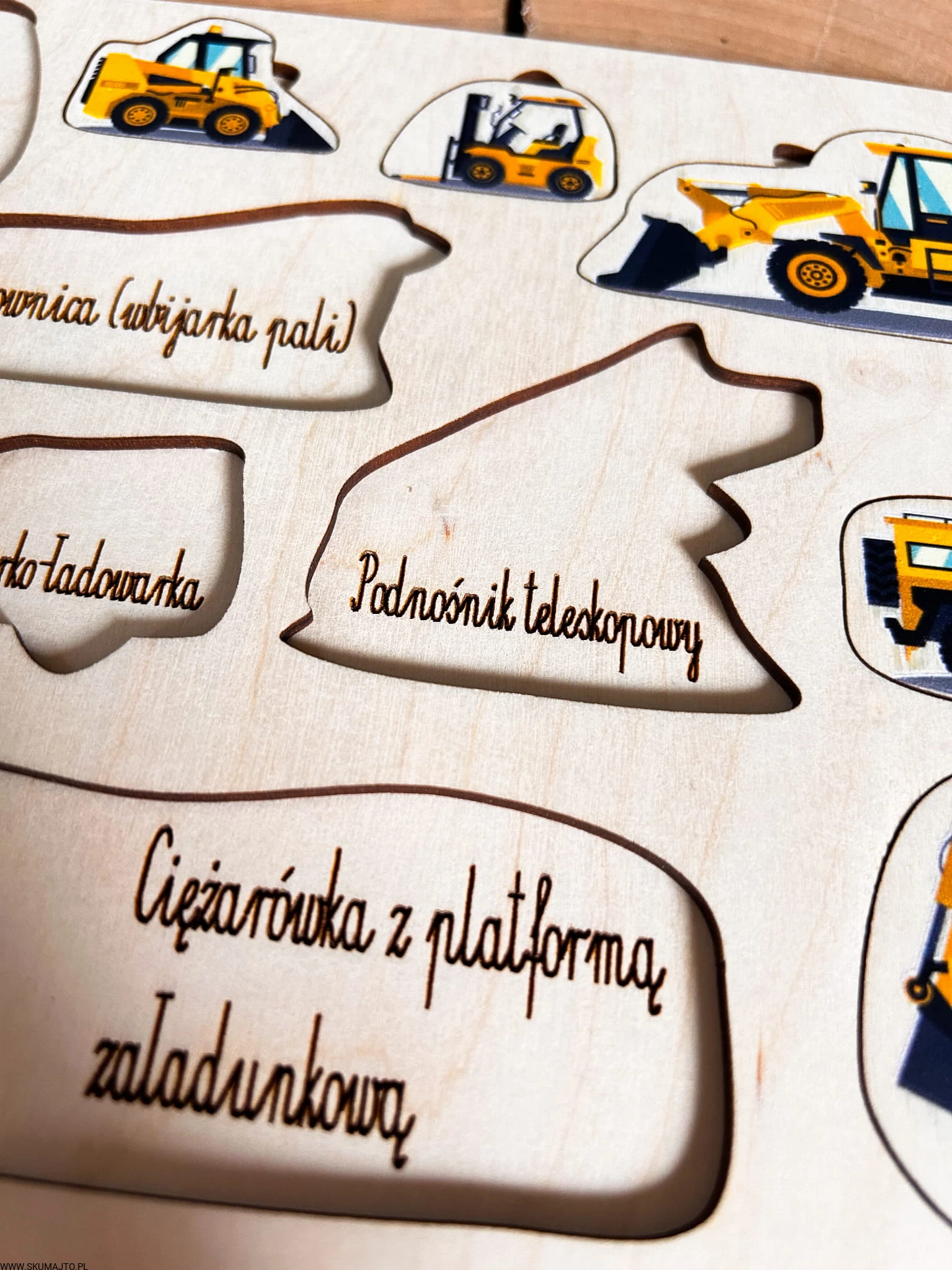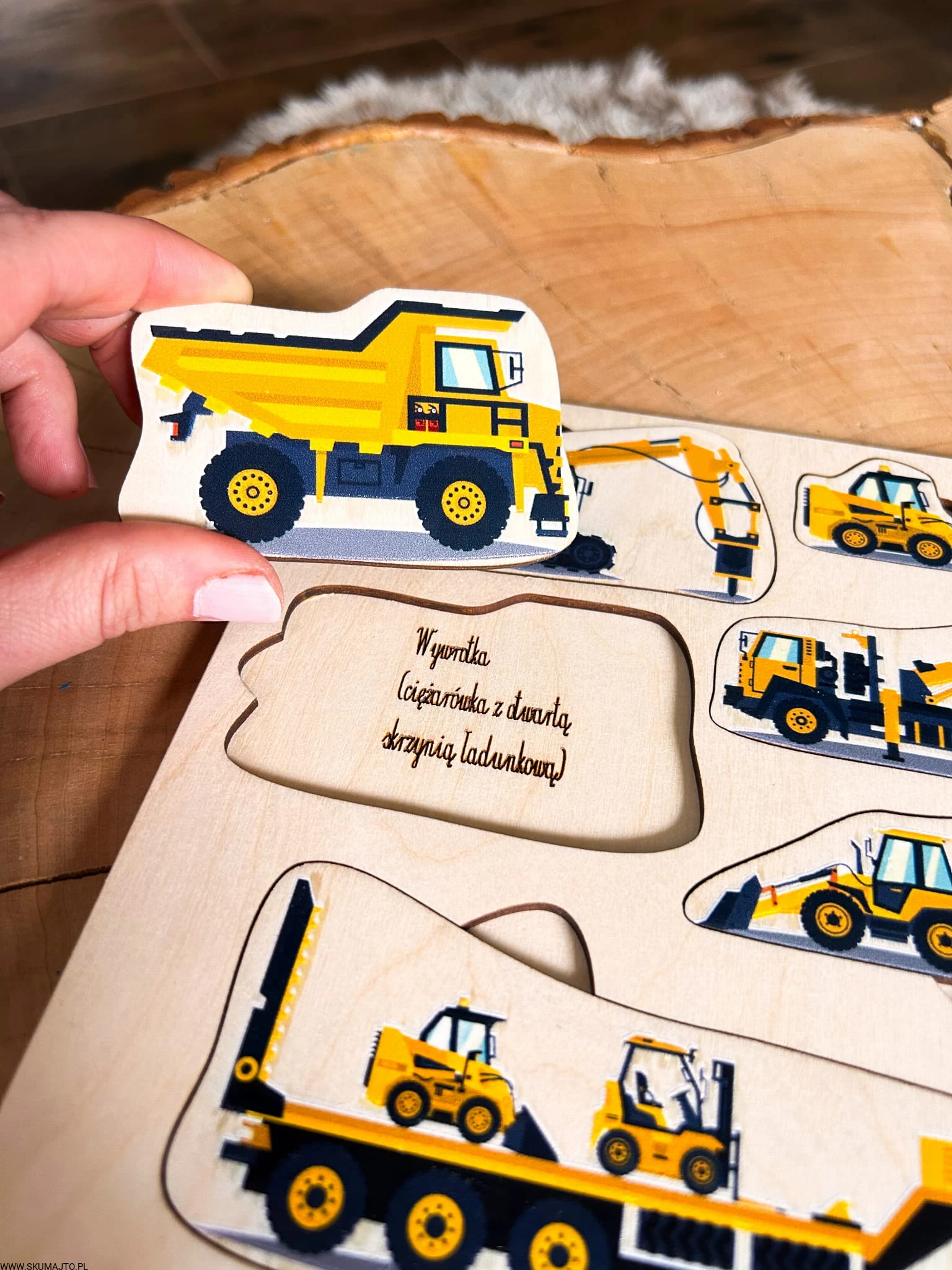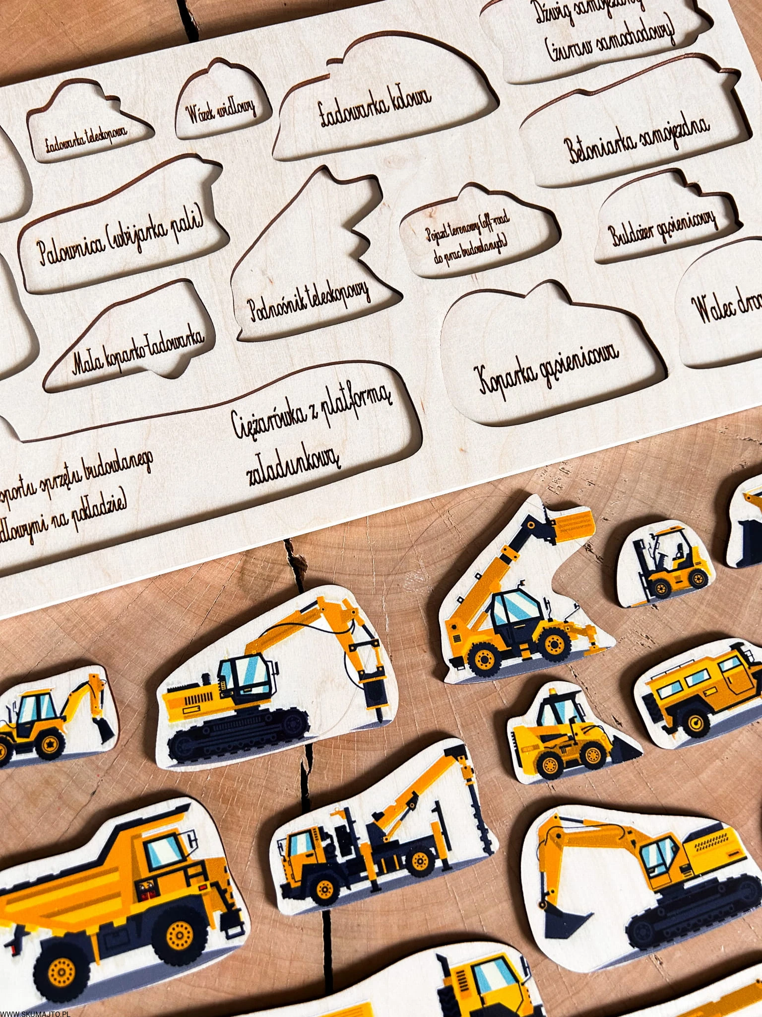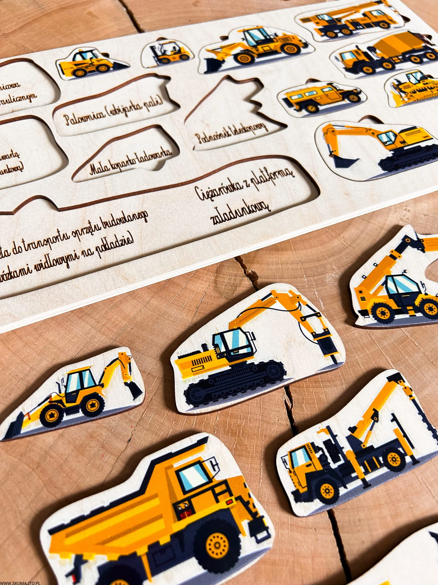 Fascynujący świat maszyn budowlanych teraz na wyciągnięcie ręki! Ta wyjątkowa drewniana układanka to prawdziwa gratka dla małych miłośników koparek, dźwigów i wywrotek. Dzięki niej dziecko nie tylko pozna różne pojazdy budowlane, ale także dowie się, do czego służą i jakie mają funkcje.
