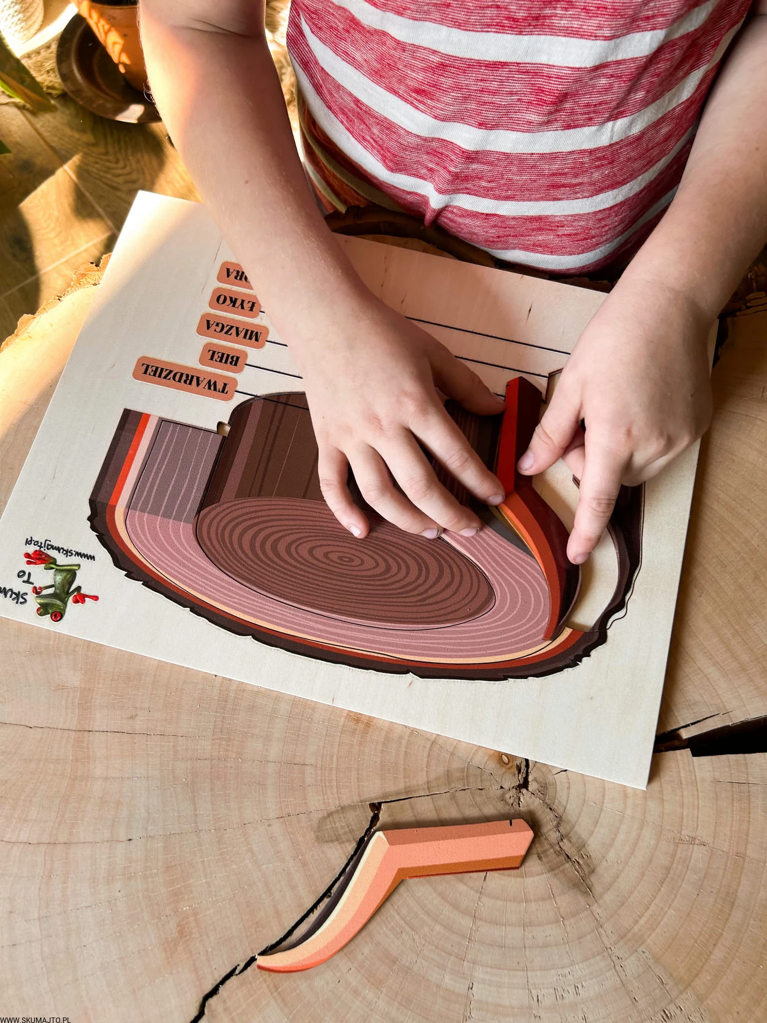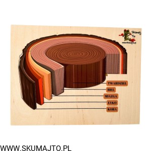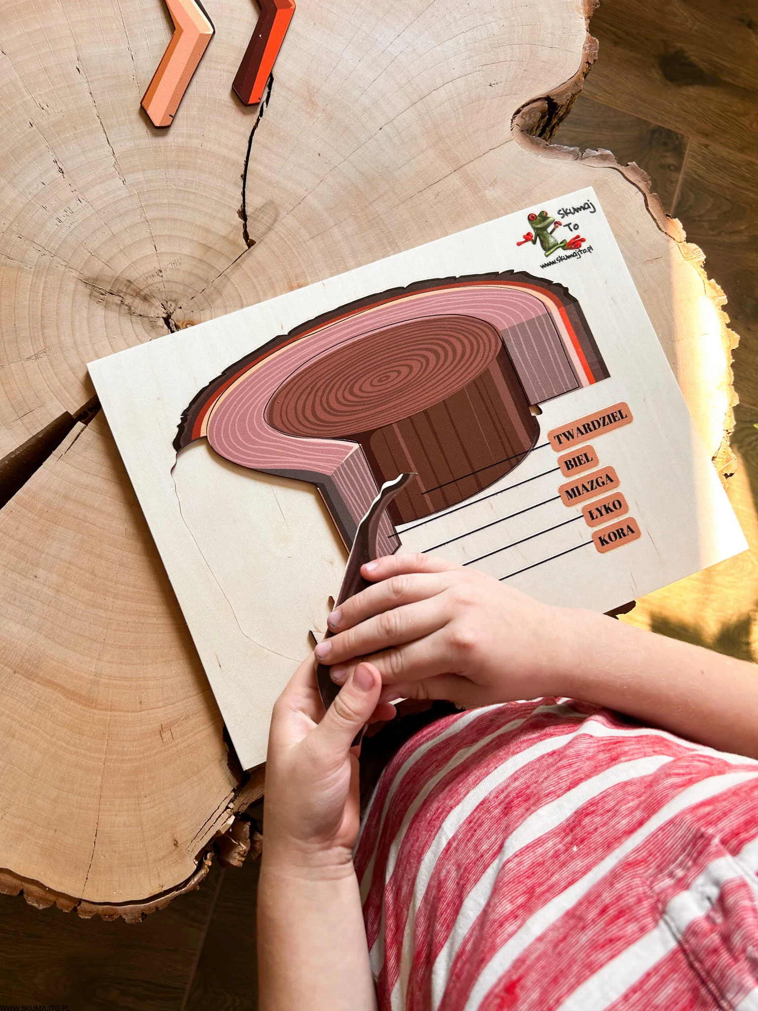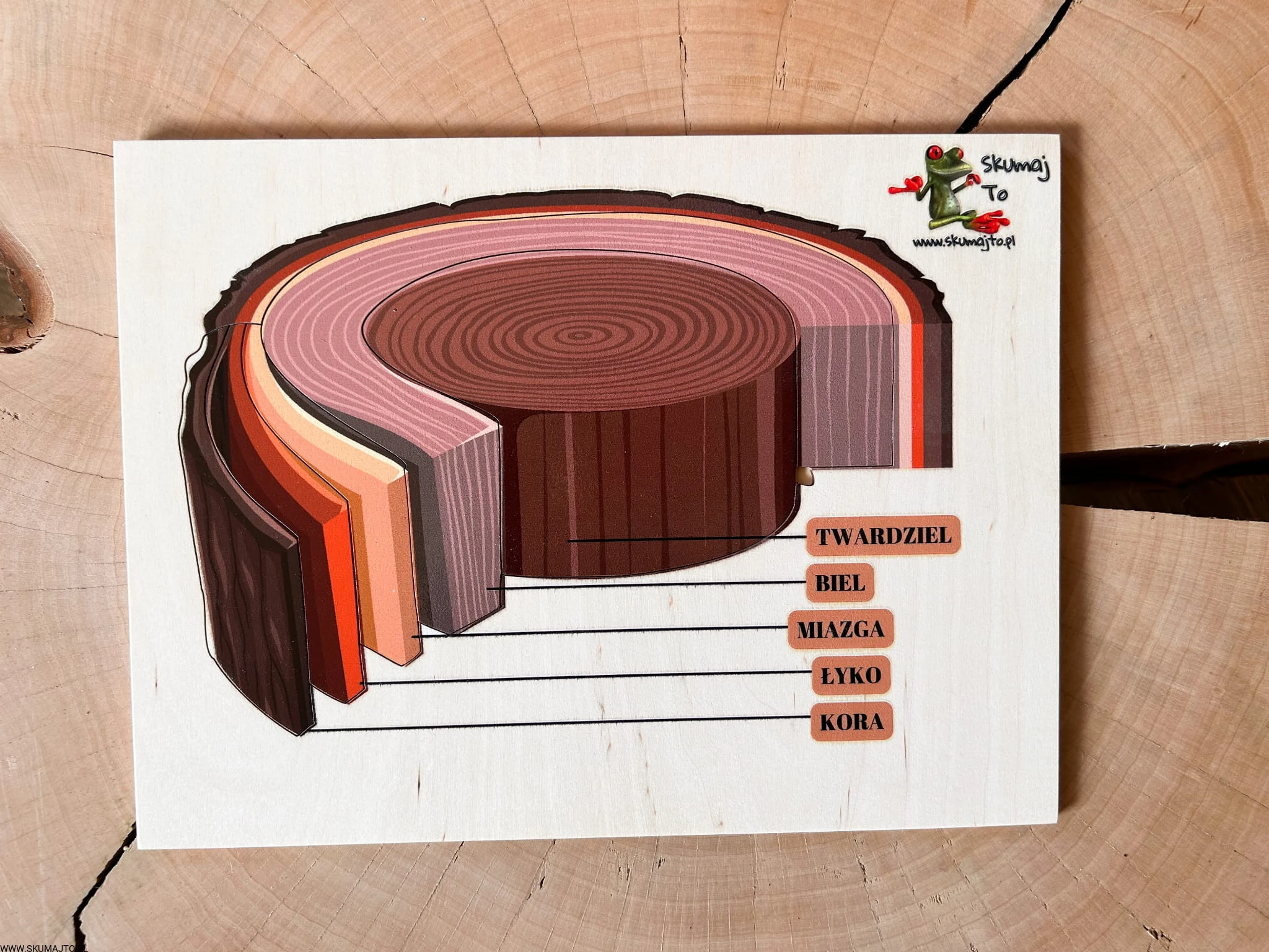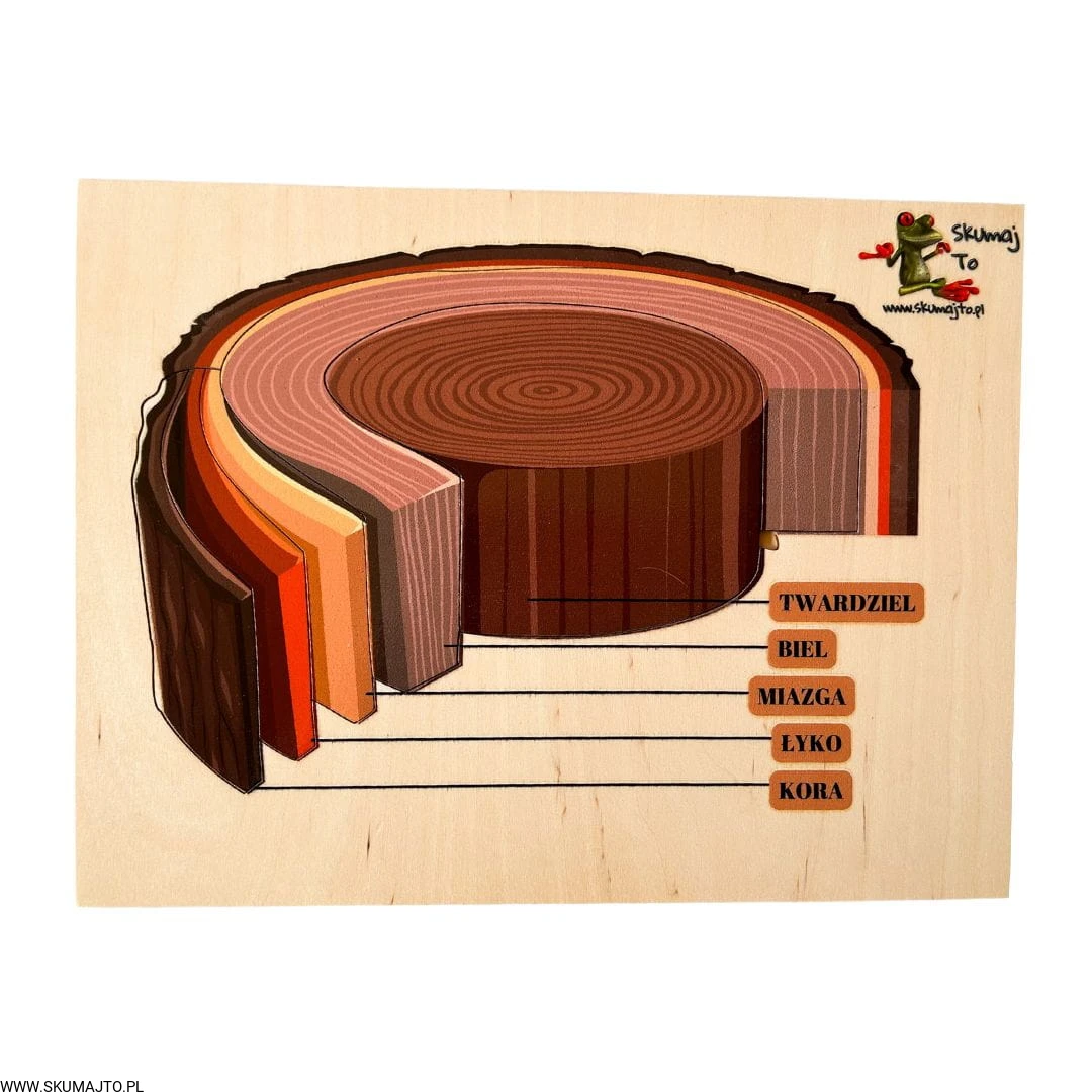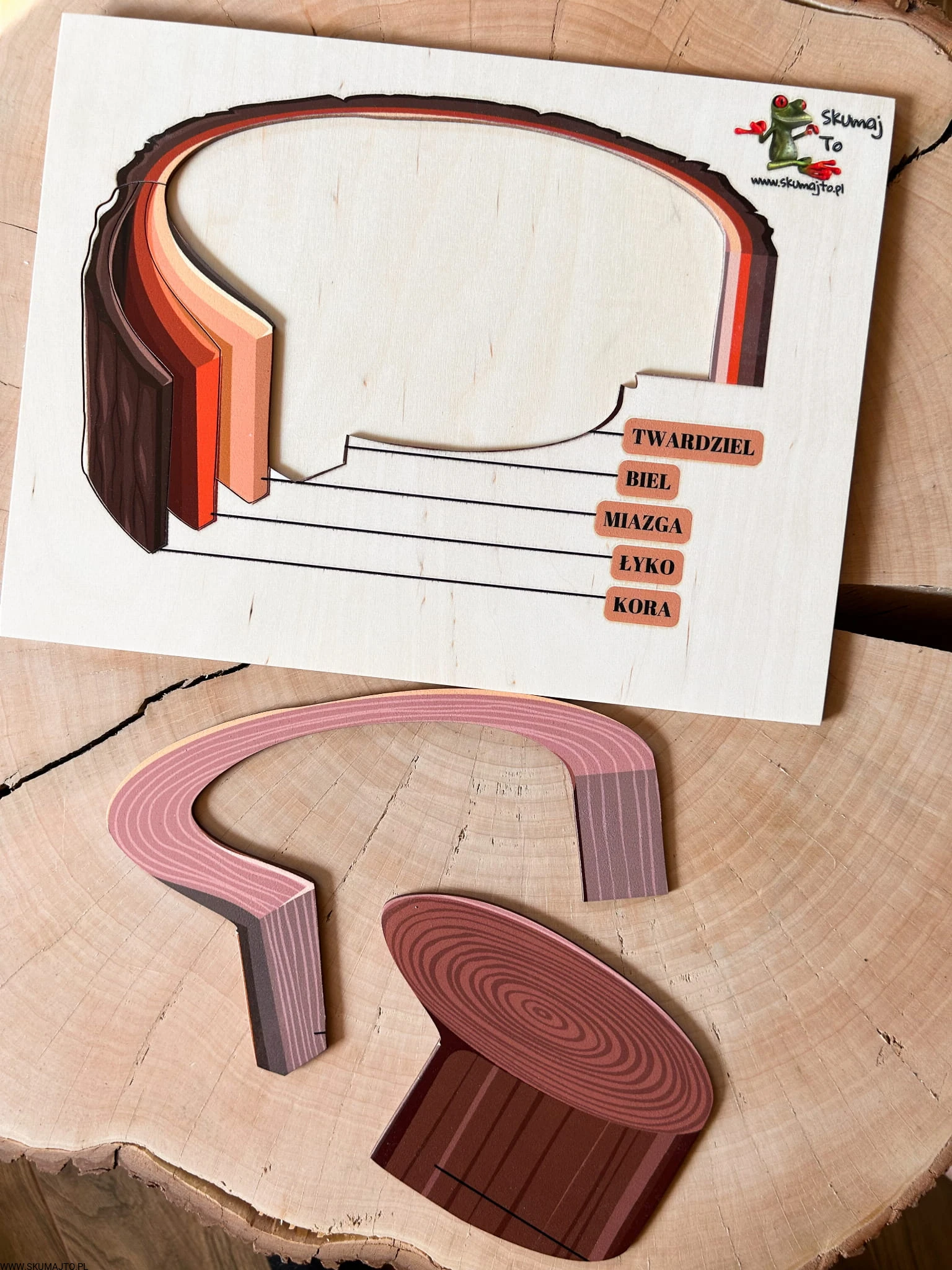Przekrój pnia drzewa układanka, budowa pnia, warstwy drzewa