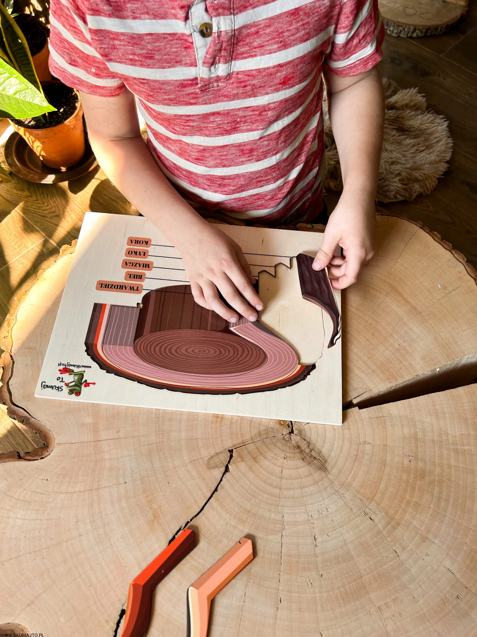 Zapraszamy do odkrycia tajemnic natury za pomocą naszej Drewnianej Układanki "Przekrój Pnia Drzewa"! To fascynujące narzędzie, które pozwoli Twojemu dziecku odkryć struktury i tajemnice przyrody w sposób wyjątkowo przystępny i ciekawy.