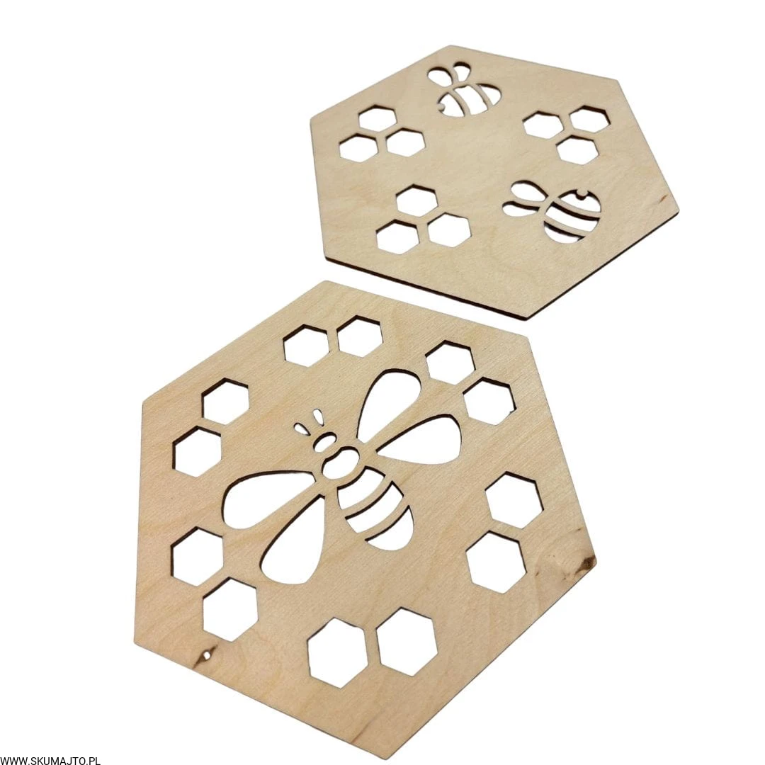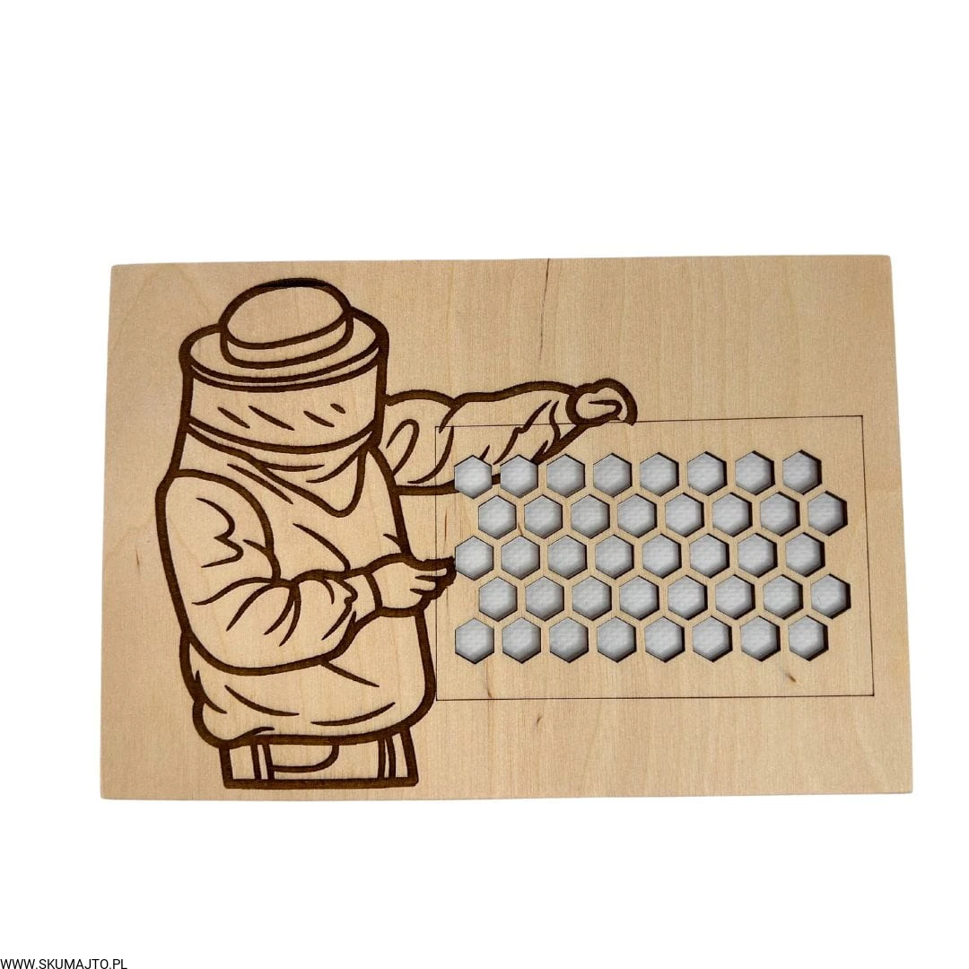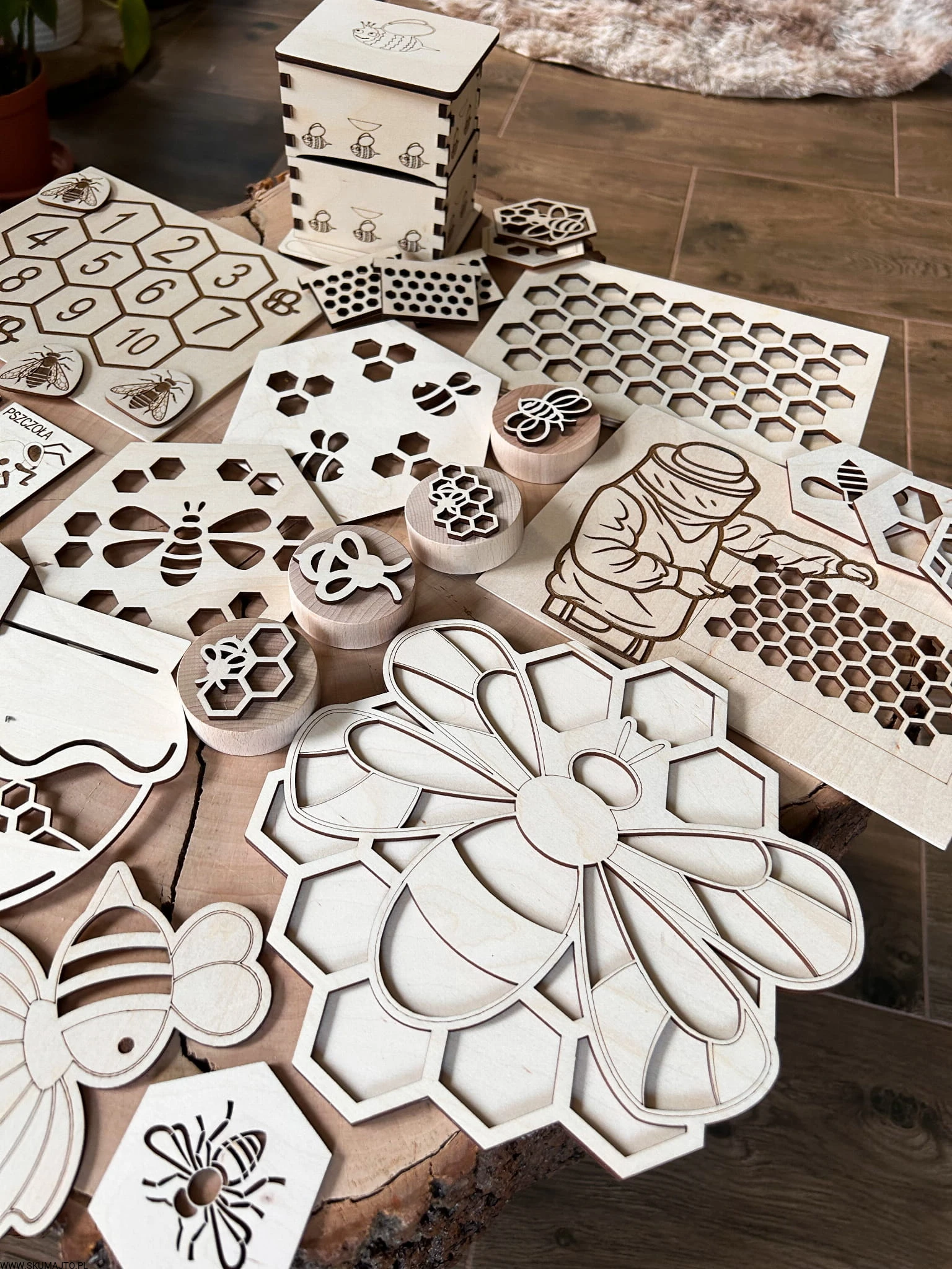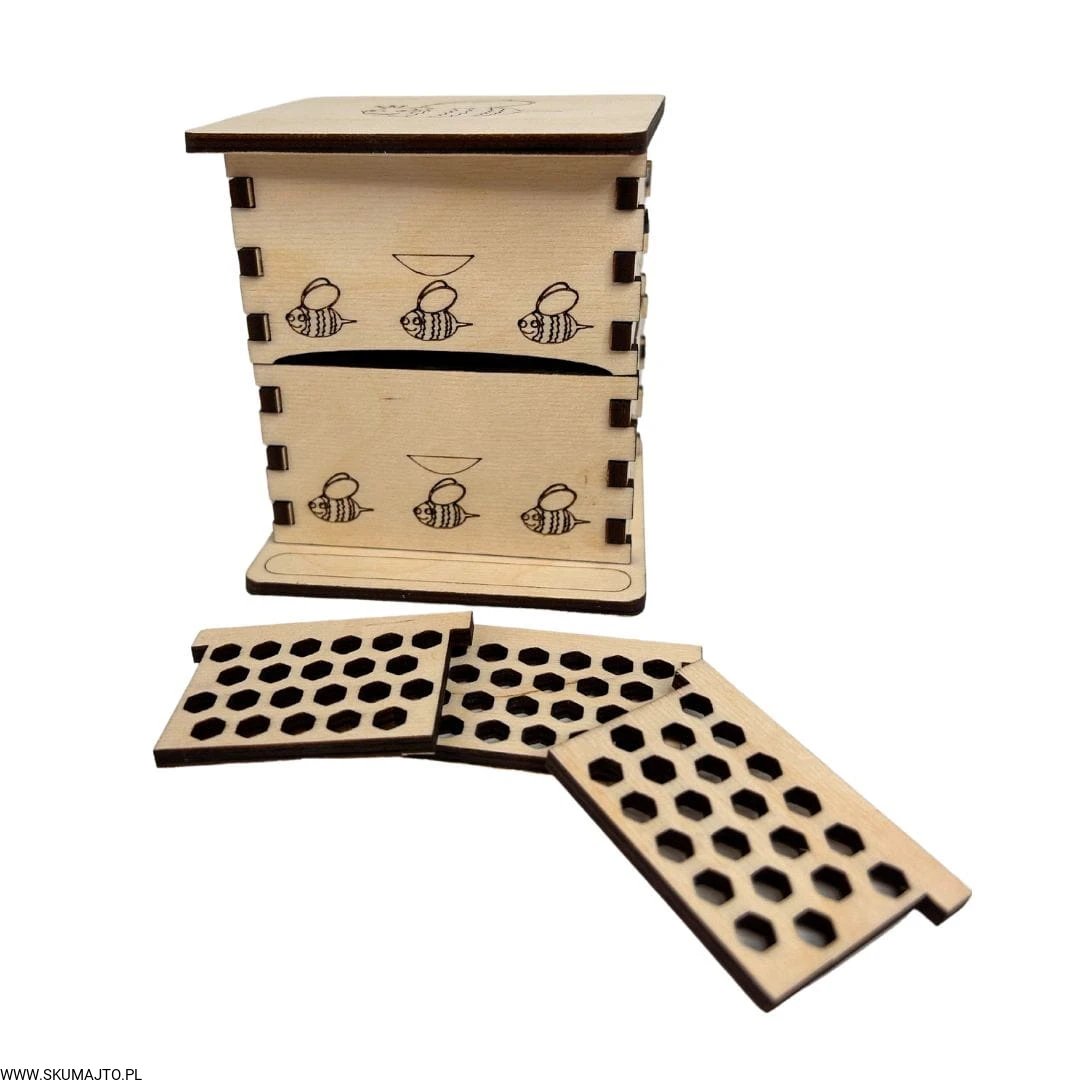 - Ul - replika ula: Składa się z dwóch skrzyneczek z plastrami miodu, podkładką i wieczkiem (20x10 cm). Ruchome elementy ula trenują małą motorykę dziecka i uczą precyzji.