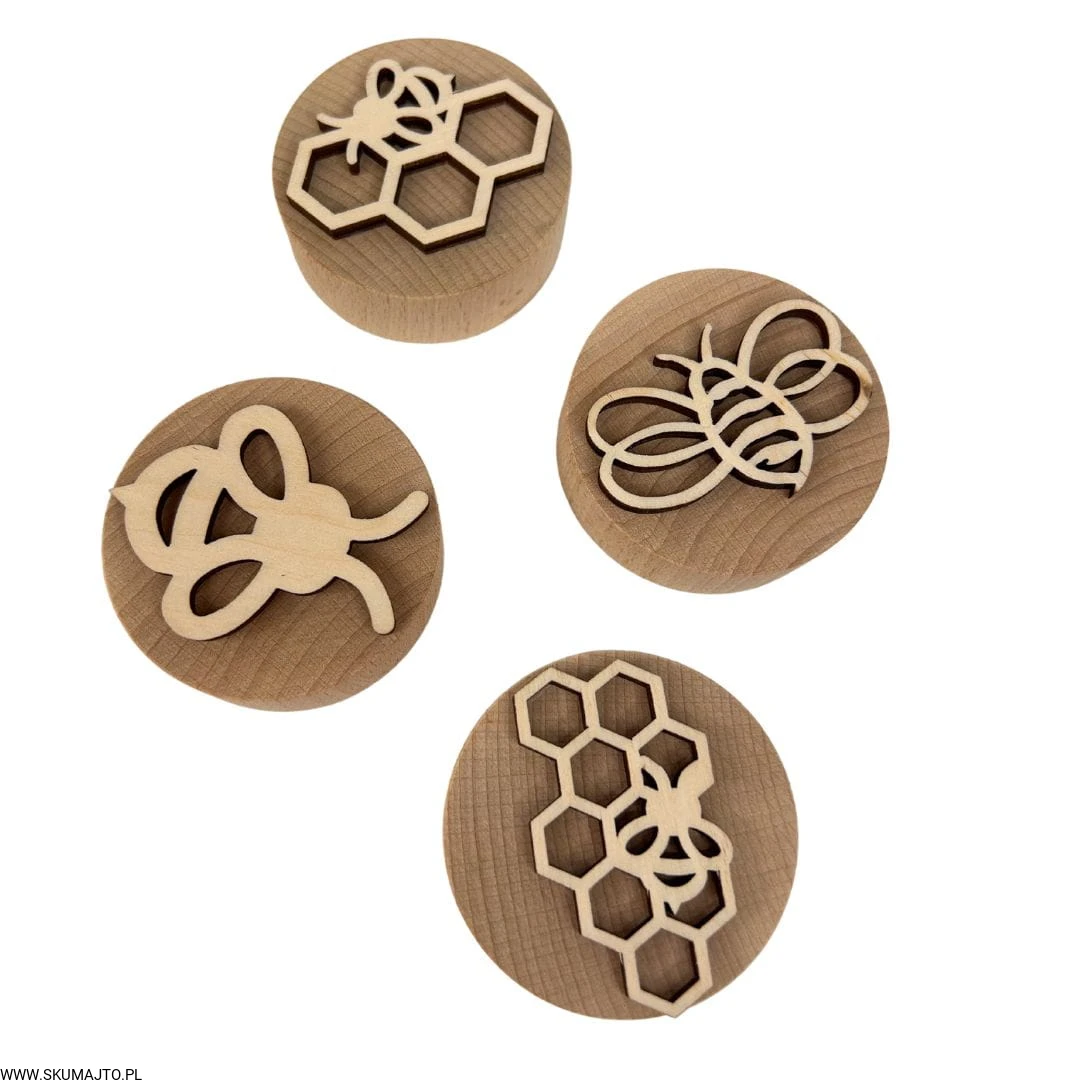 - Pieczątki do ciastoliny (4 sztuki): Różne motywy pszczół.