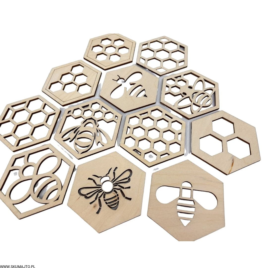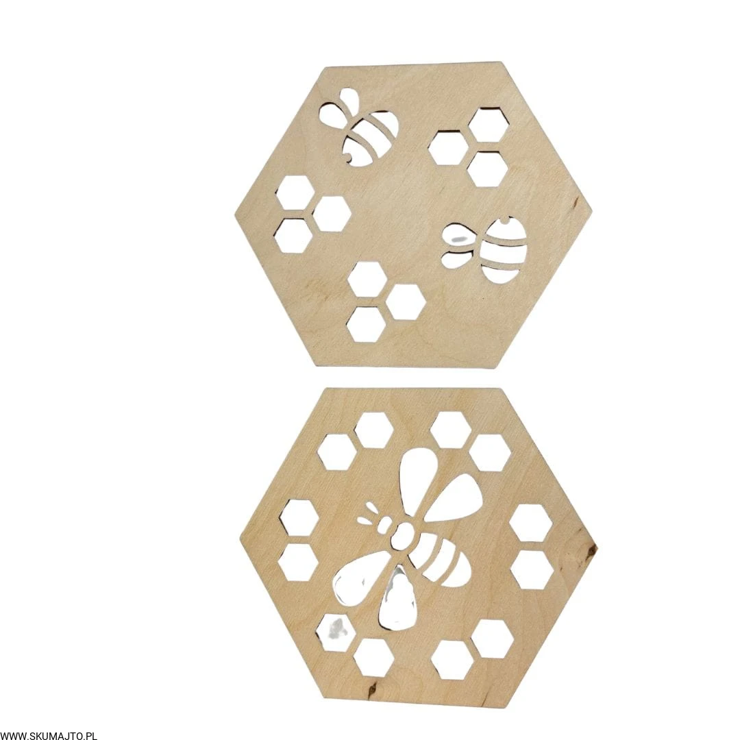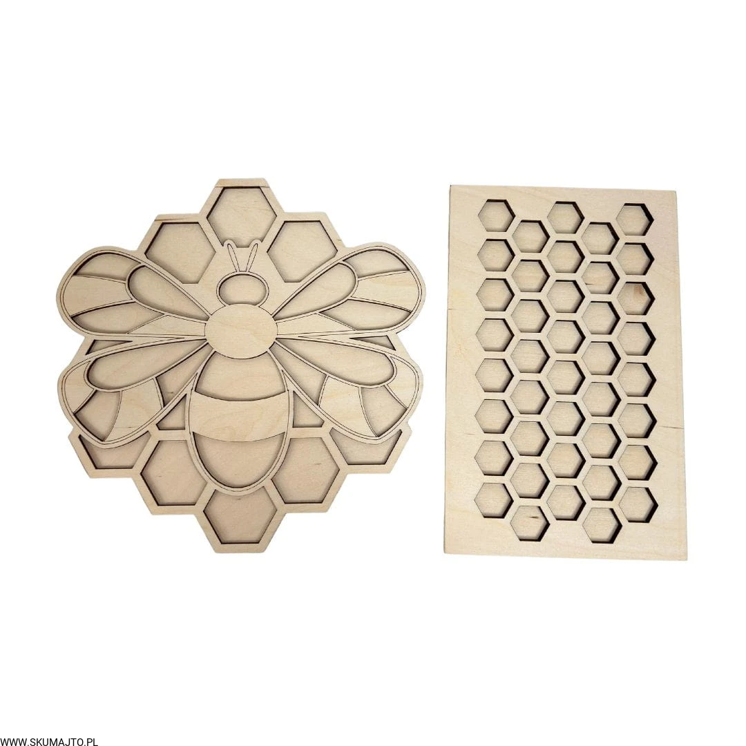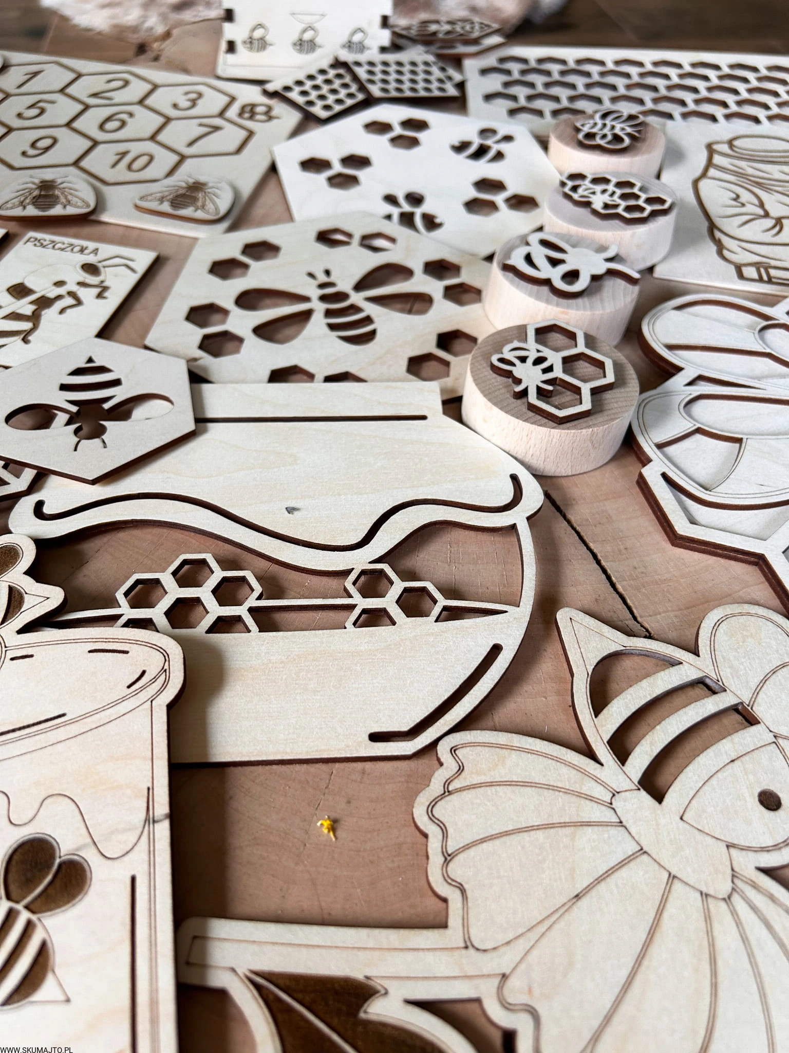 - Trzy kreatywne podstawki: Pszczoła na kwiatku i dwa słoiki miodu - idealne do twórczej zabawy.