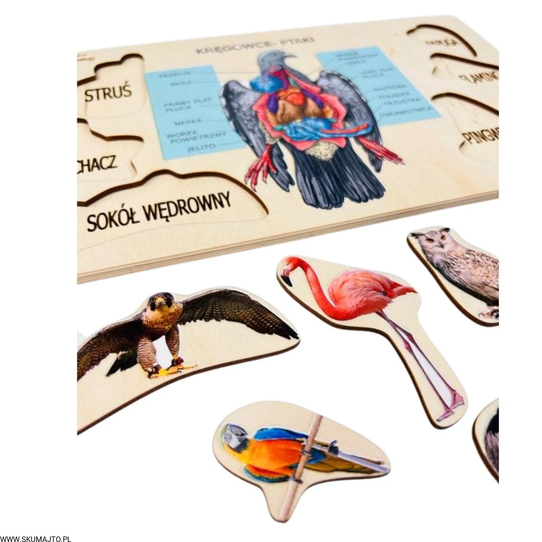 Ptaki, drewniana układanka, ciekawostki o ptakach, pomoc biologiczna