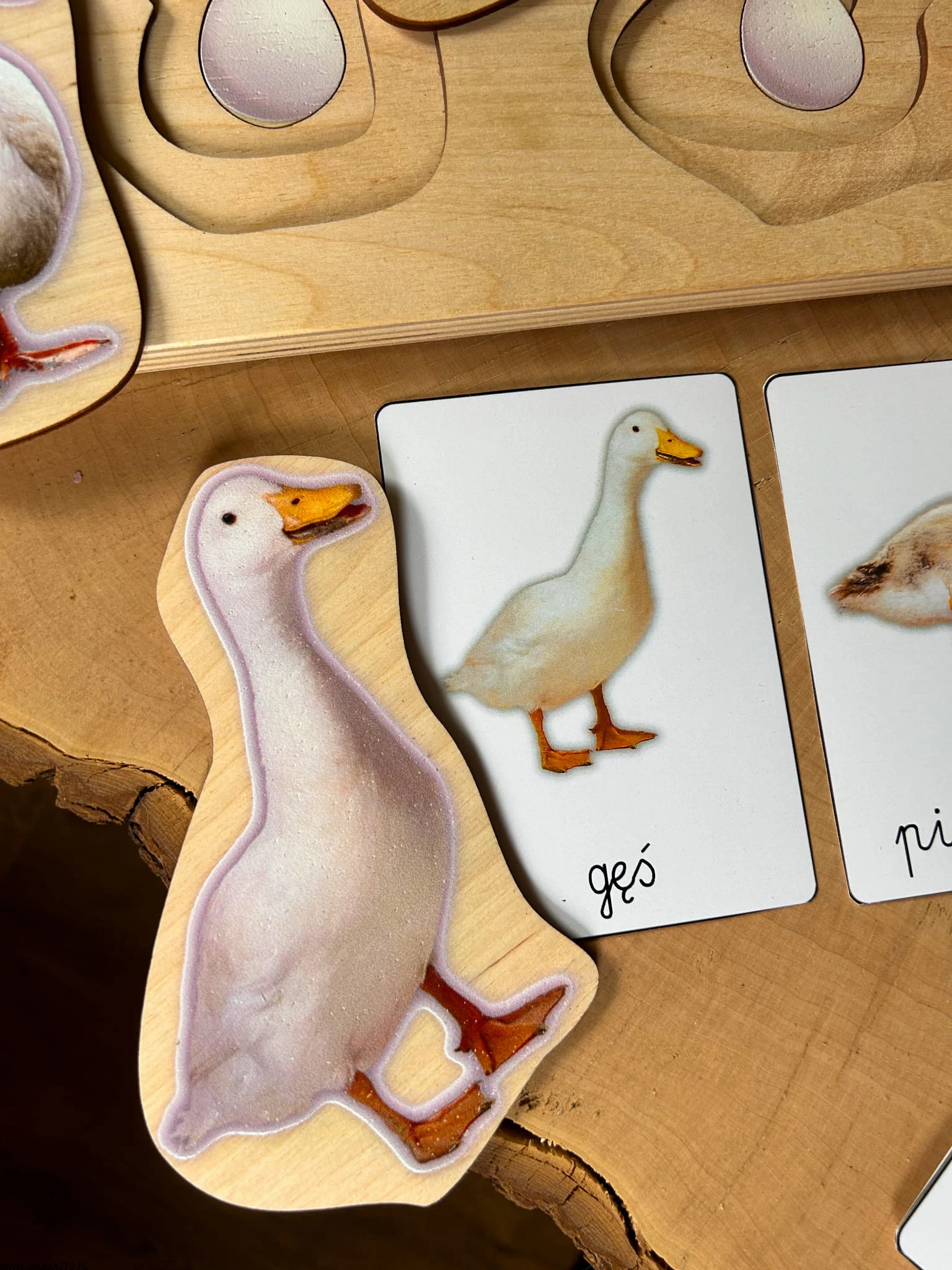 Ptaki wsi, drewniana układanka warstwowa, zwierzęta na wsi