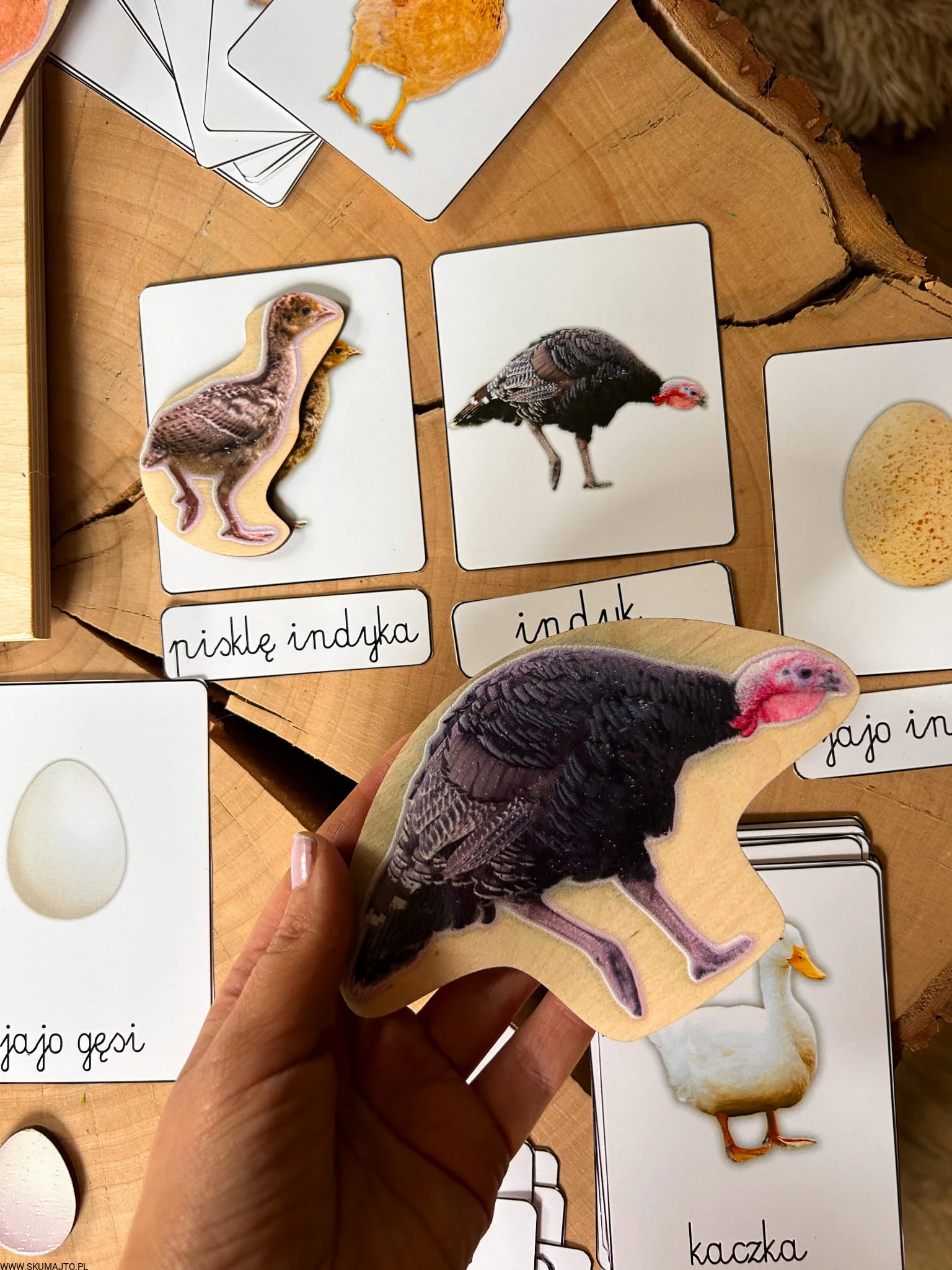 - Język i wiedza: Do zestawu dołączone są karty trójdzielne do samodzielnego wycięcia, co pozwala na naukę czytania, kojarzenia obrazków i nazw gatunków.
