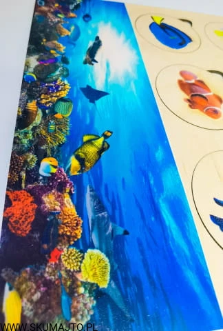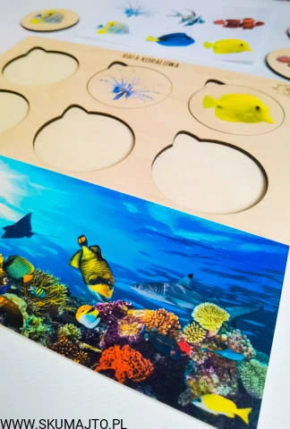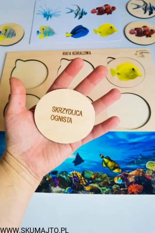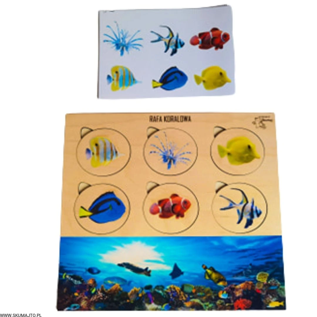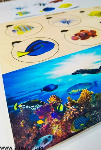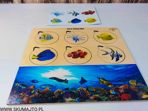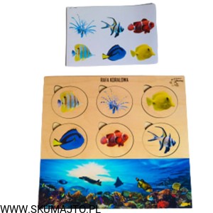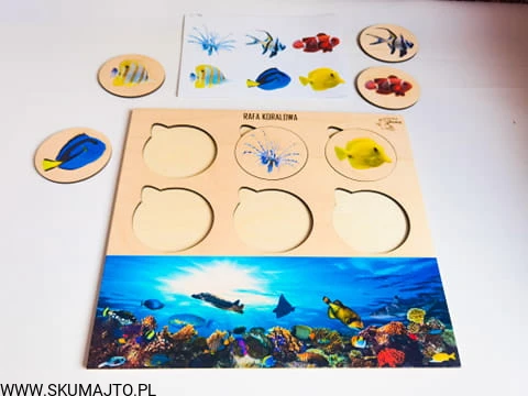Rafa koralowa, drewniana układanka, ryby rafy koralowej, gatunki, odwzorowywanie