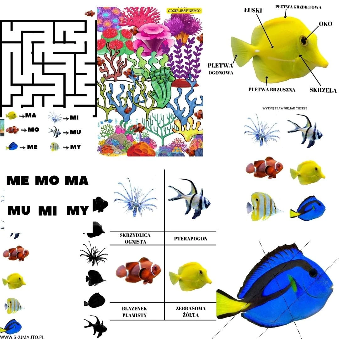 - Poznawanie Gatunków Rybek: Rybki mają na odwrocie podpisane nazwy gatunków, co ułatwia ich naukę.