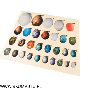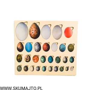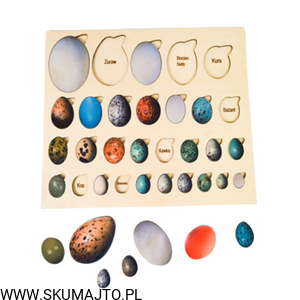 Rodzaje jaj, drewniana układanka, jaja ptaków polskich