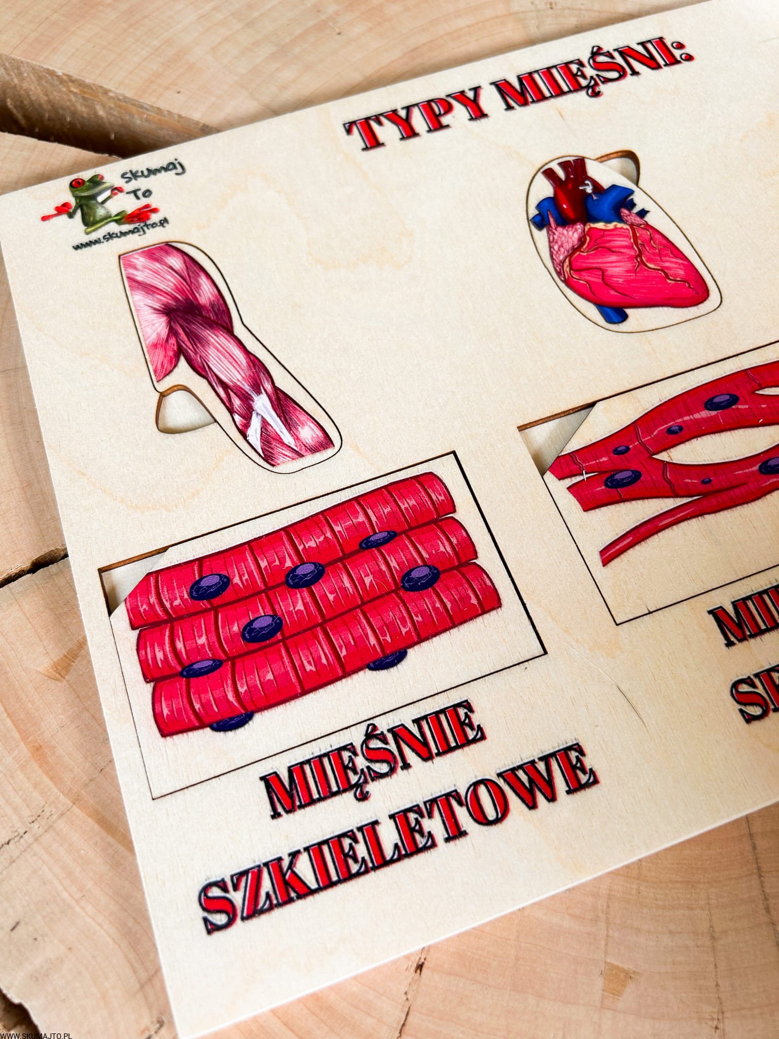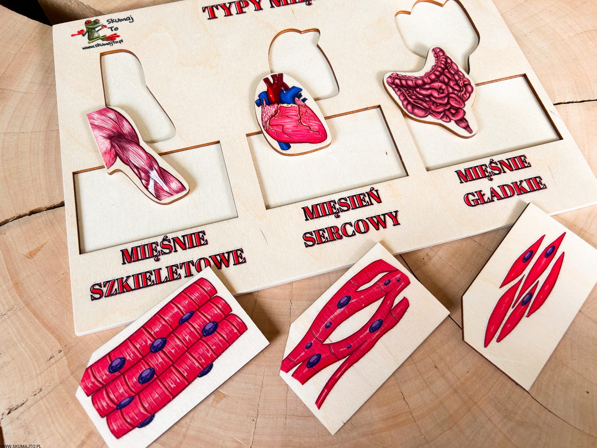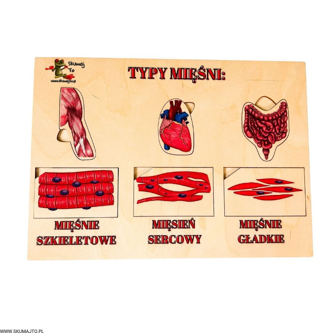 Rodzaje mięśni, drewniana układanka o mięśniach, jak wyglądają mięśnie