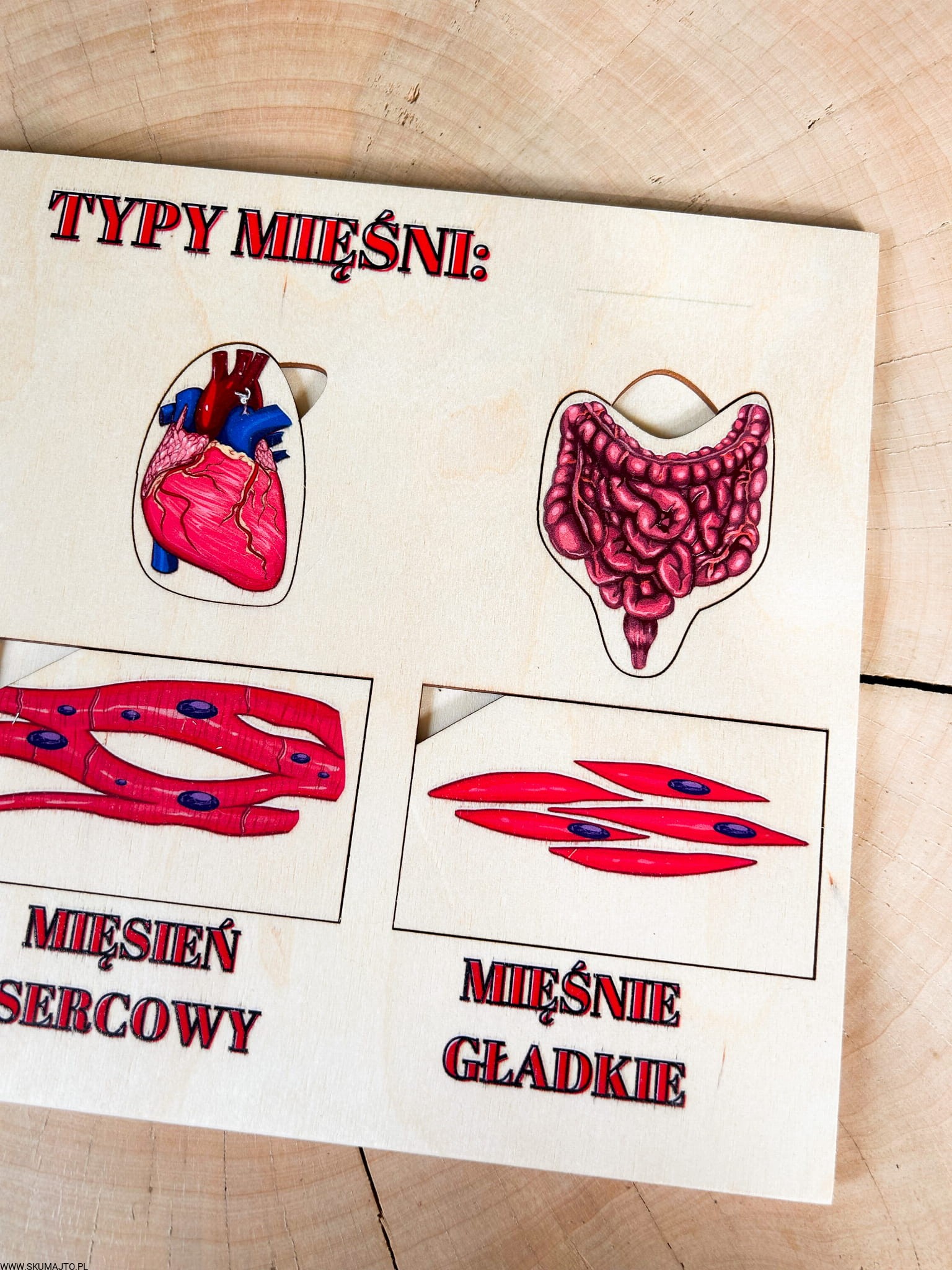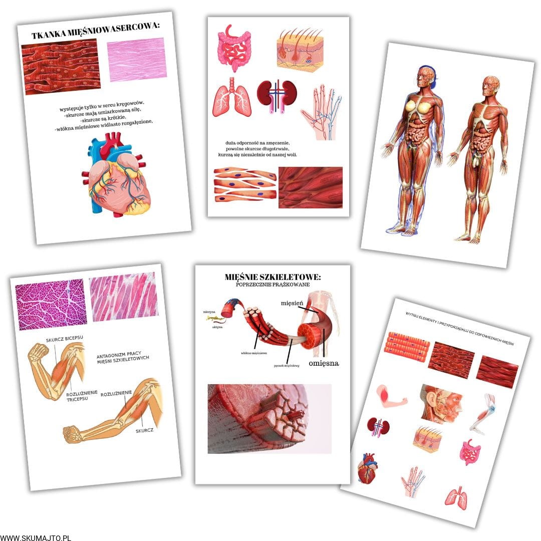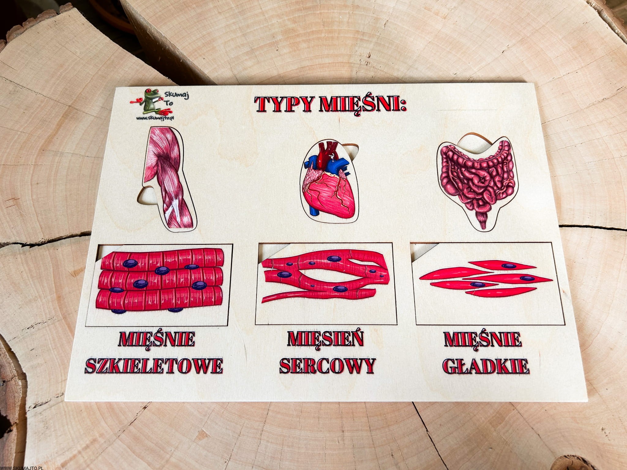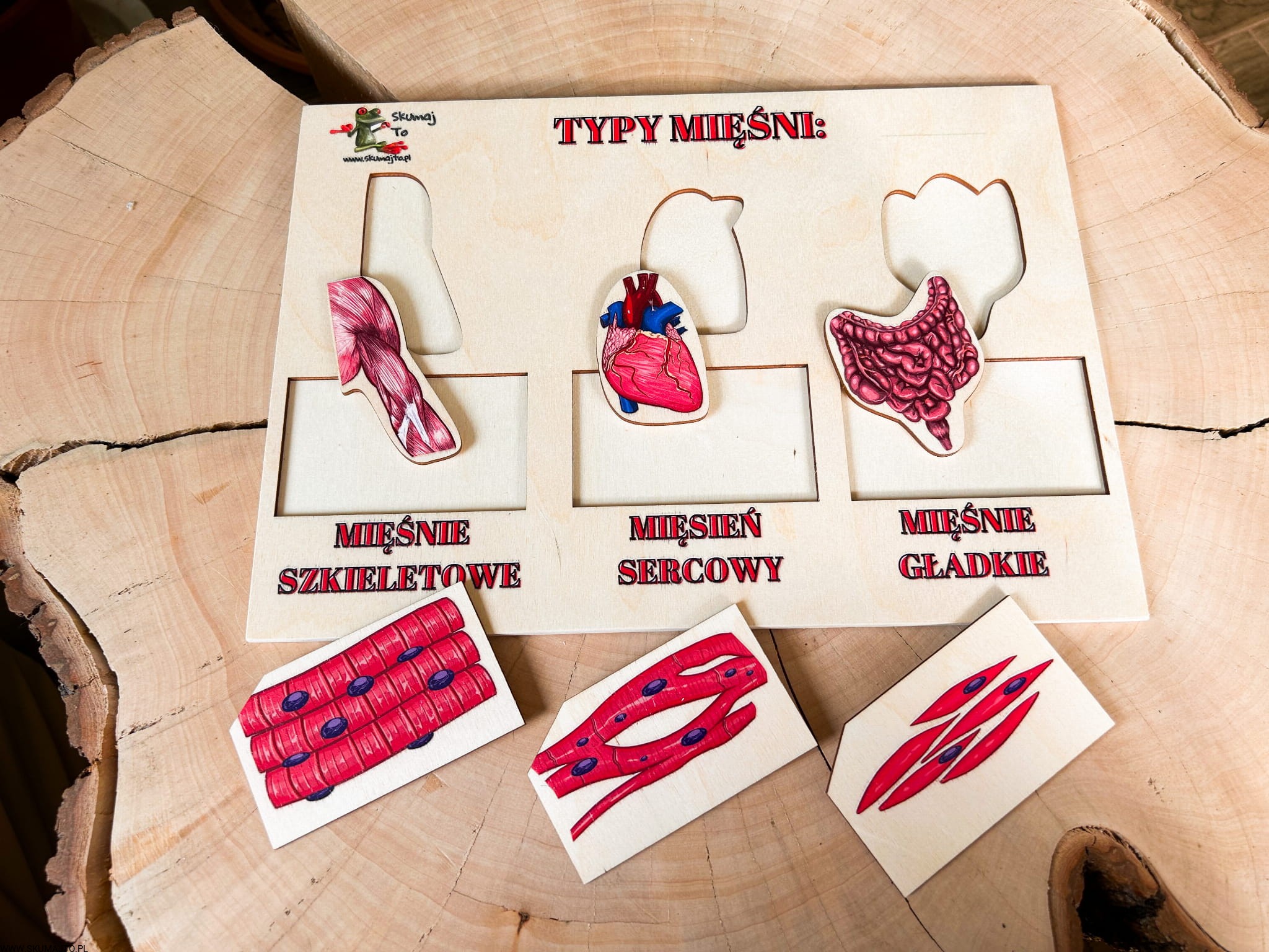 Rodzaje mięśni, drewniana układanka o mięśniach, jak wyglądają mięśnie