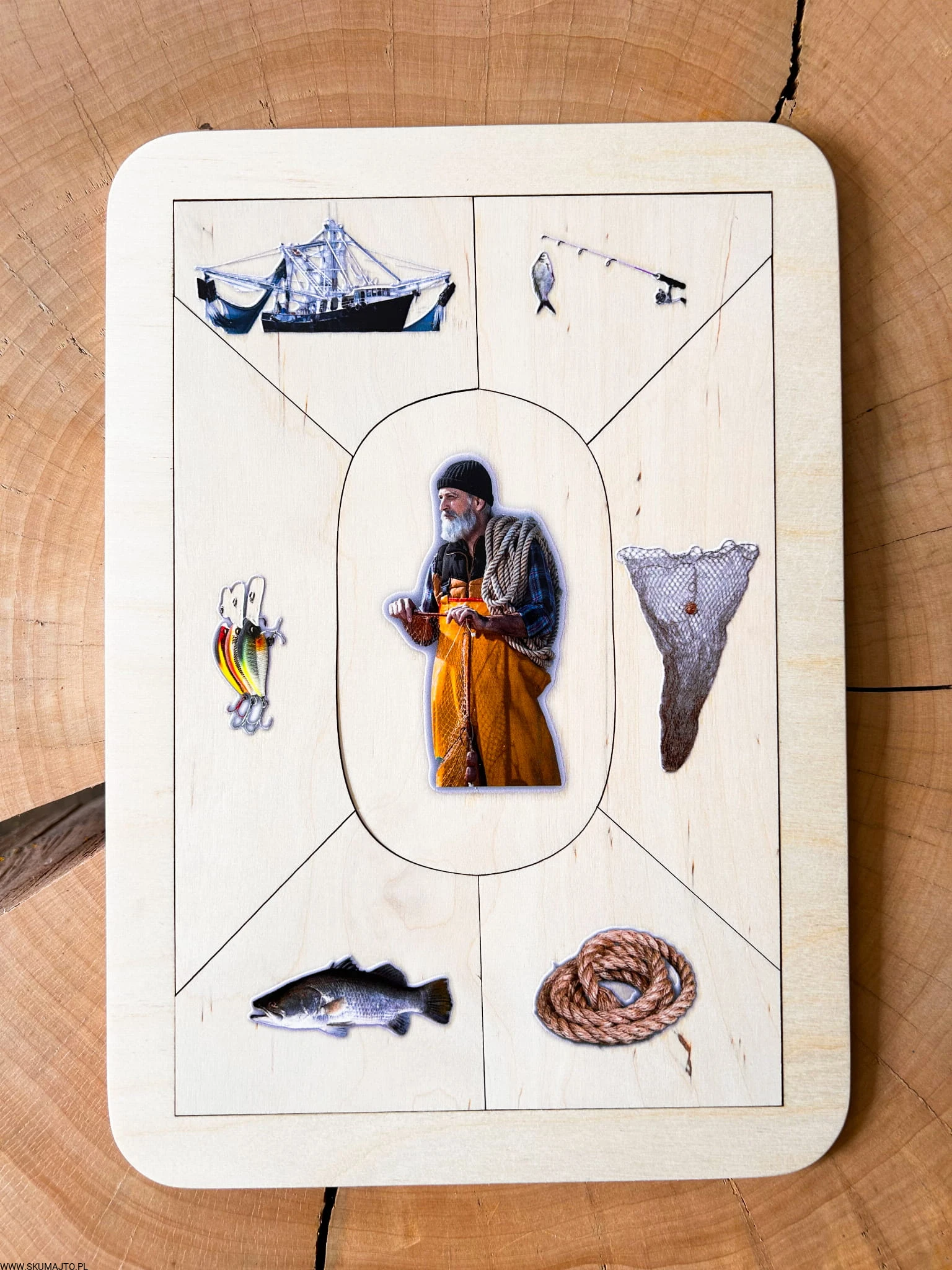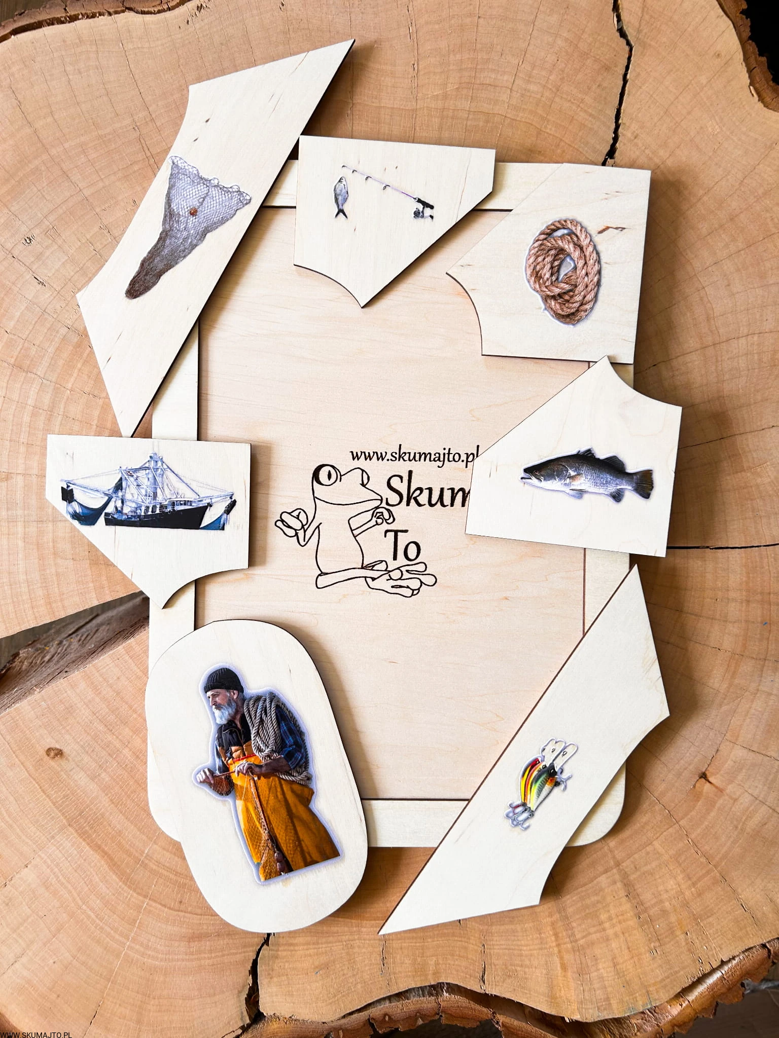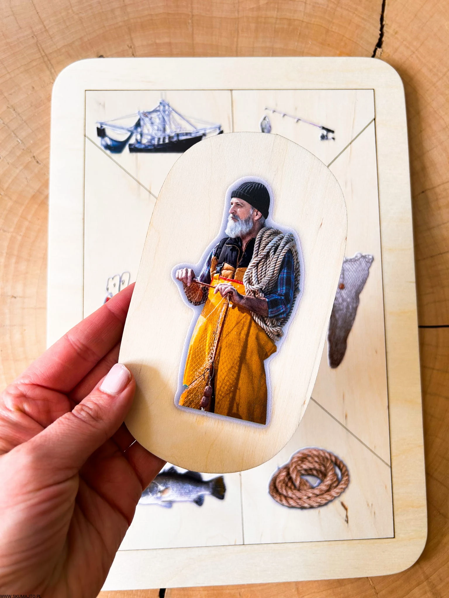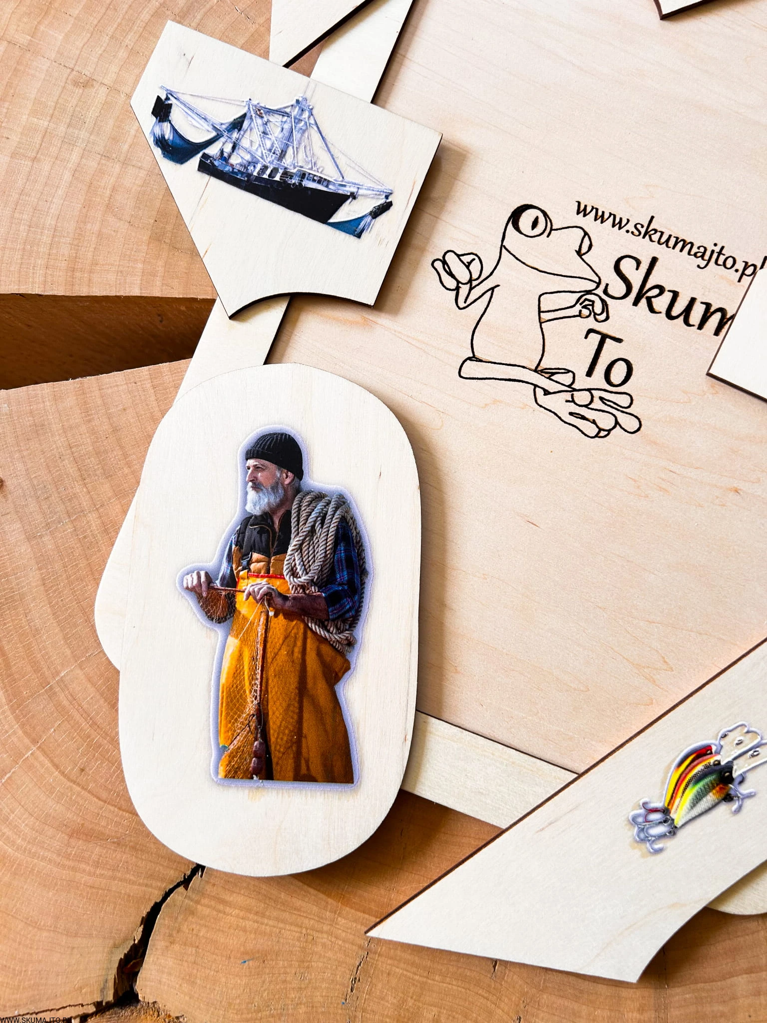 Drewniana układanka edukacyjna „Zawód: Rybak” – tradycja, natura i wytrwałość w formie zabawy