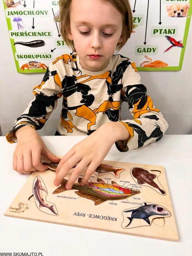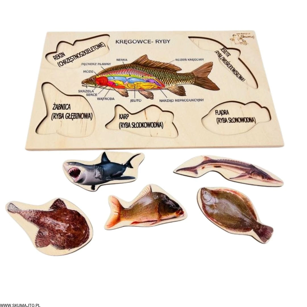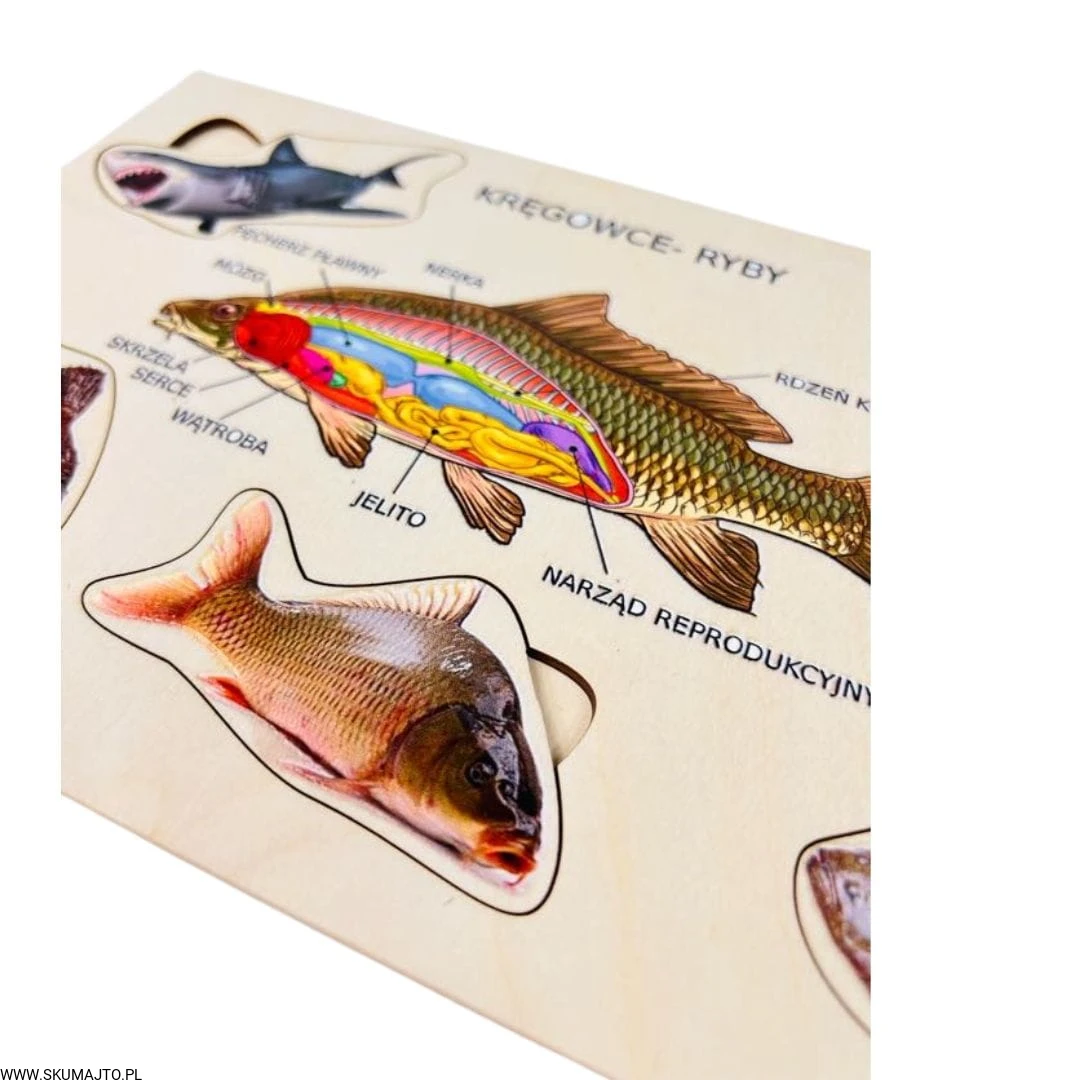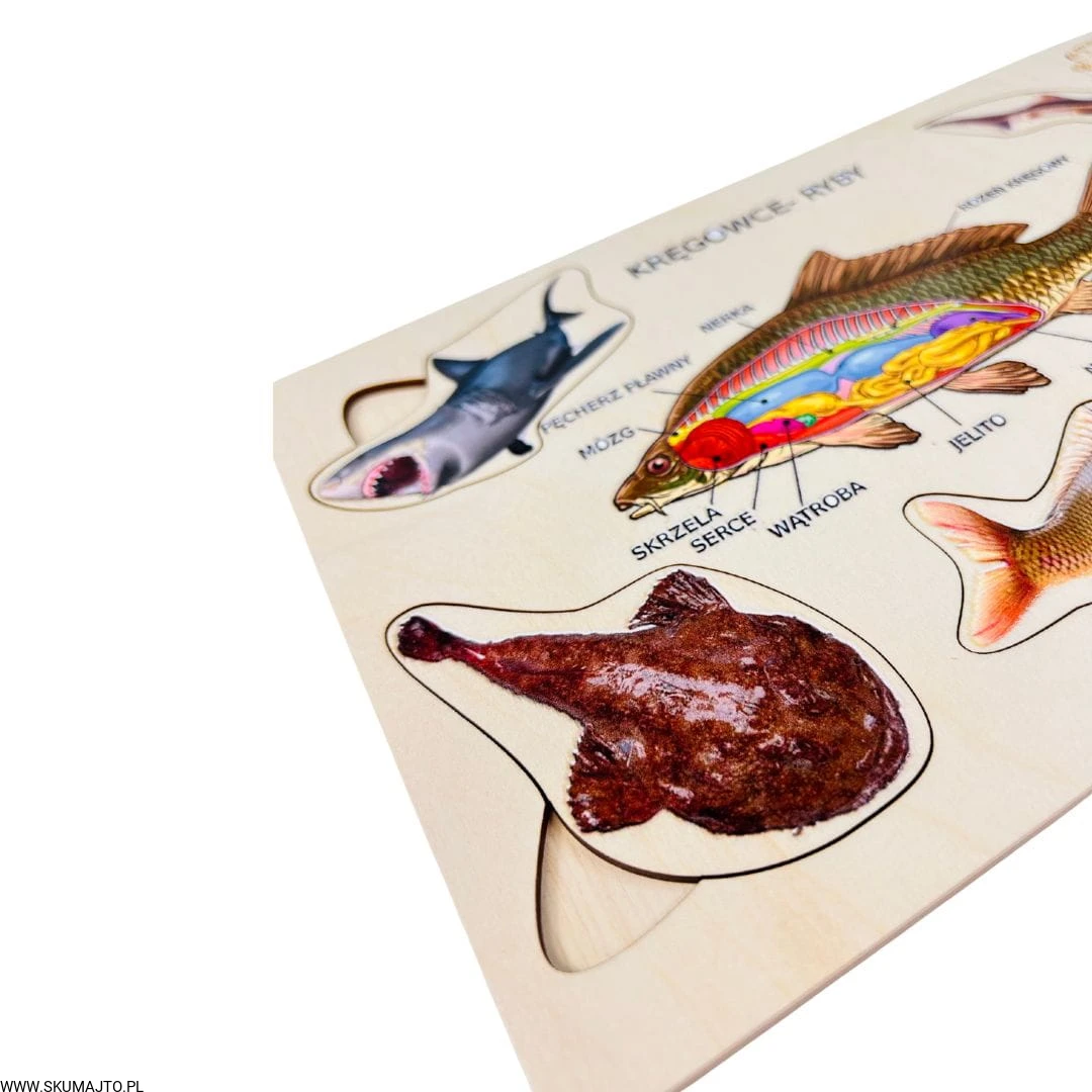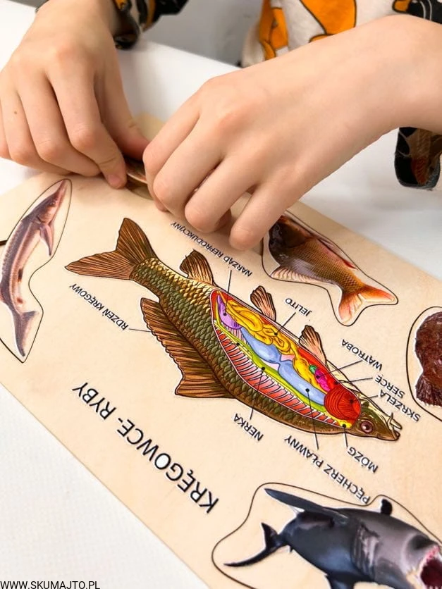 Poznaj fascynujący świat ryb z naszą edukacyjną układanką! Idealna do nauki i zabawy, układanka przybliża anatomię ryb oraz różnorodność ich gatunków.