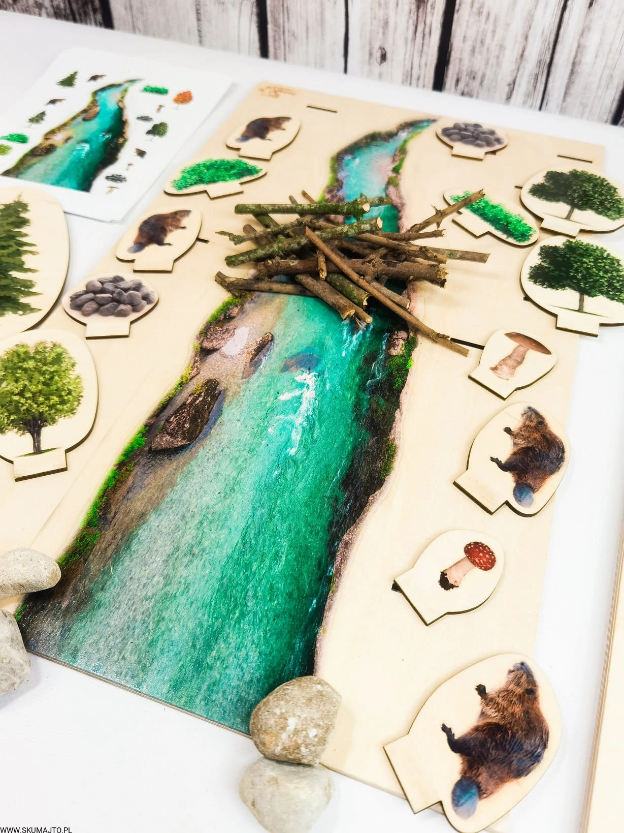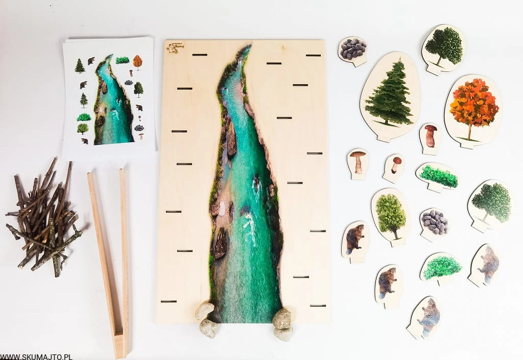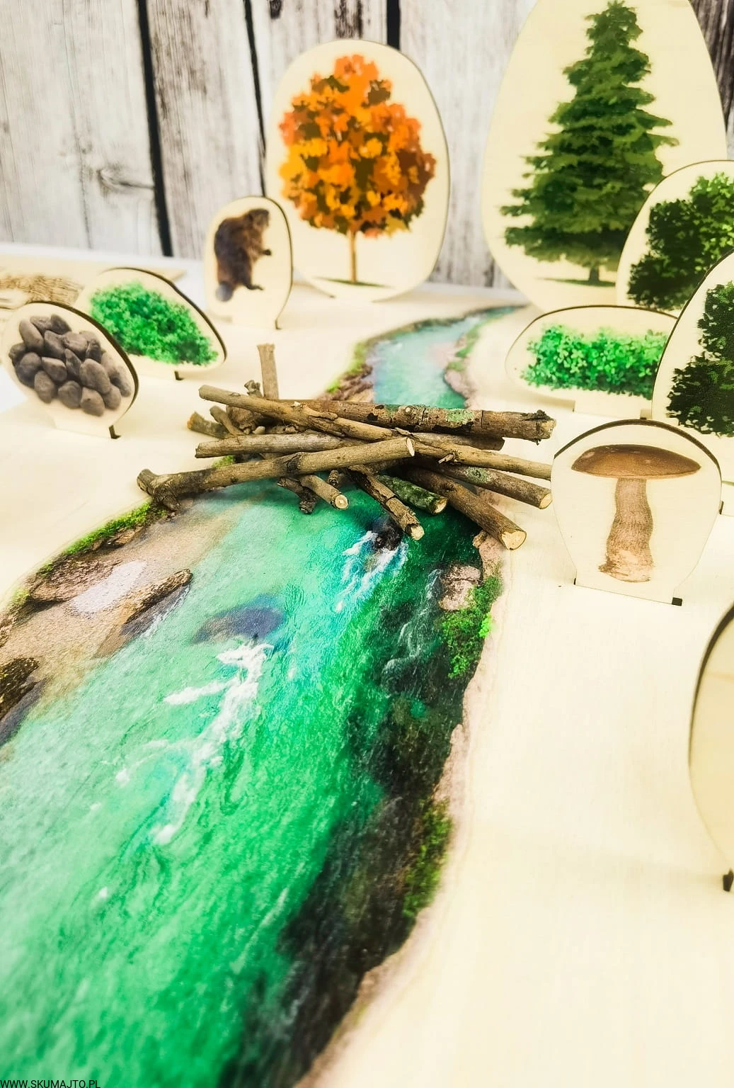 Rzeka bobra, drewniana makieta rzeki, tama, odwzorowywanie, edukacja leśna