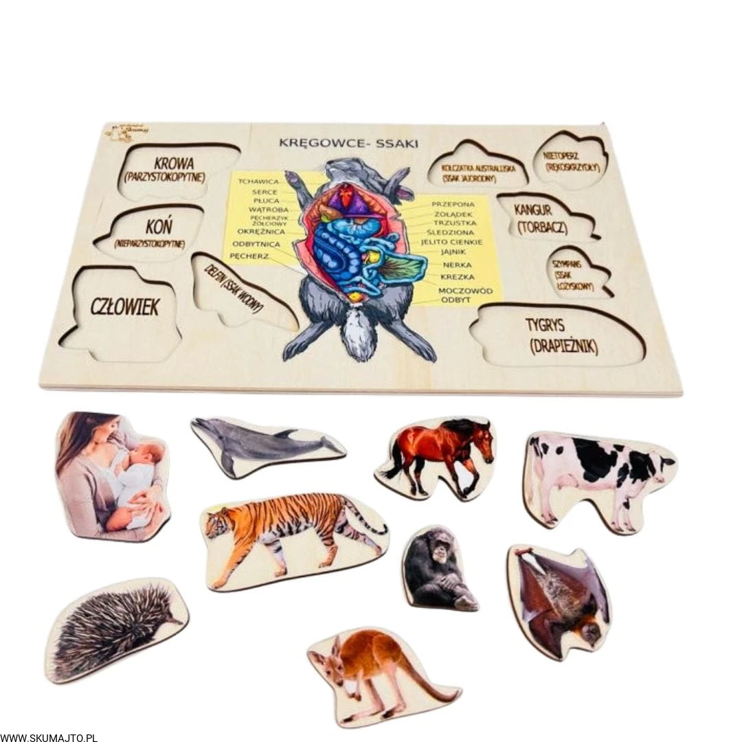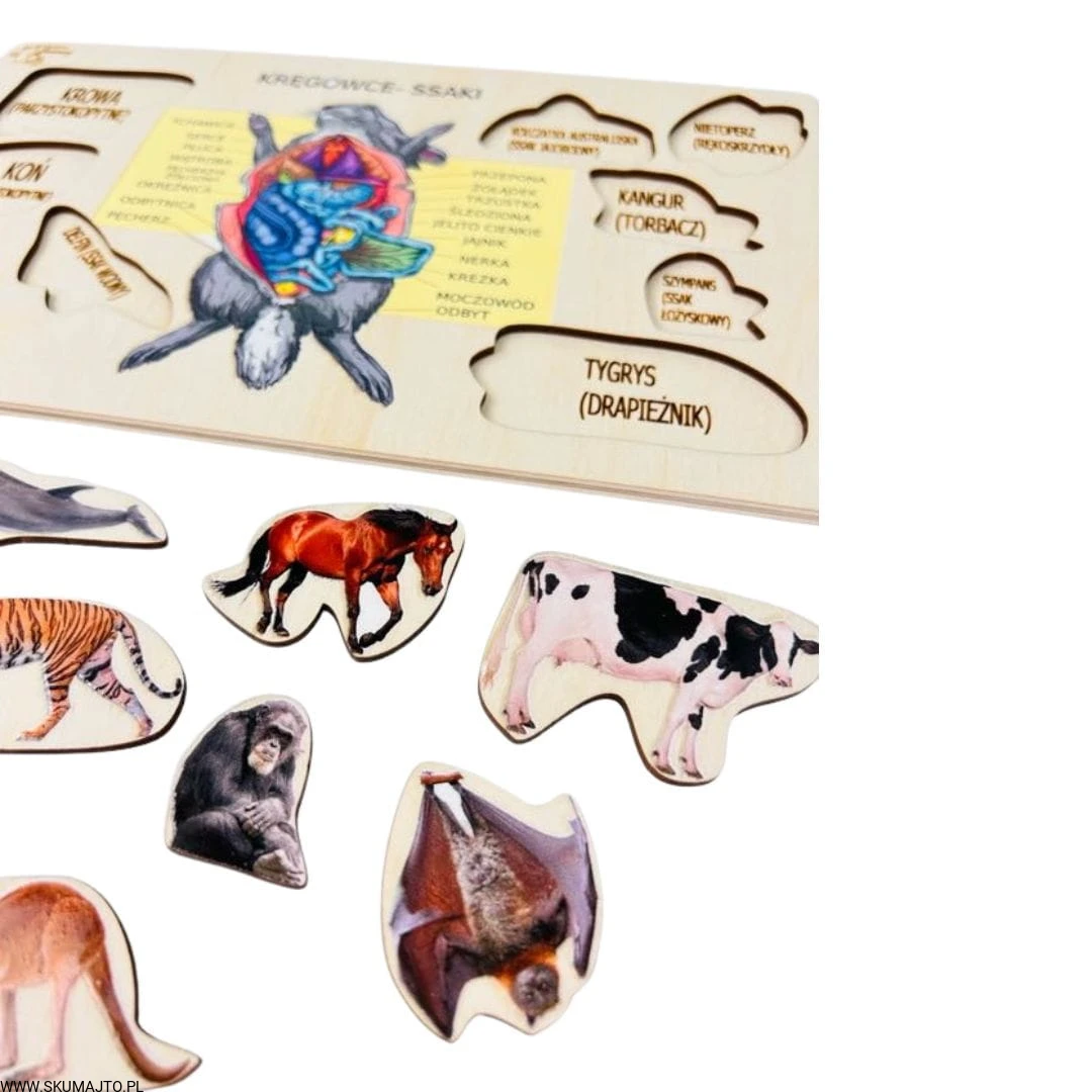Ssaki, drewniana układanka, ciekawostki o ssakach, pomoc biologiczna