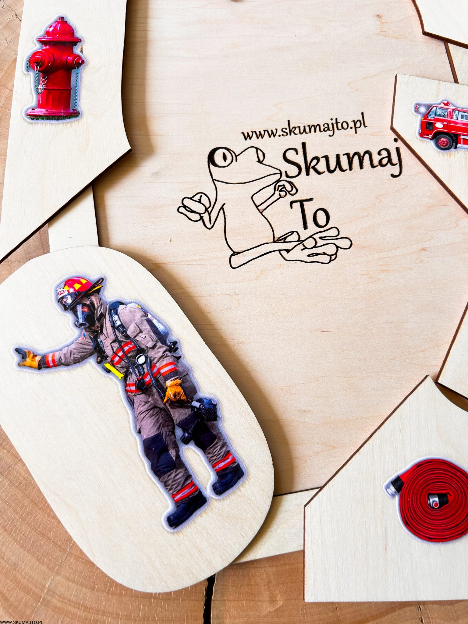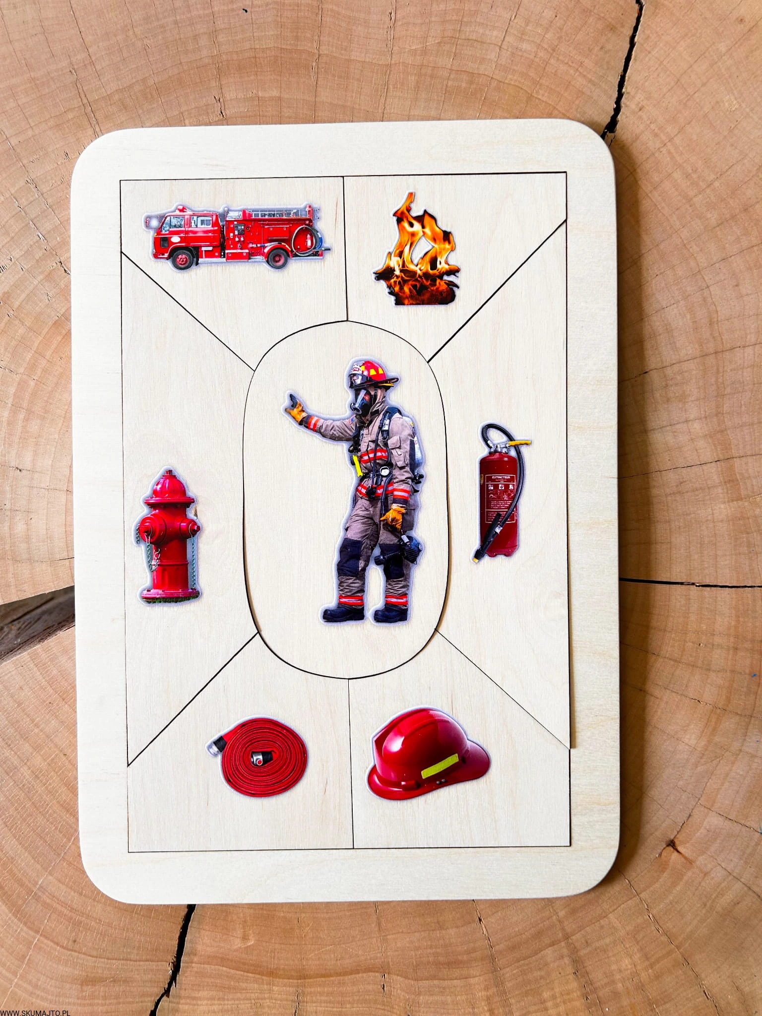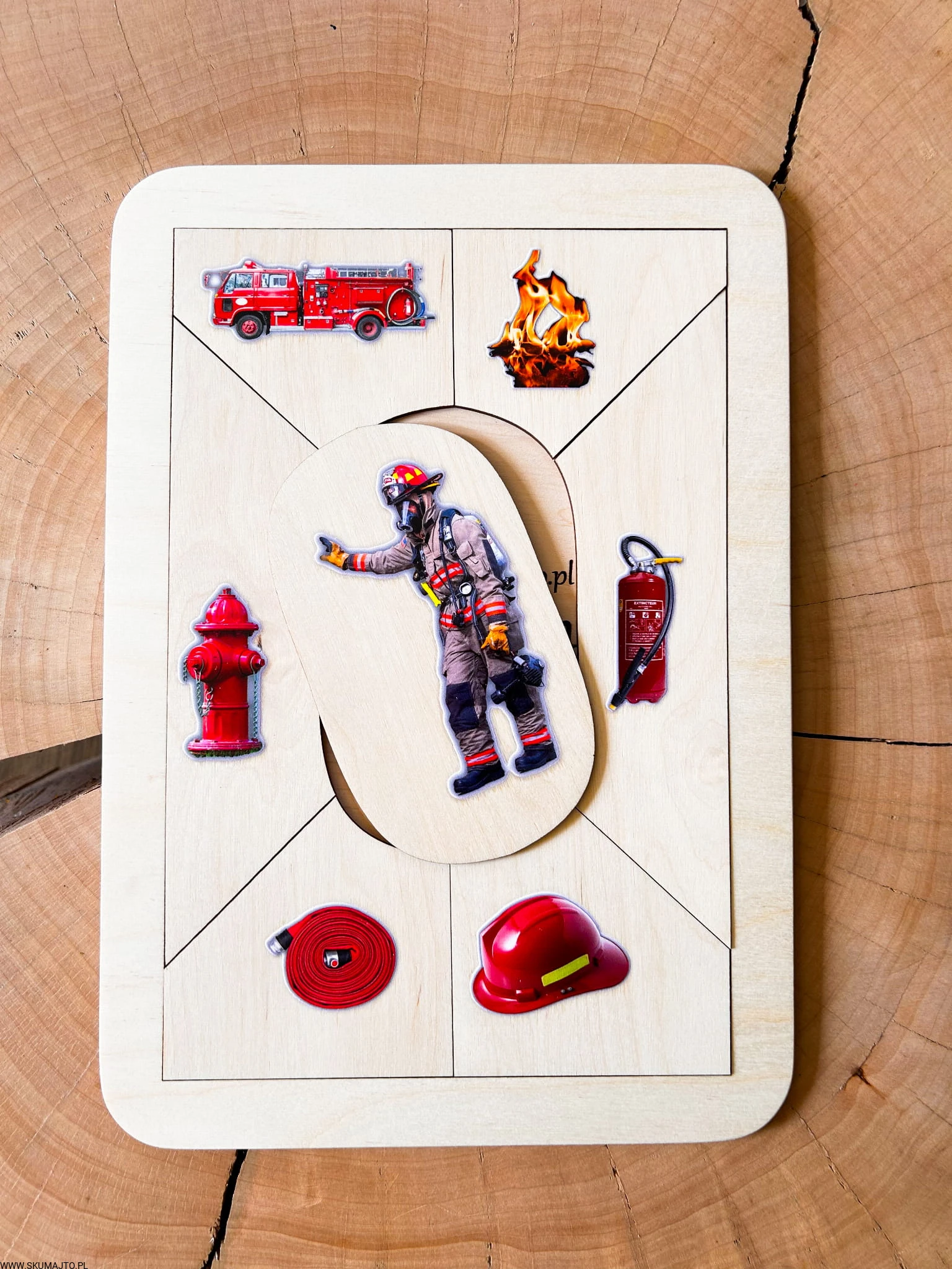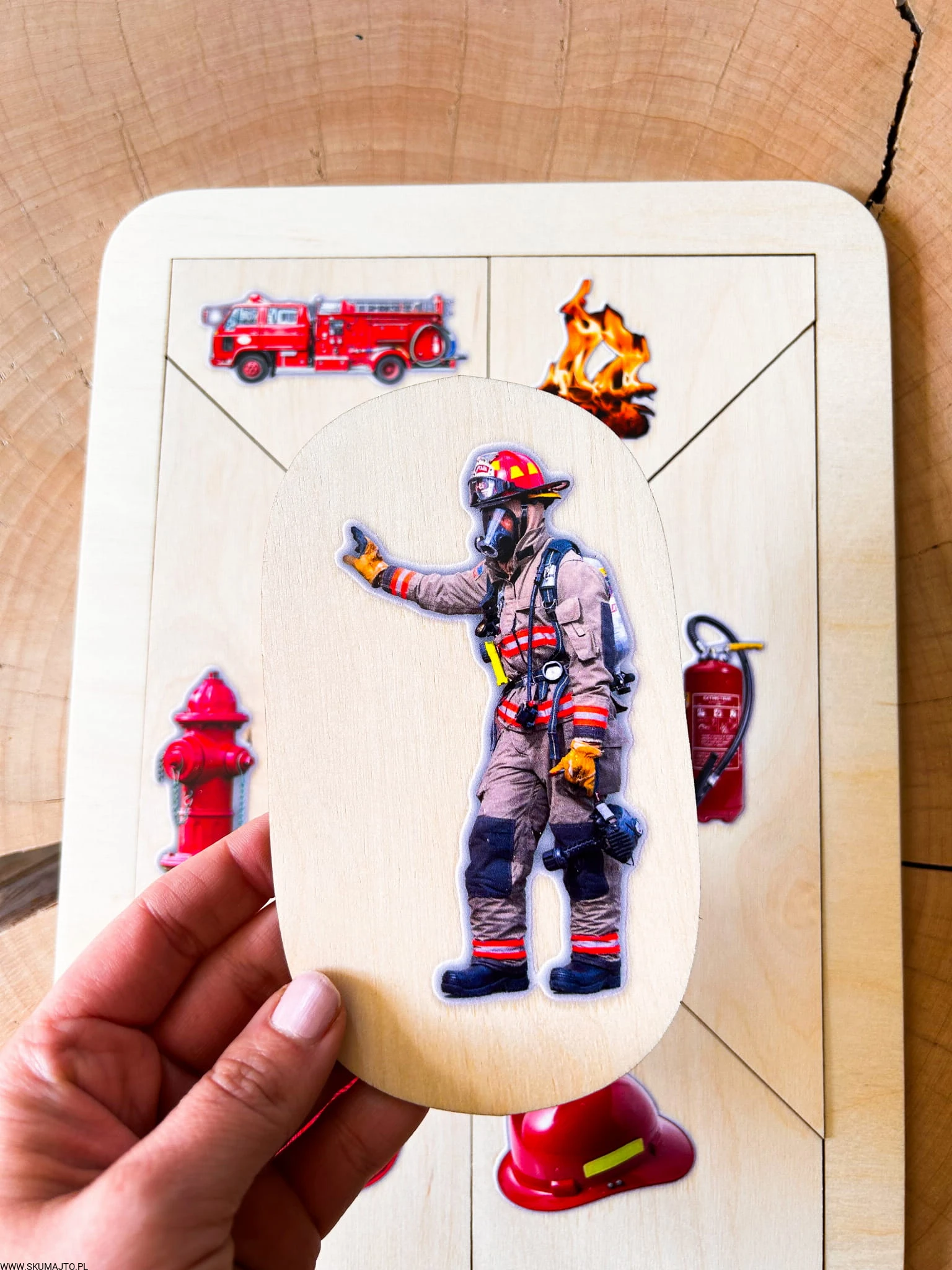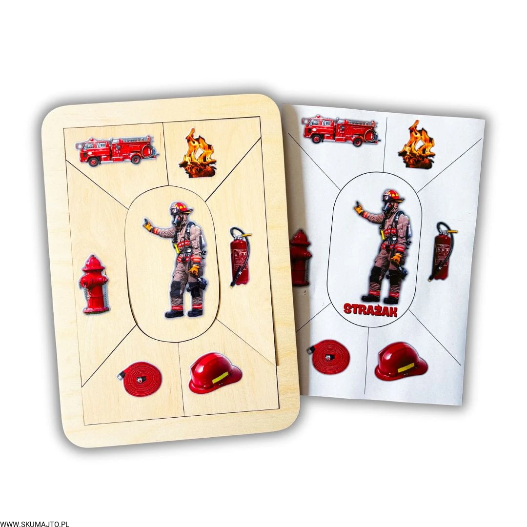Drewniana układanka edukacyjna „Zawód: Strażak” – odwaga, gotowość i misja ratowania przez zabawę