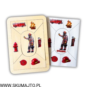 Strażak, drewniana układanka, zawody