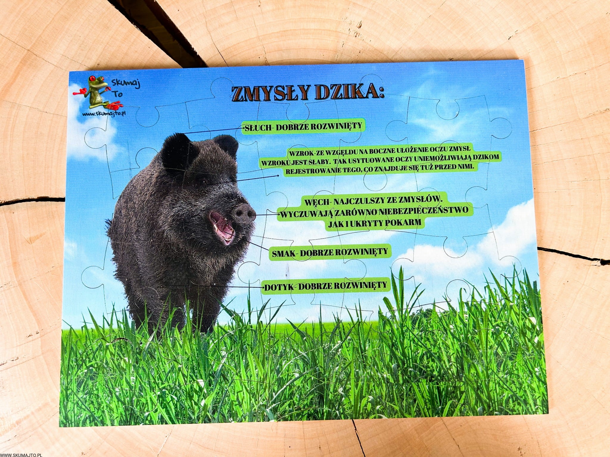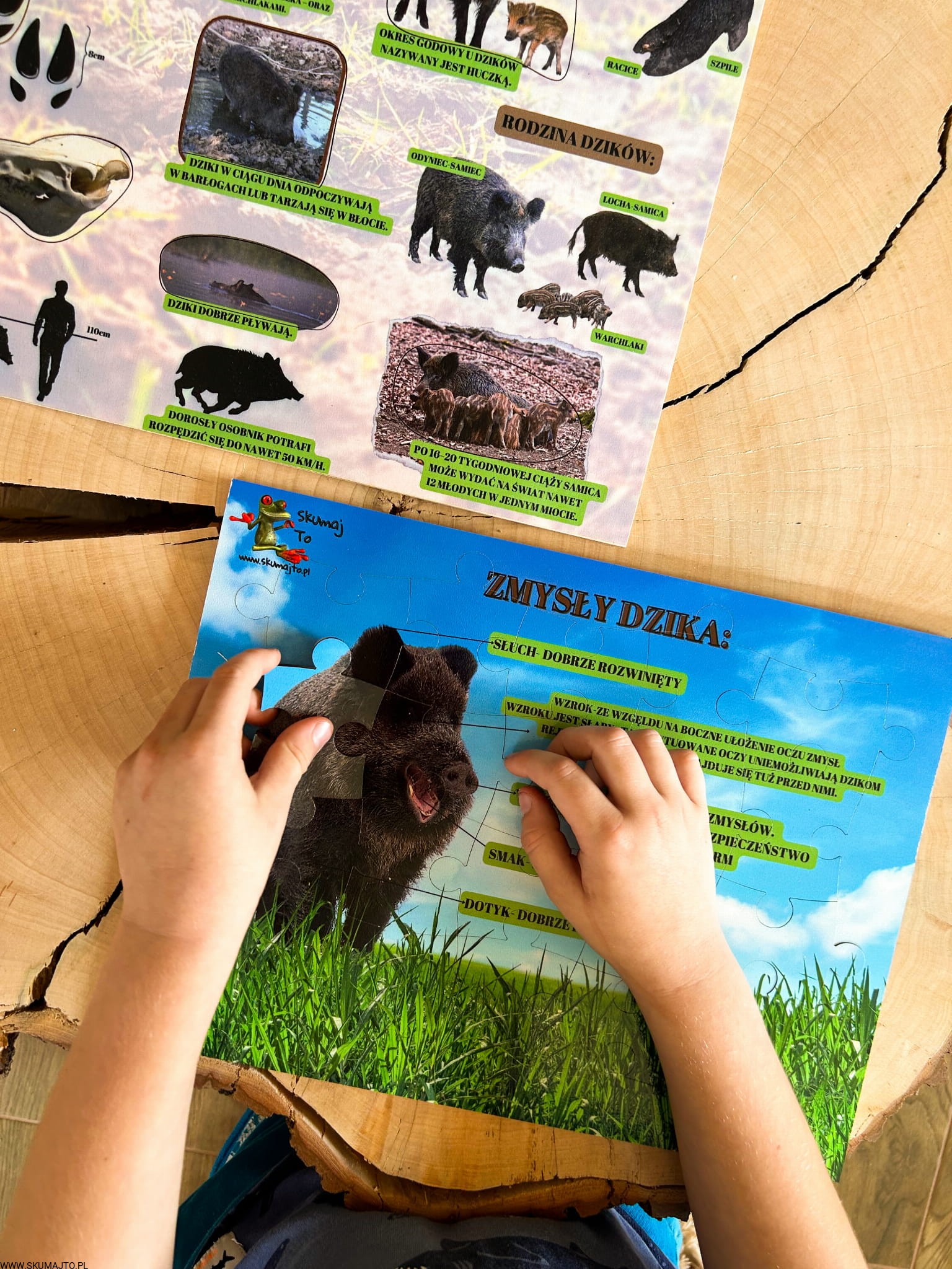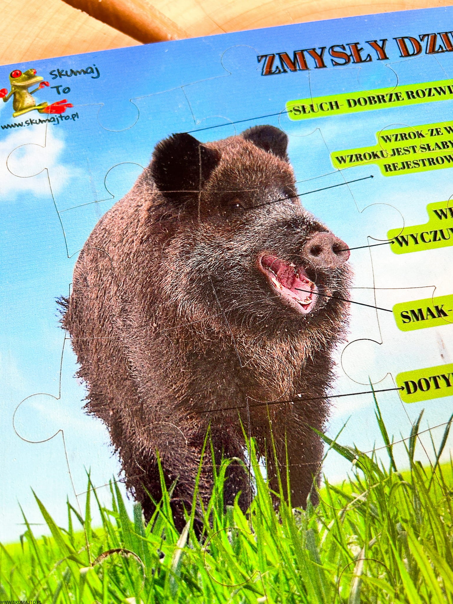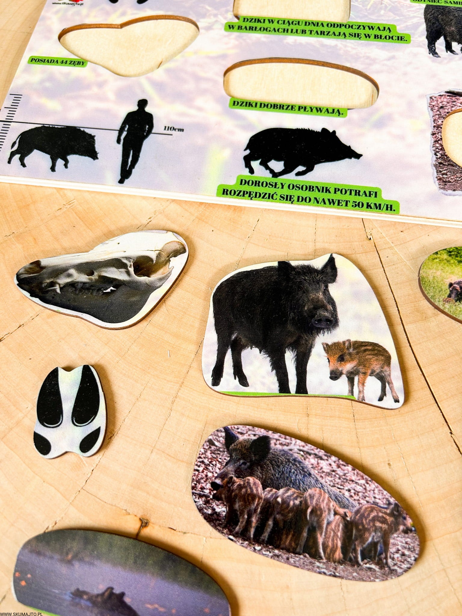 Świat dzika, układanka drewniana, edukacja leśna, ciekawostki o dzikach