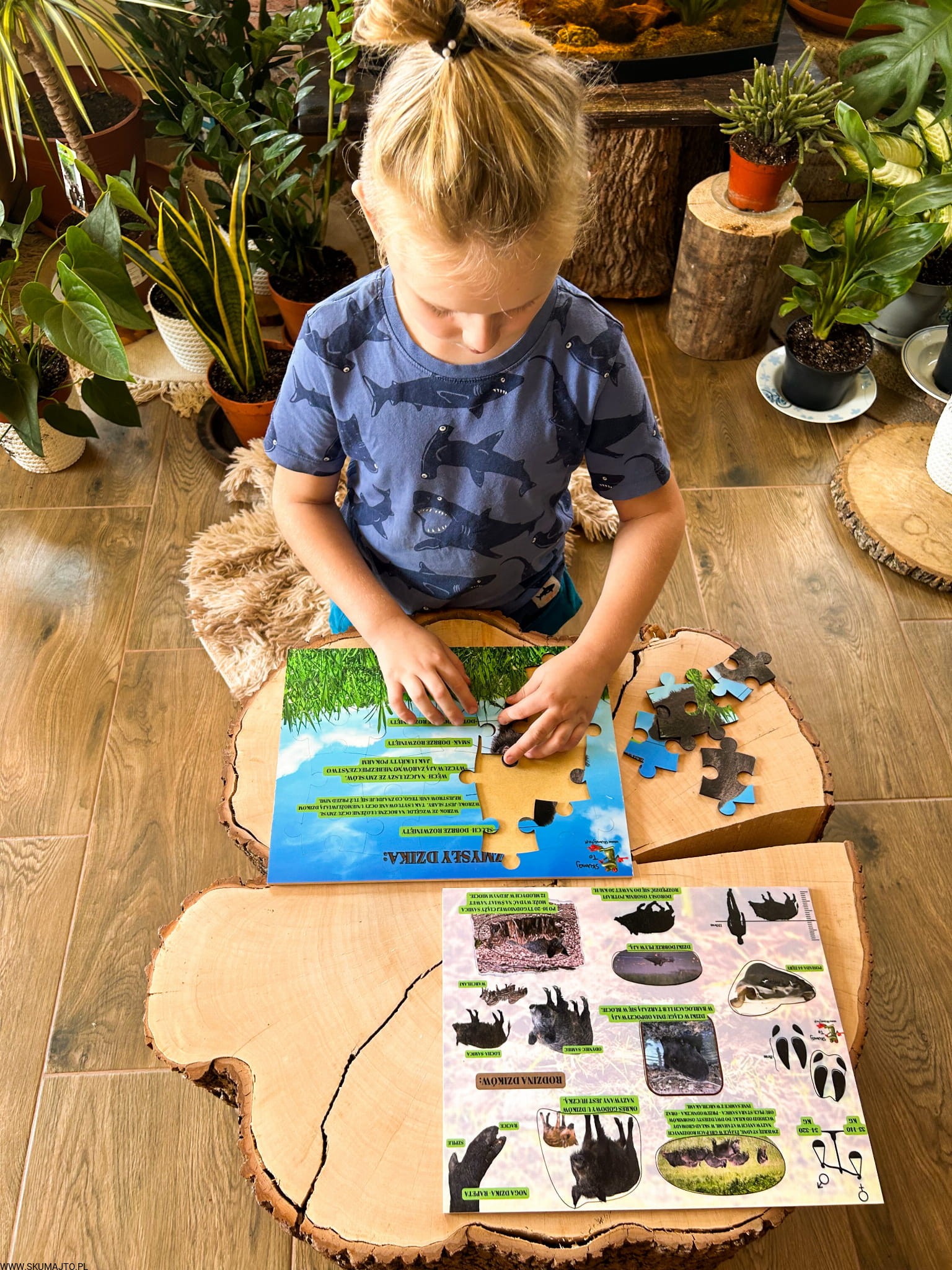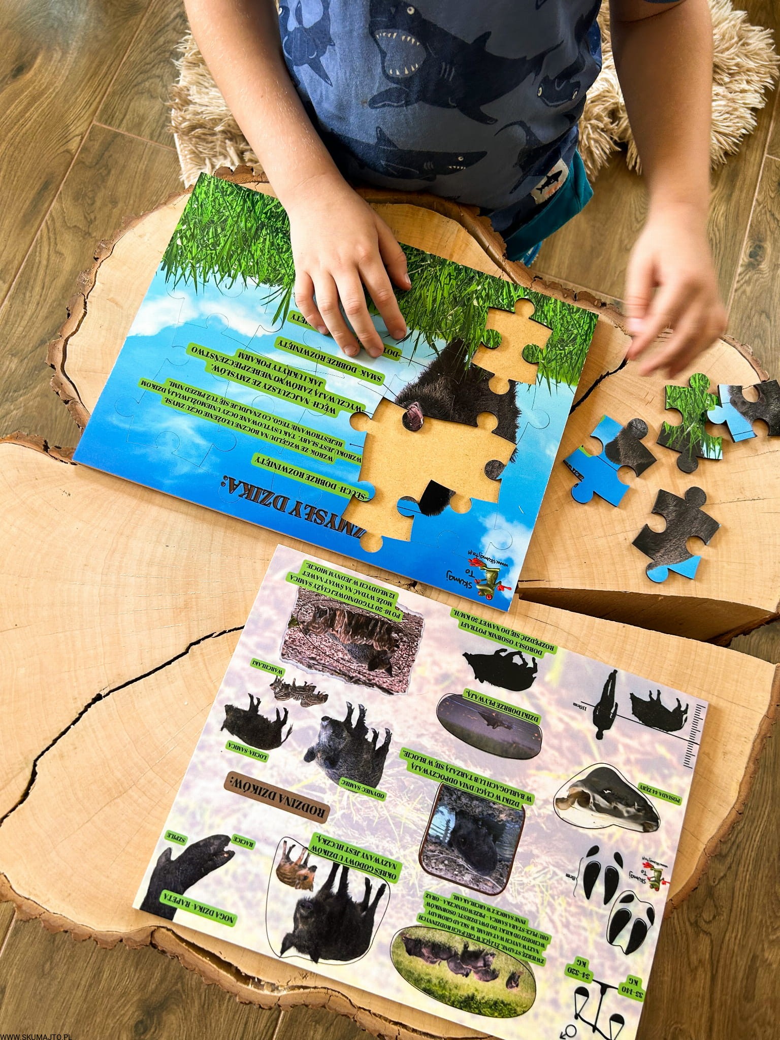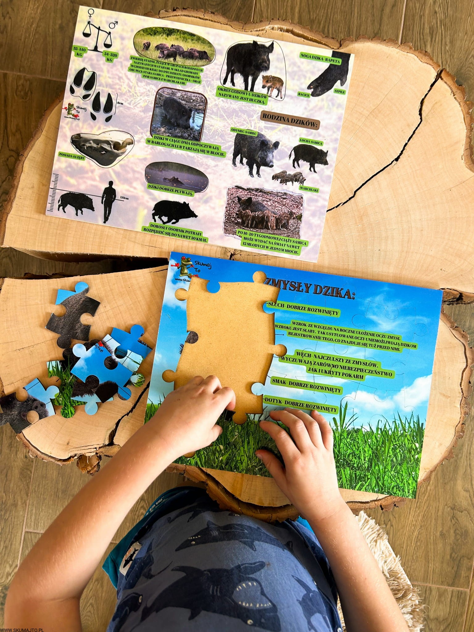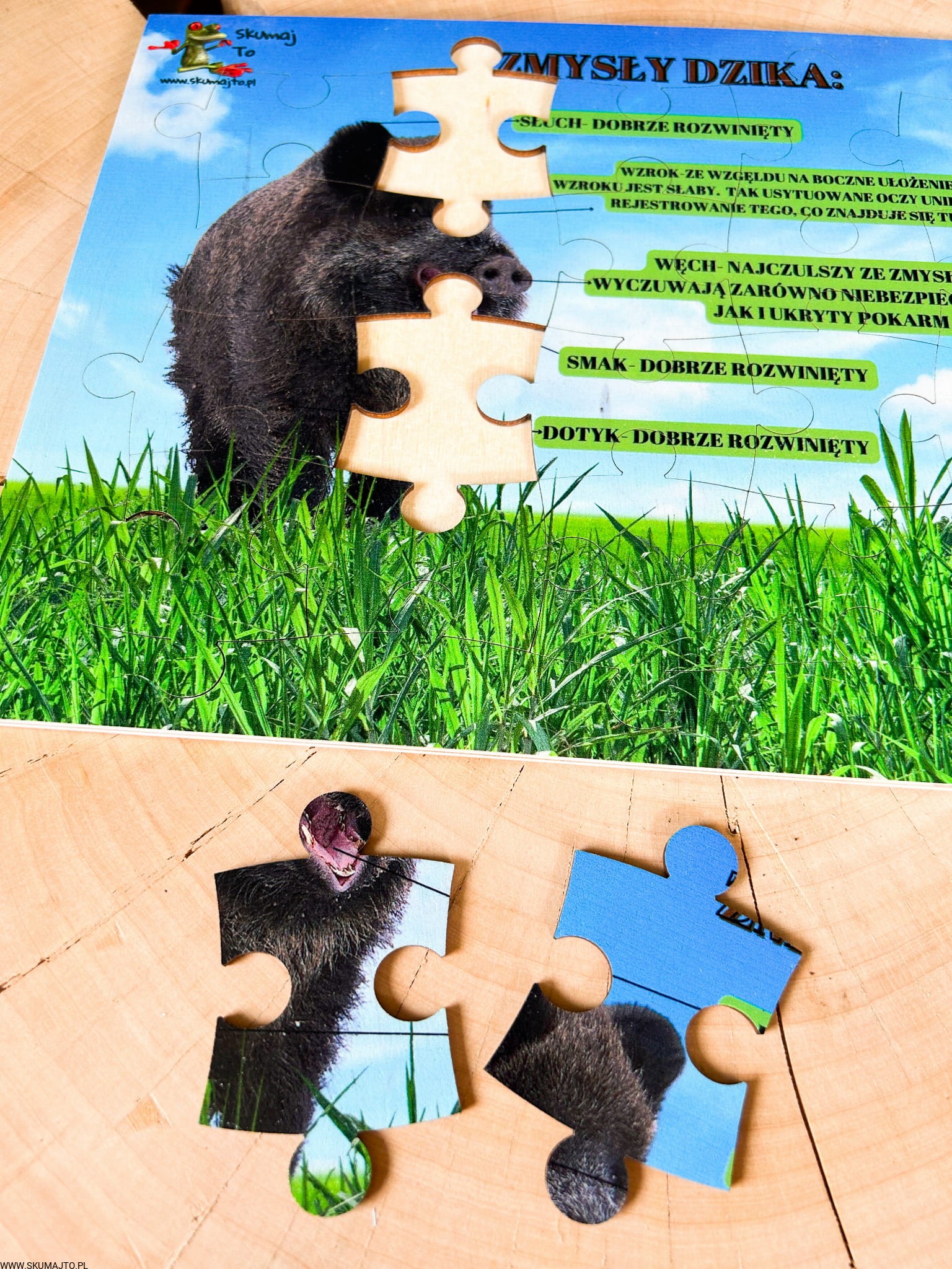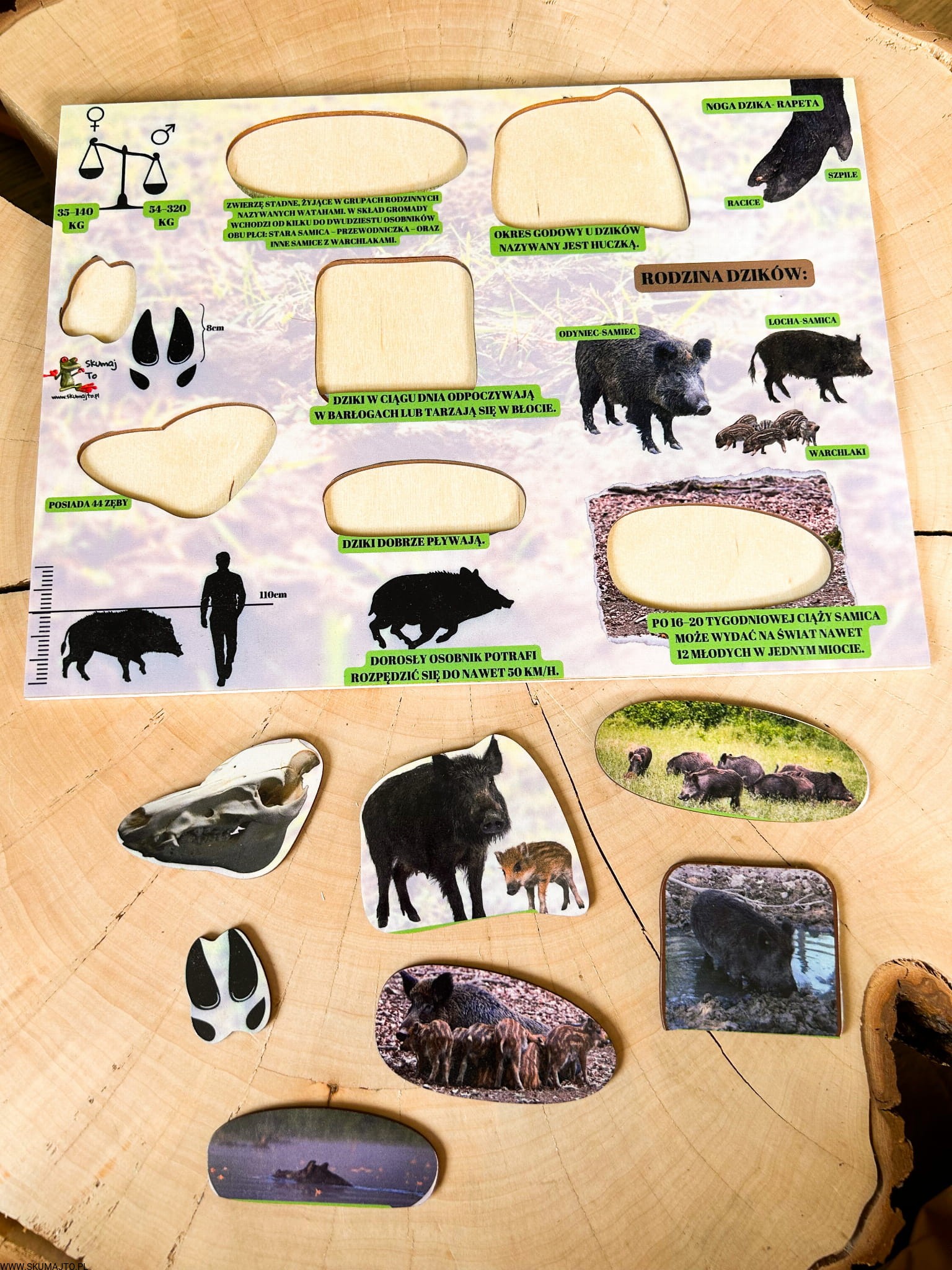 Świat dzika, układanka drewniana, edukacja leśna, ciekawostki o dzikach